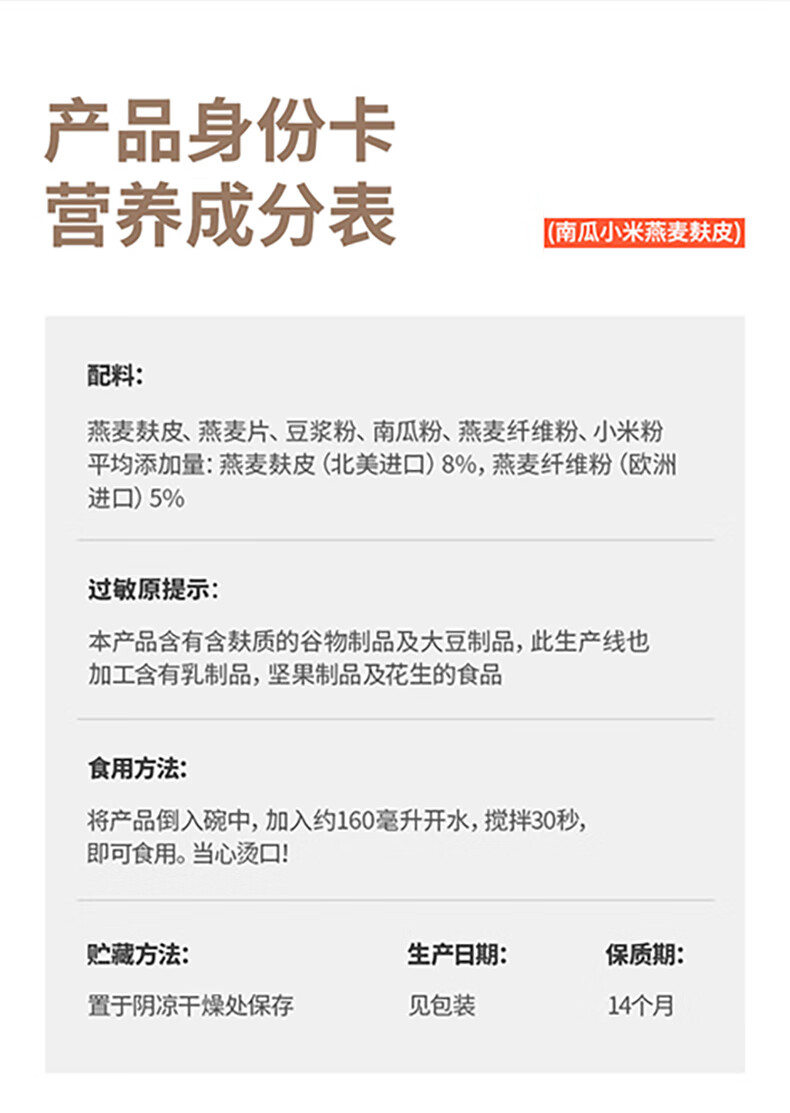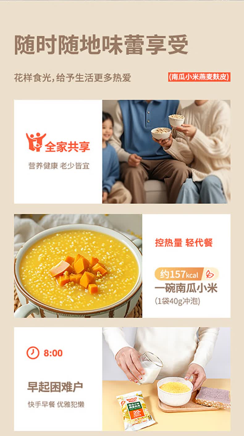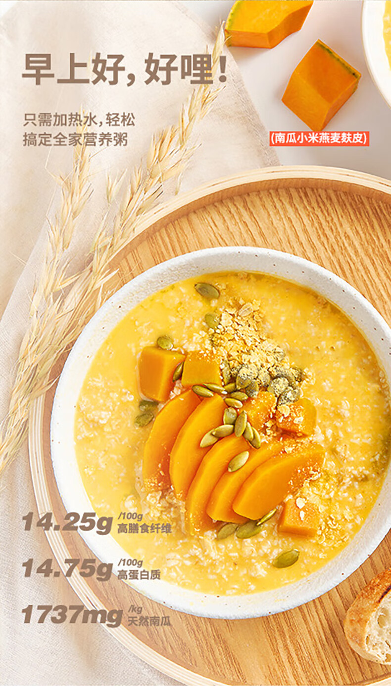 WHOLLY MOLY!好哩南瓜小米燕麦麸皮(40g*10袋)0添加蔗糖高膳食纤维冲泡即食