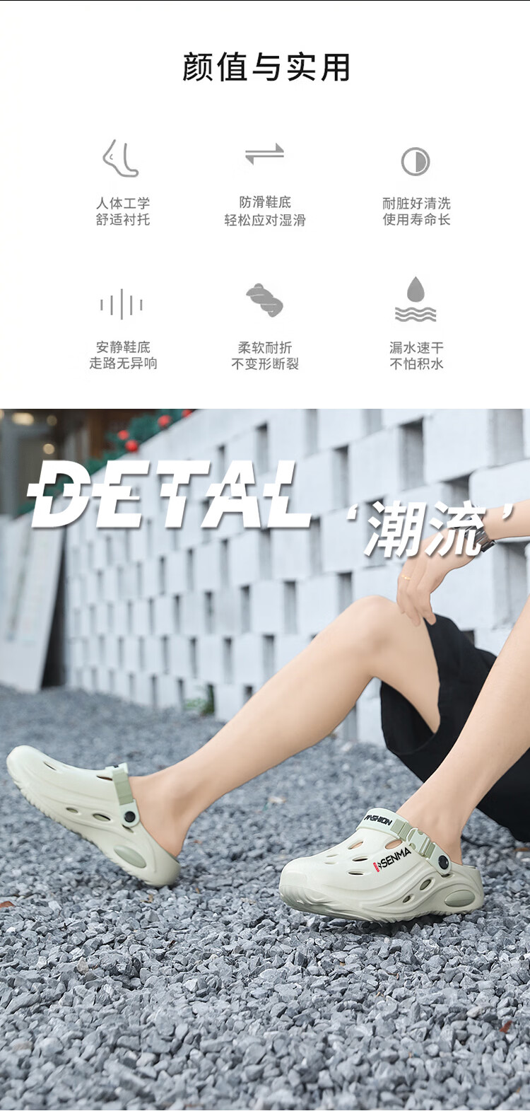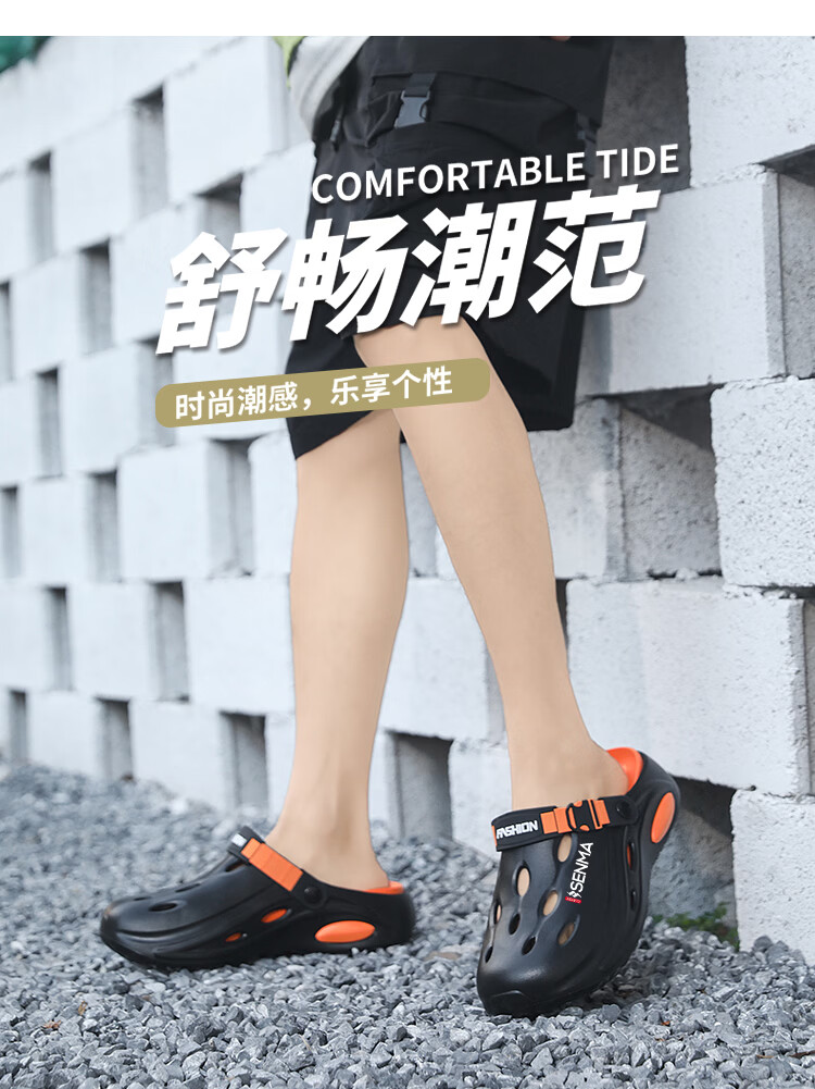 森馬洞洞鞋男2026夏季外穿防臭防滑开车两用凉鞋户外大码运动包头拖鞋 蓝色【基础款】 38-39 现货秒发