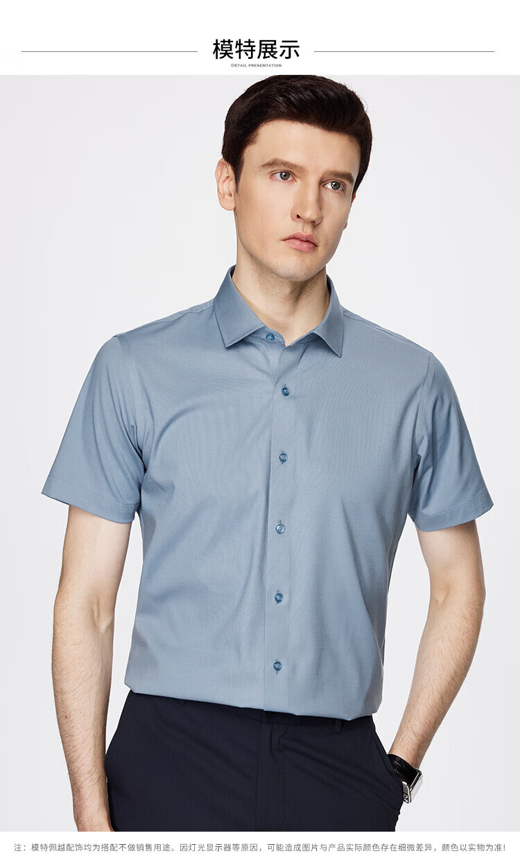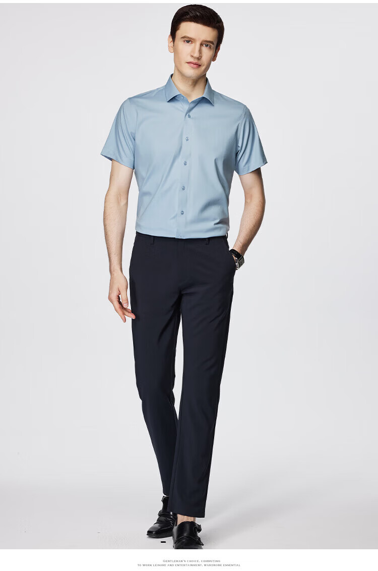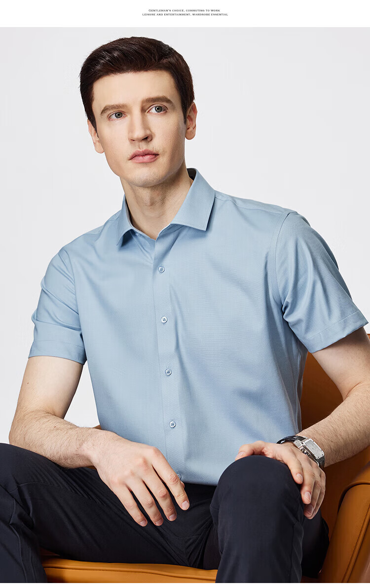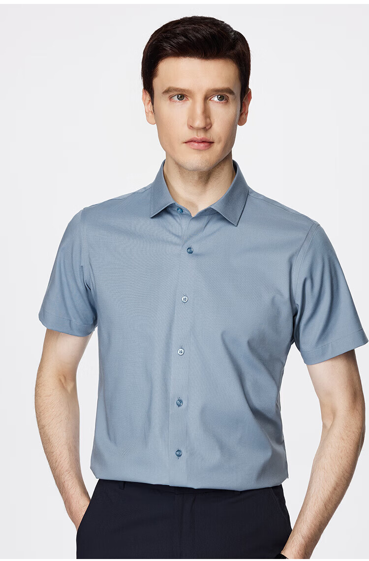 杉杉(FIRS)【顺滑莫代尔】短袖衬衫男夏季新款商务休闲上衣抗皱易打理衬衣男 雾蓝色 39 (170) 88A