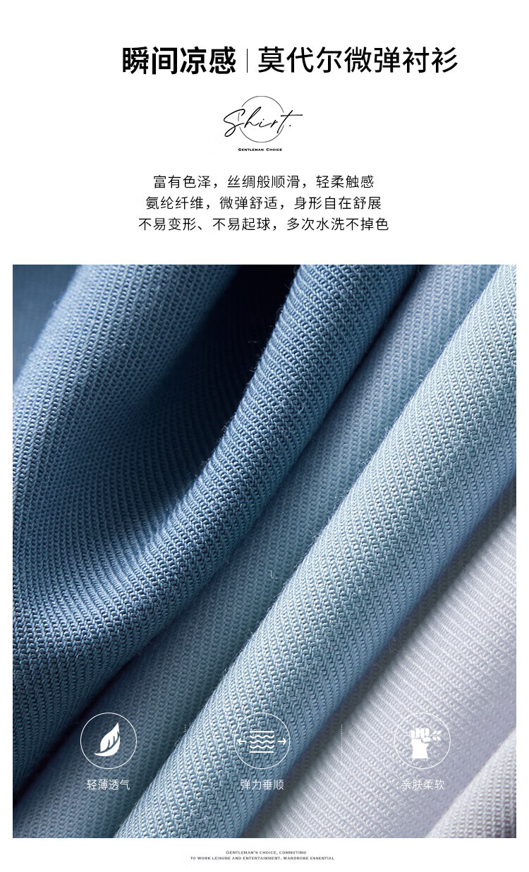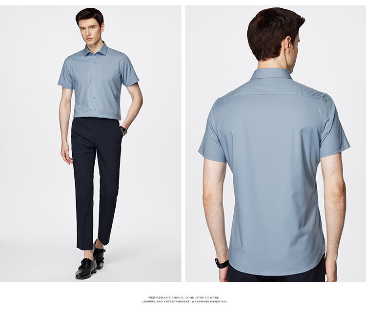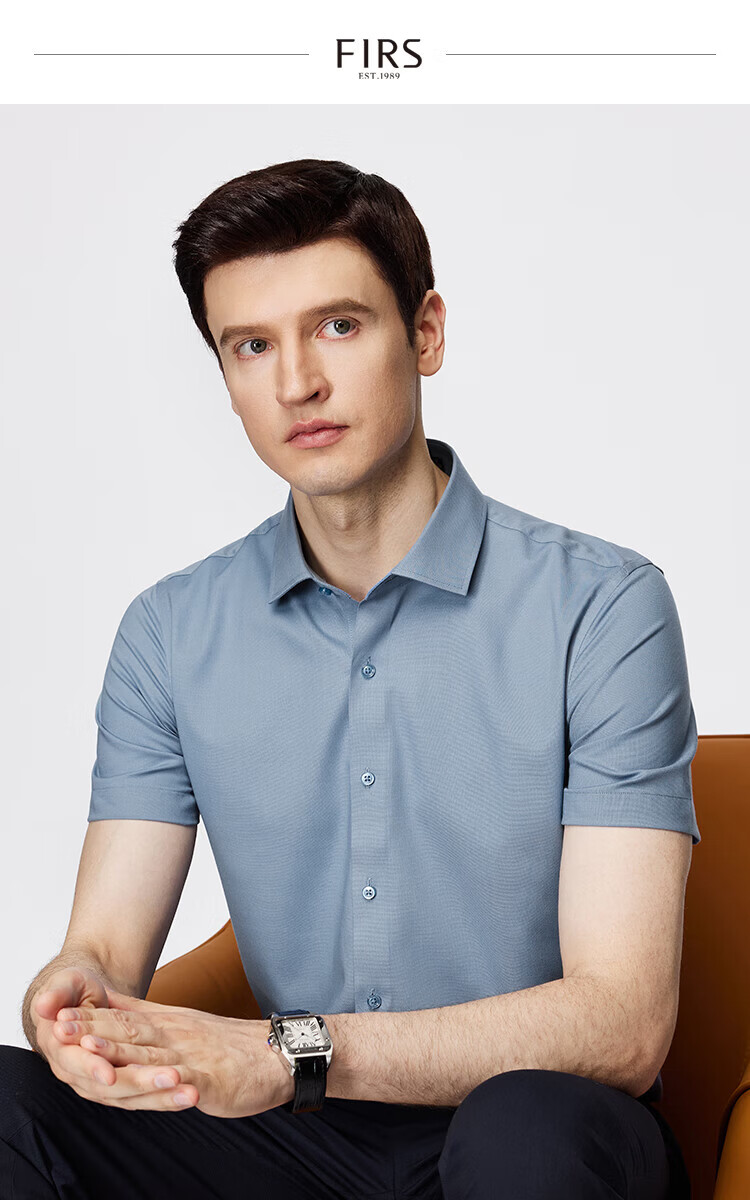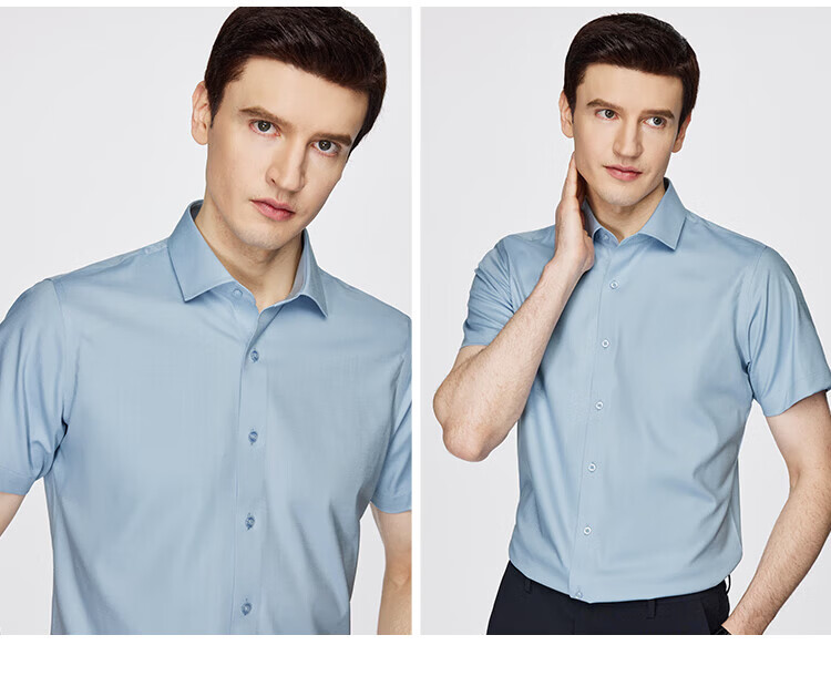 杉杉(FIRS)【顺滑莫代尔】短袖衬衫男夏季新款商务休闲上衣抗皱易打理衬衣男 雾蓝色 39 (170) 88A