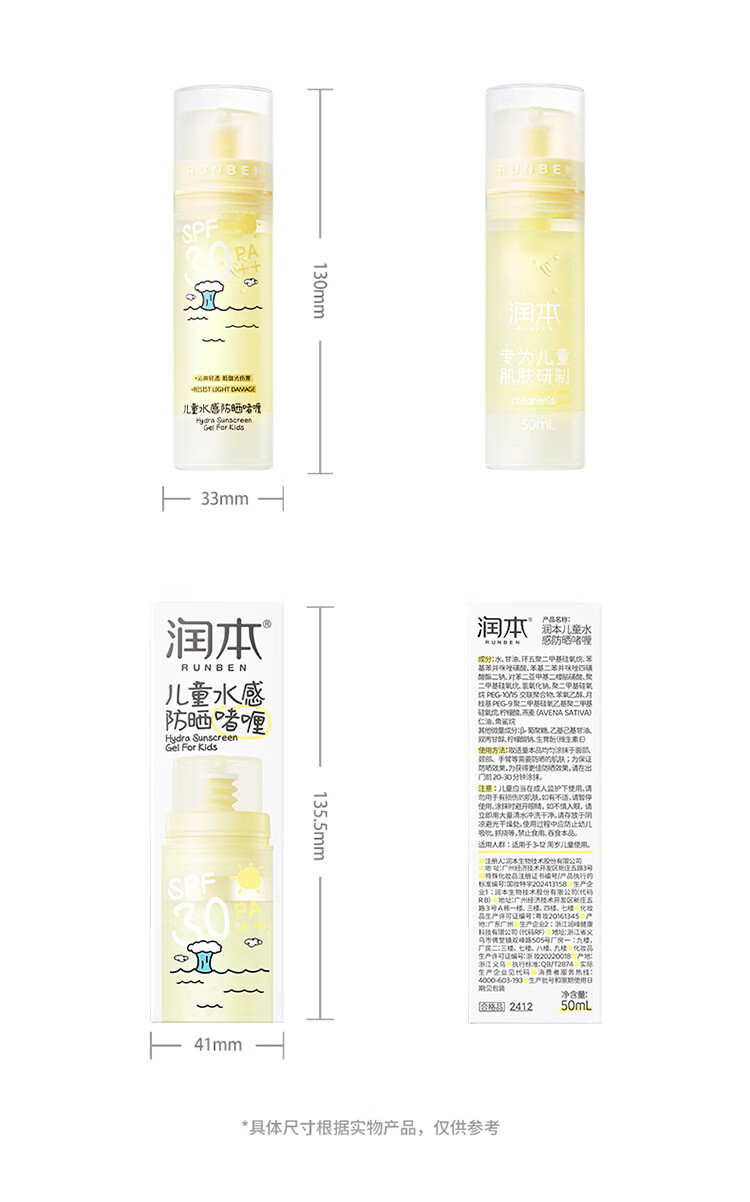 屈臣氏润本儿童水感防晒啫喱 50ml 1瓶