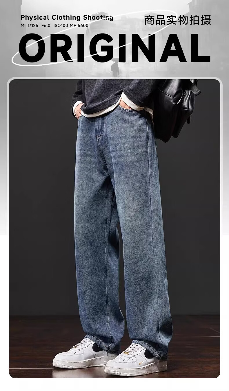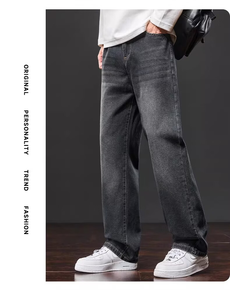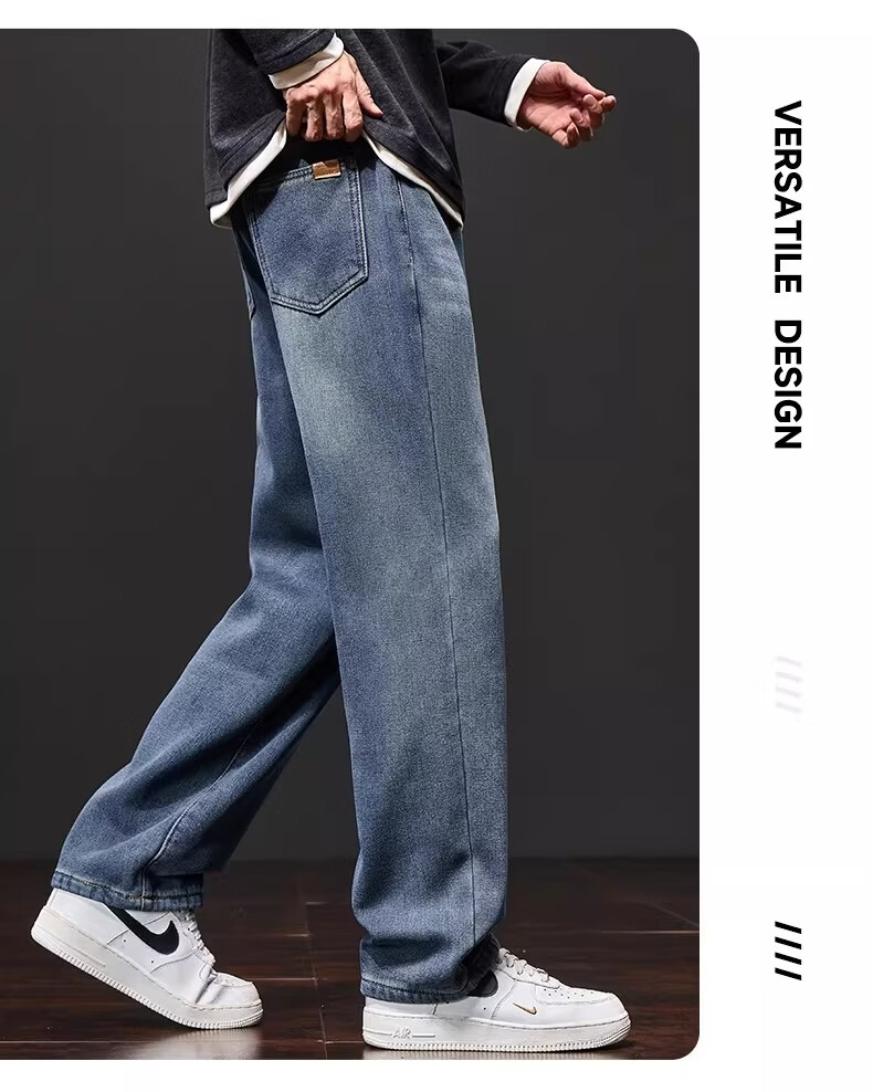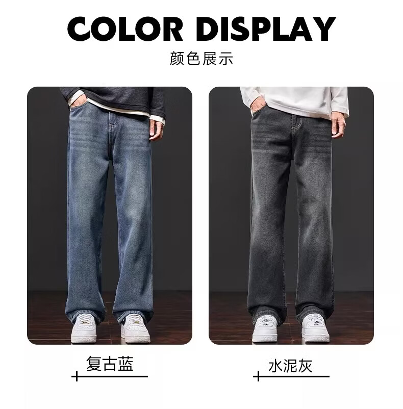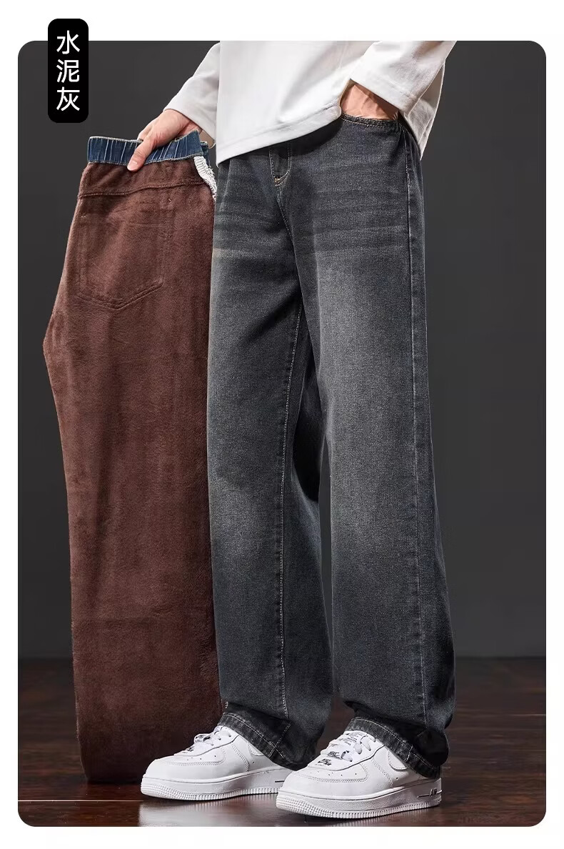 真维斯复古牛仔裤男士直筒宽松男裤2025秋冬新款美式潮牌加绒垂感阔腿裤 水泥灰 M