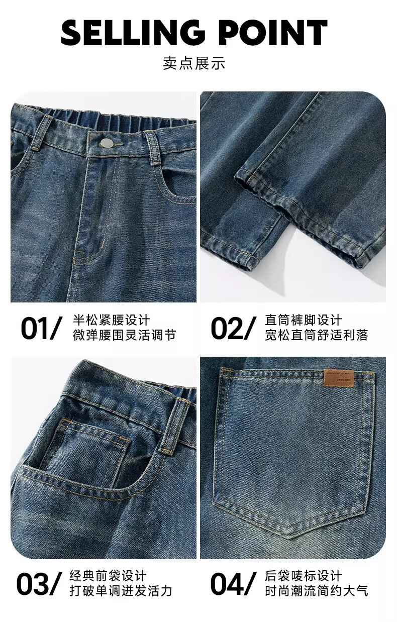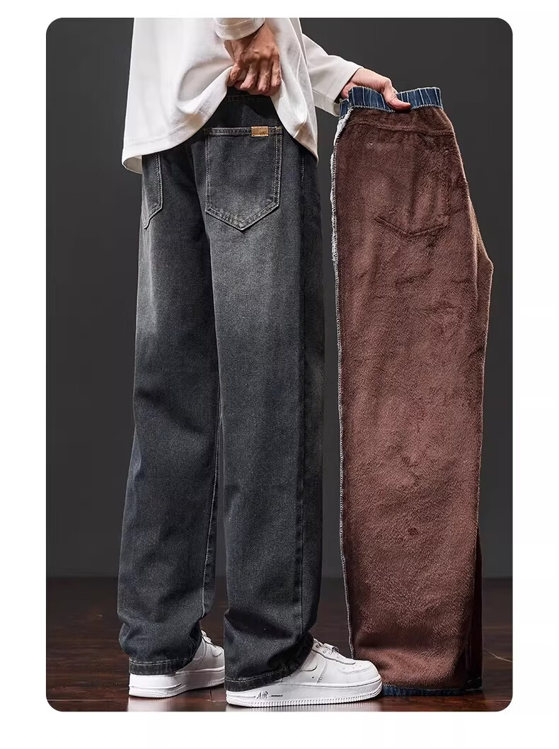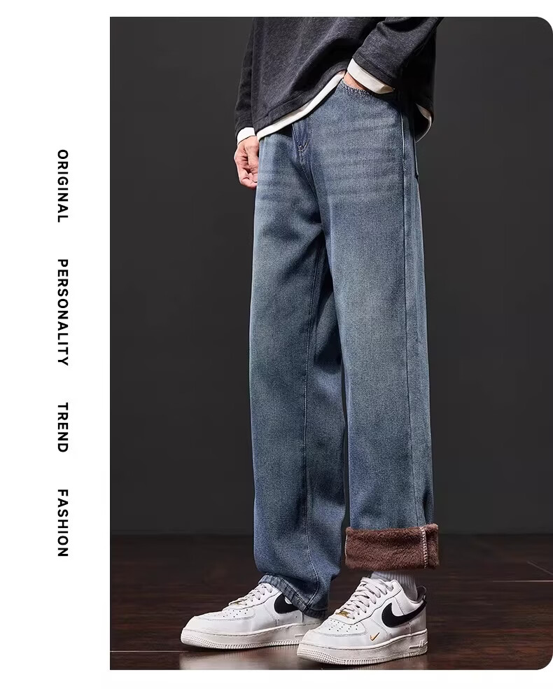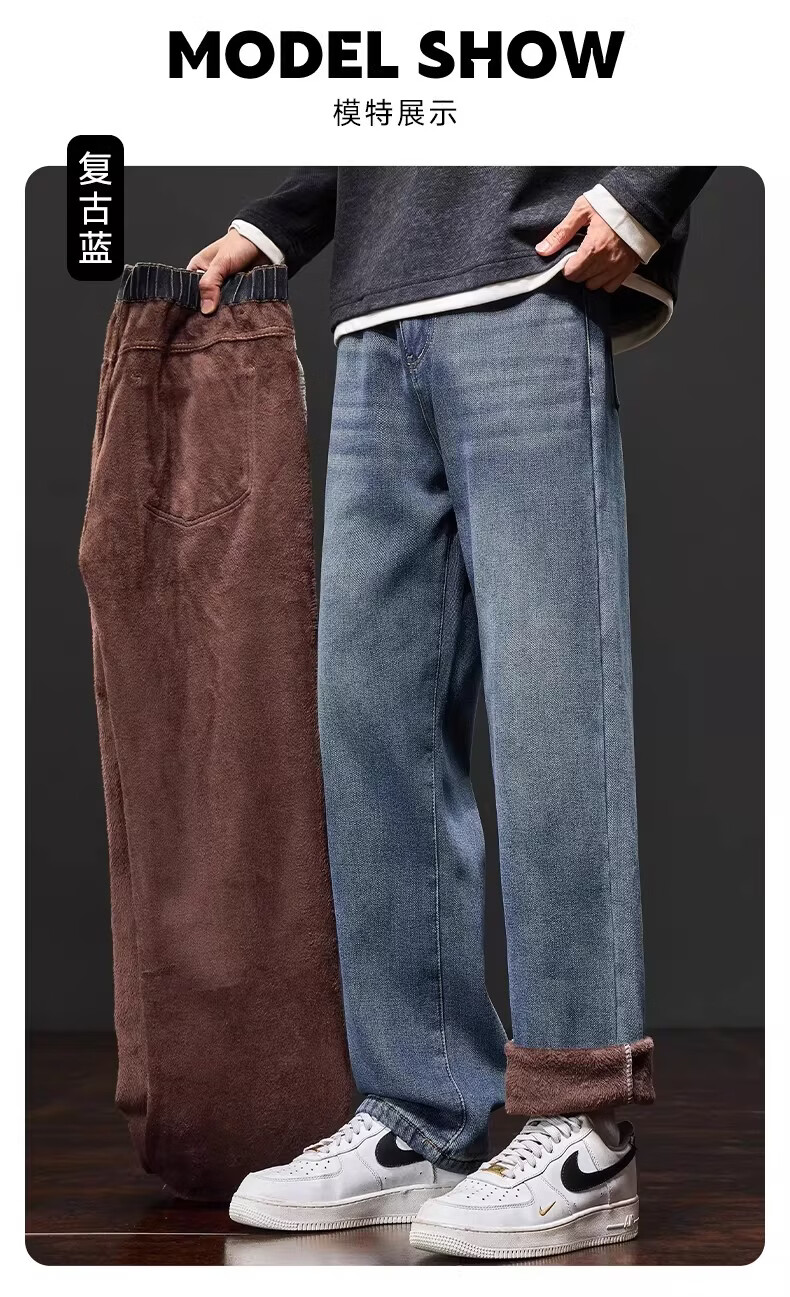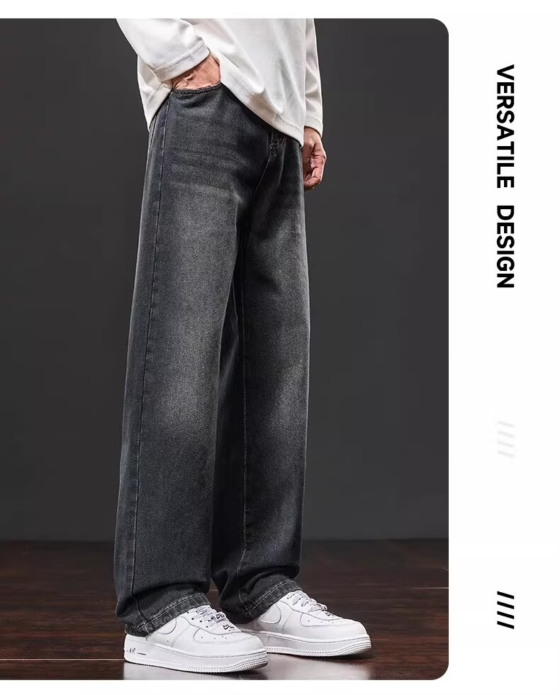 真维斯复古牛仔裤男士直筒宽松男裤2025秋冬新款美式潮牌加绒垂感阔腿裤 水泥灰 M