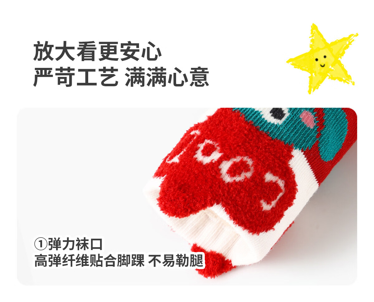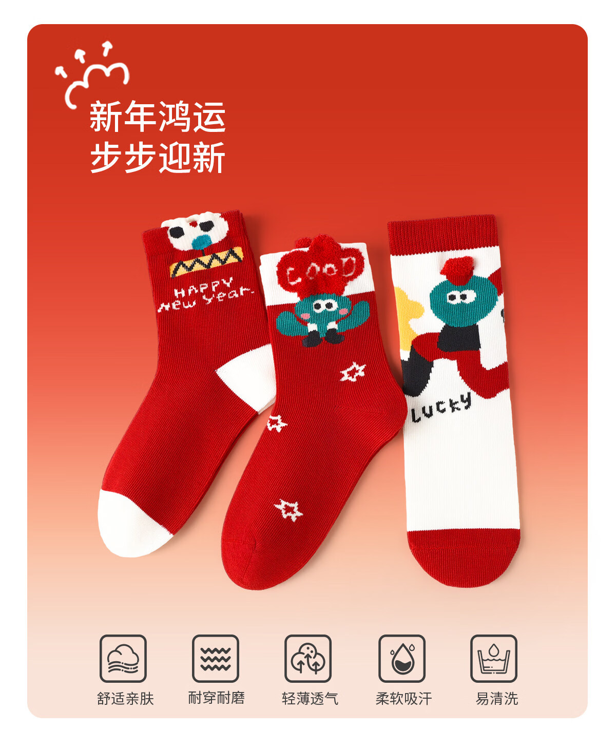 斑比儿童新年红色袜子马年棉袜秋冬季男女童宝宝无骨本命年中筒袜 BB25578 儿童新年红袜子 3双 1-3岁 建议脚码16-20码【14-16】