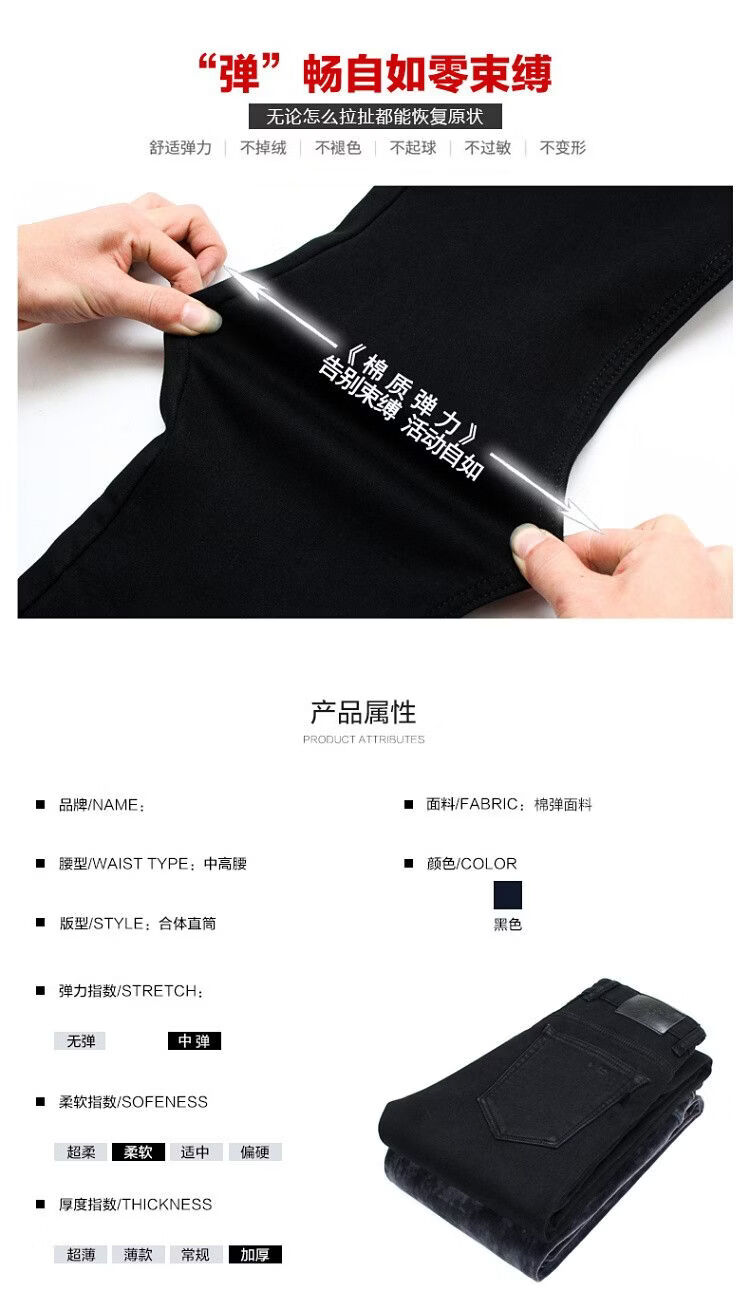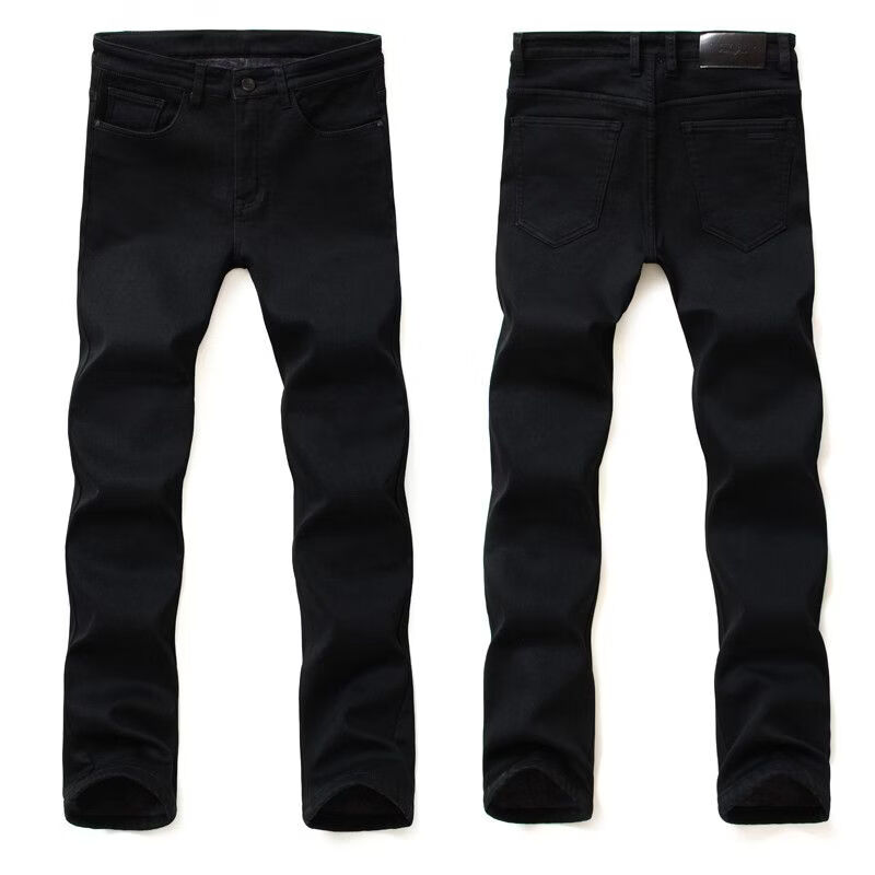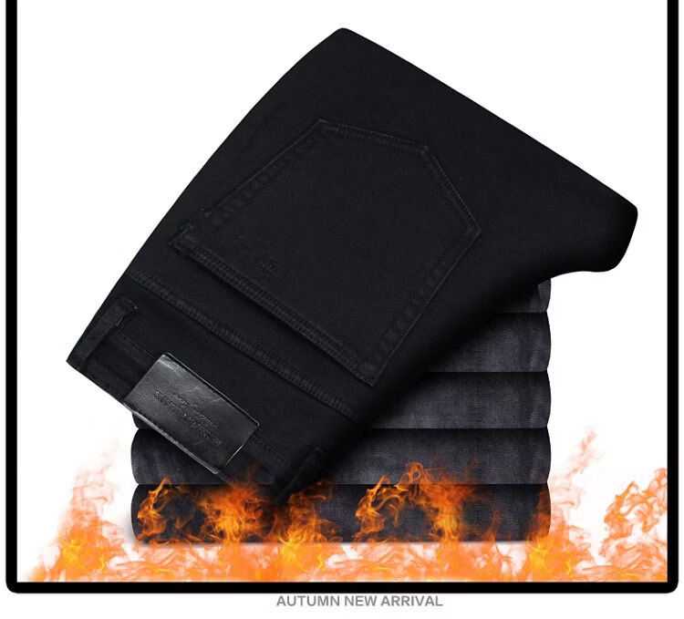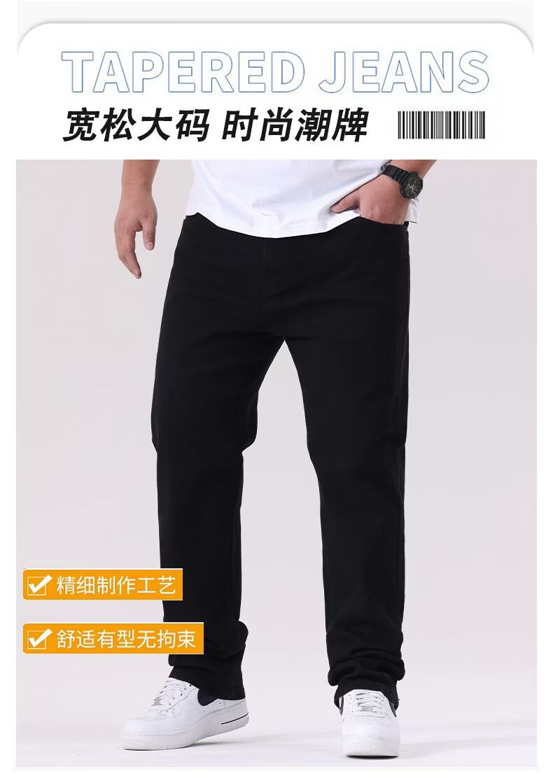 啄木鸟秋冬大码加厚牛仔裤男宽松加大加肥佬裤子男深裆运动裤胖子休闲裤 黑色 30