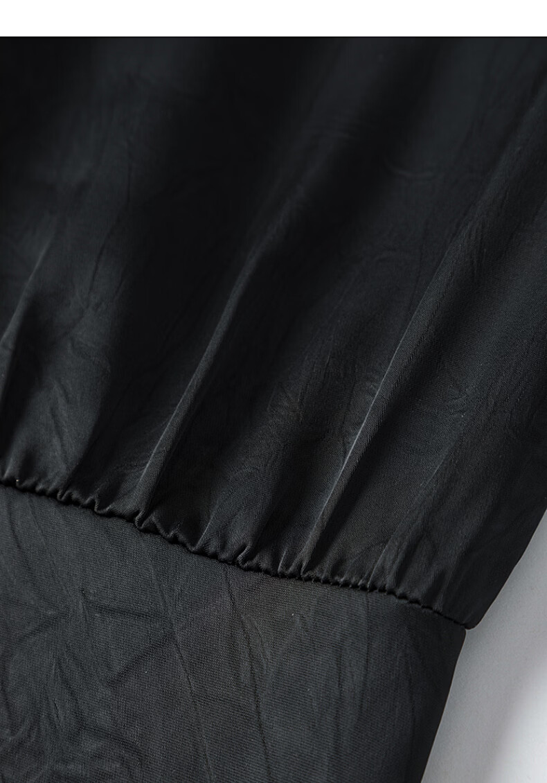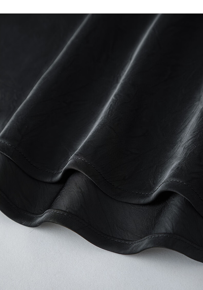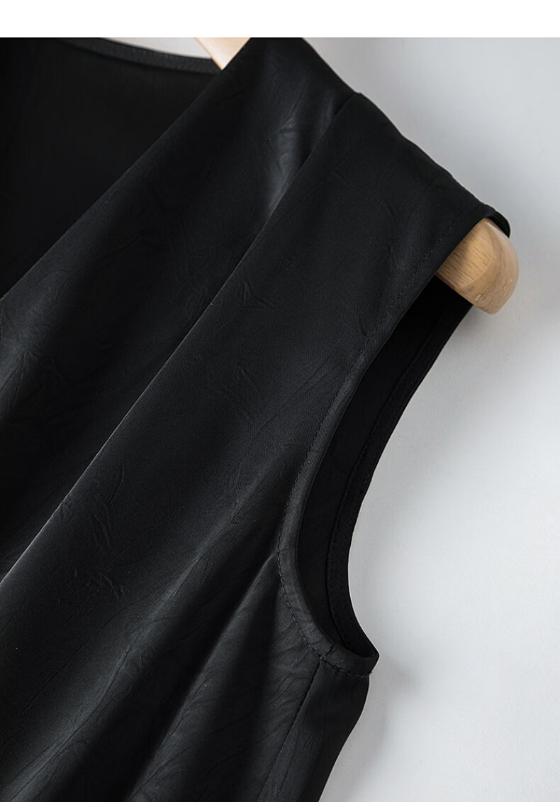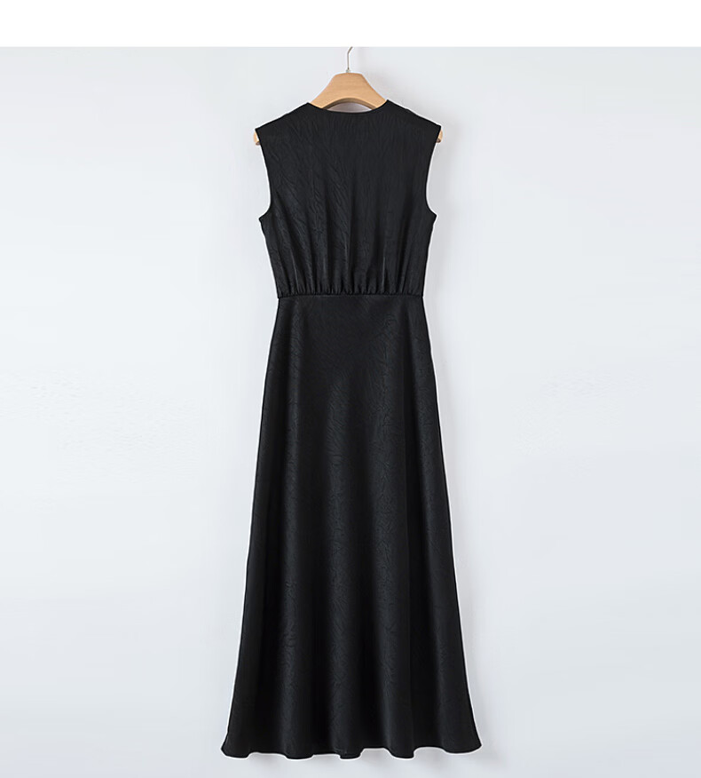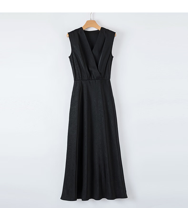 晚白【新品】2026年春款时尚V领裙子缎面印花丝滑垂顺无袖连衣裙 黑色 S