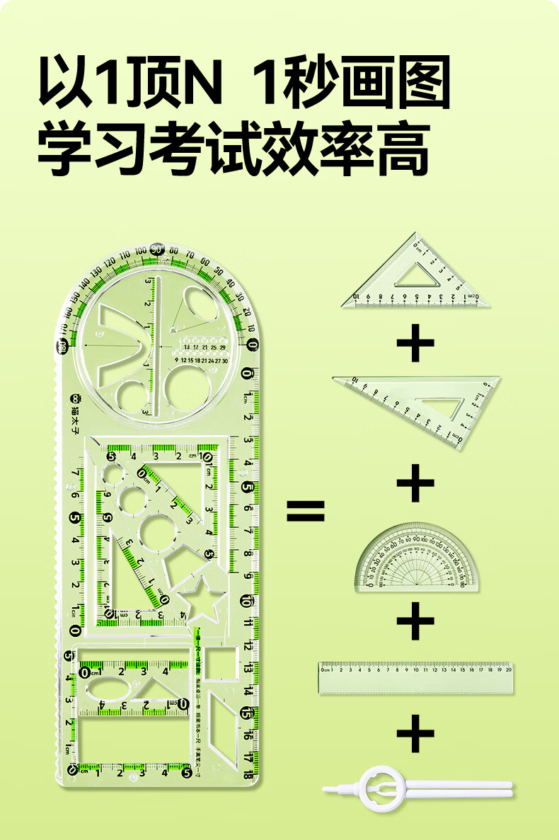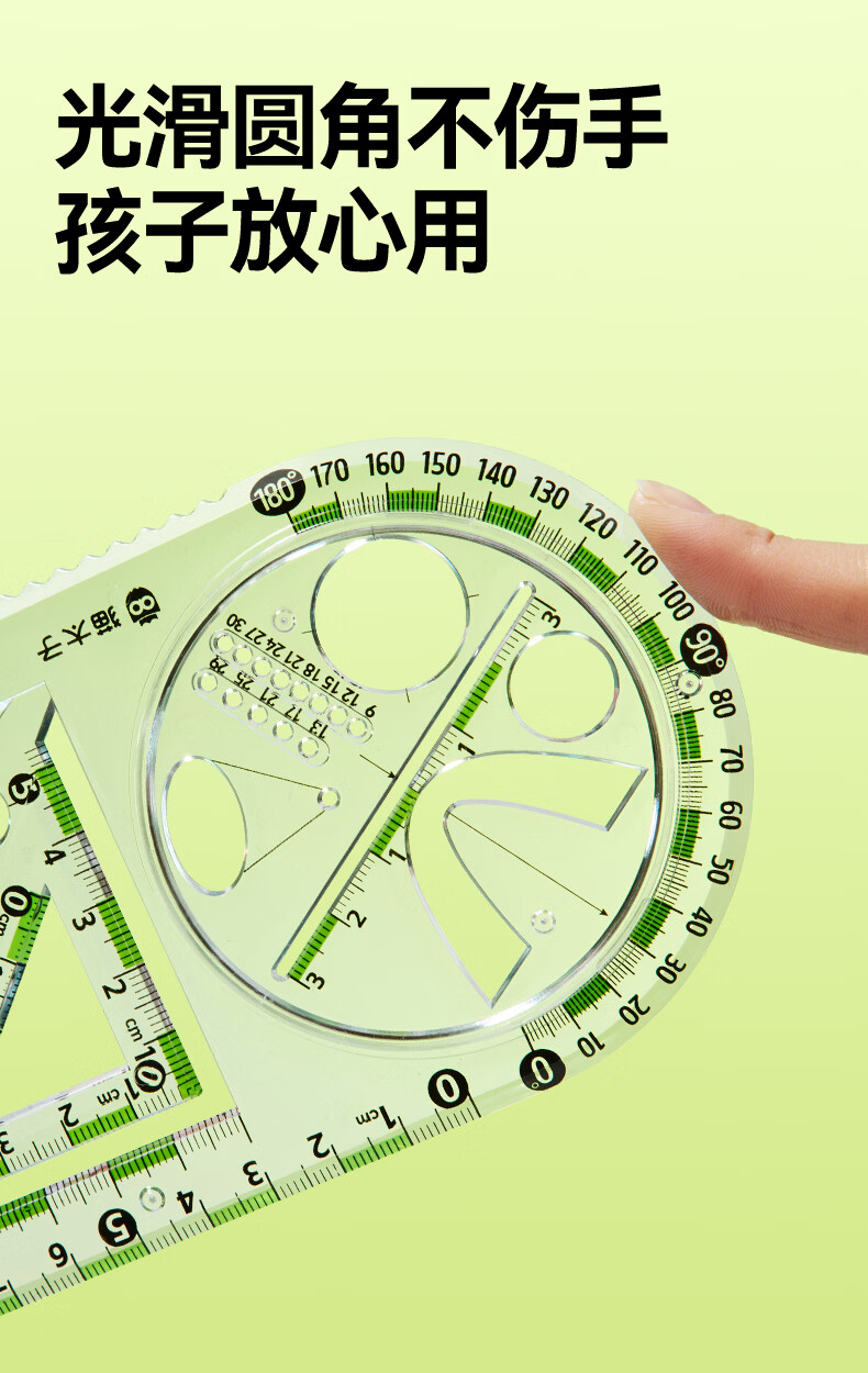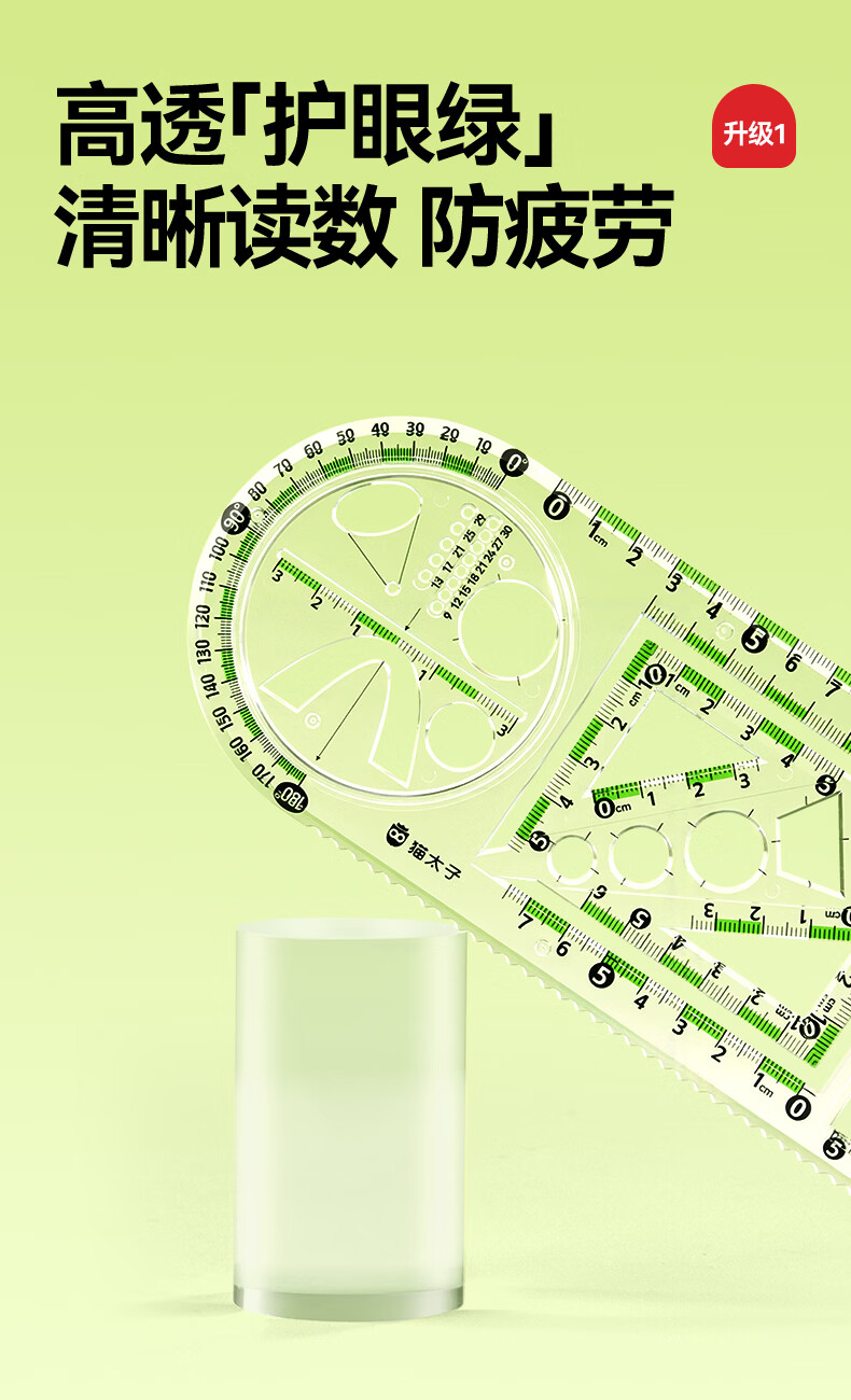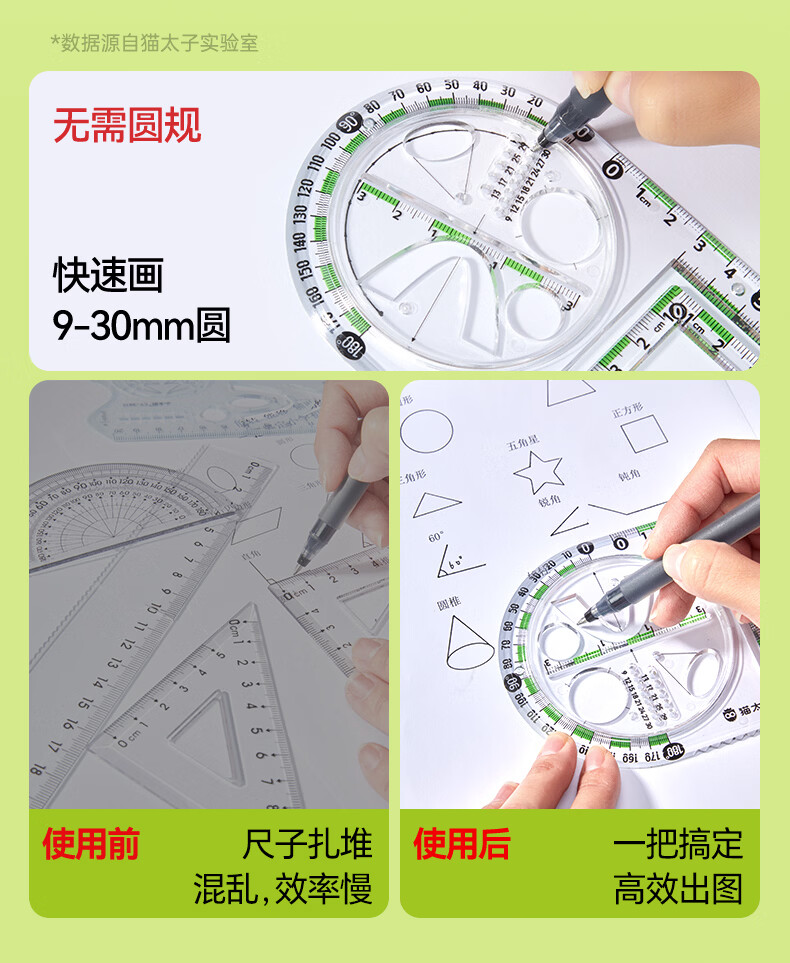 猫太子尺子多功能尺子学生专用几何绘图尺量角器几何尺几何图形画角尺旋转尺多用尺直尺 小学初中通用款