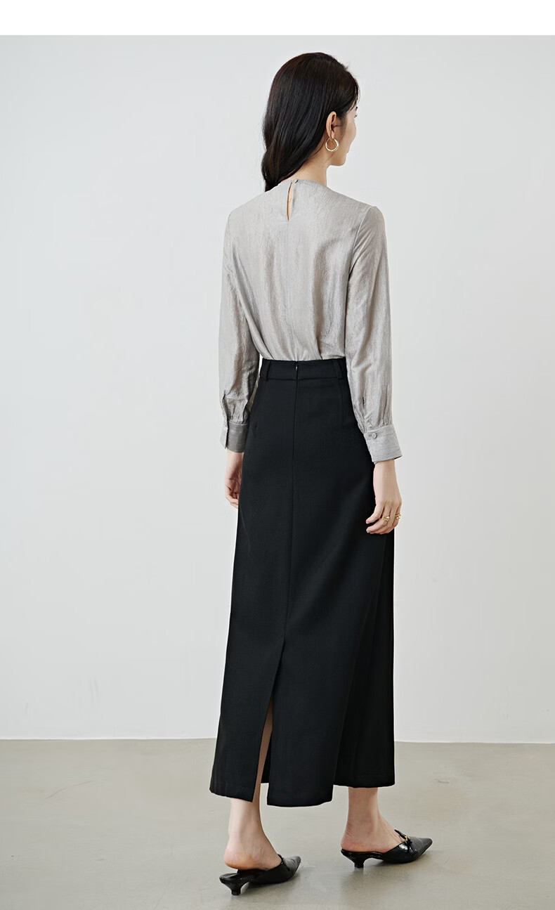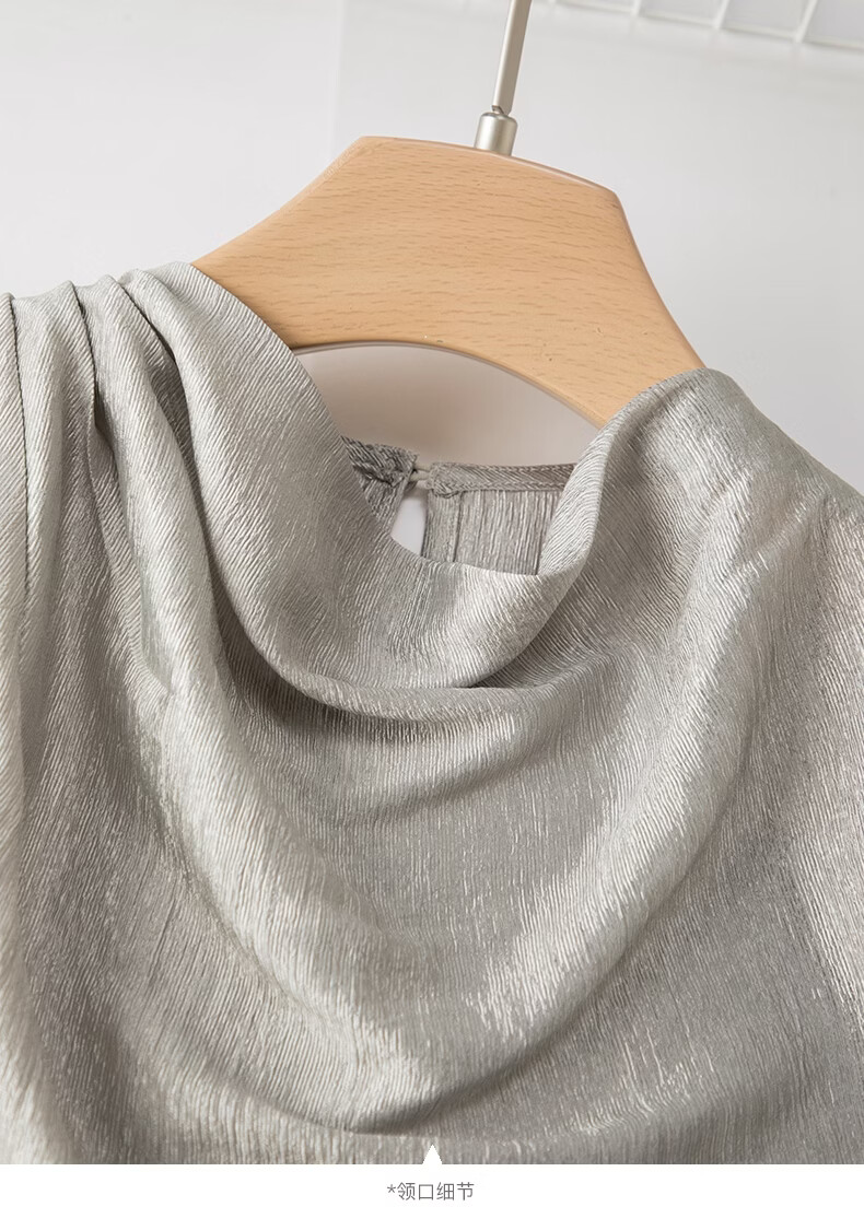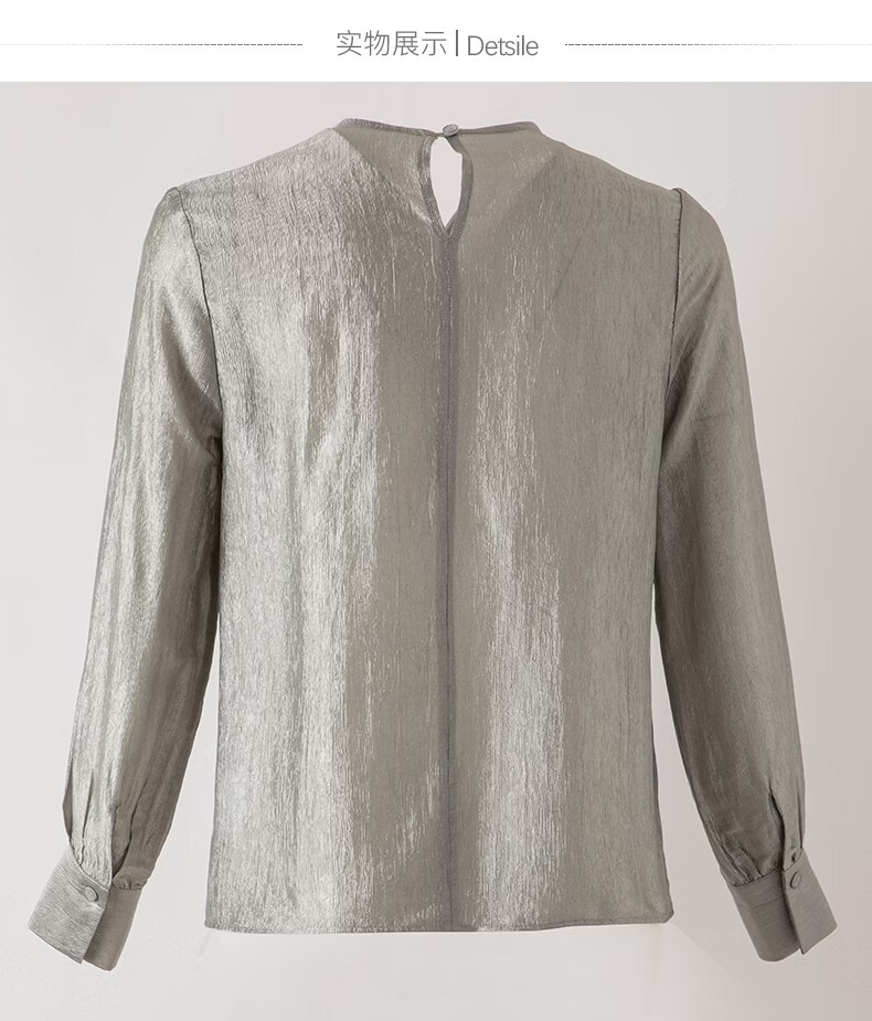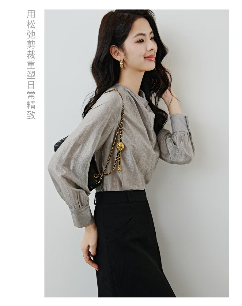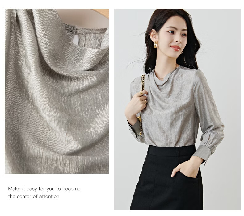 晚白【律政佳人】2026春千金风荡领醋酸光泽感格雷系上衣高级感衬衫女 银灰色 L