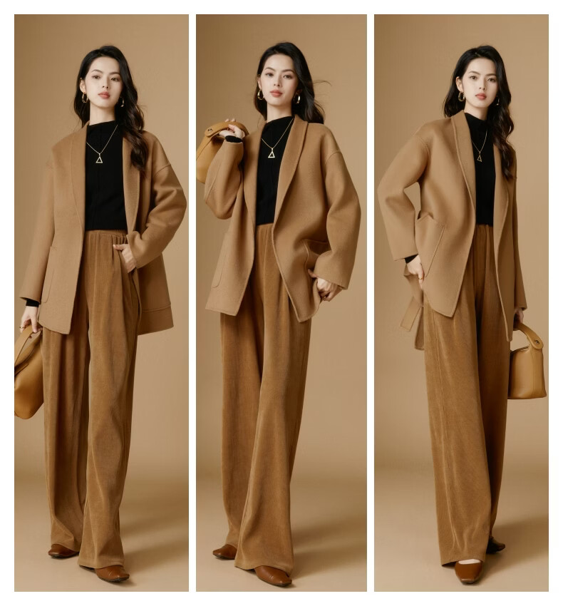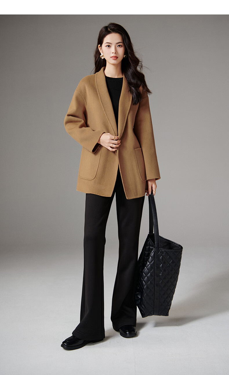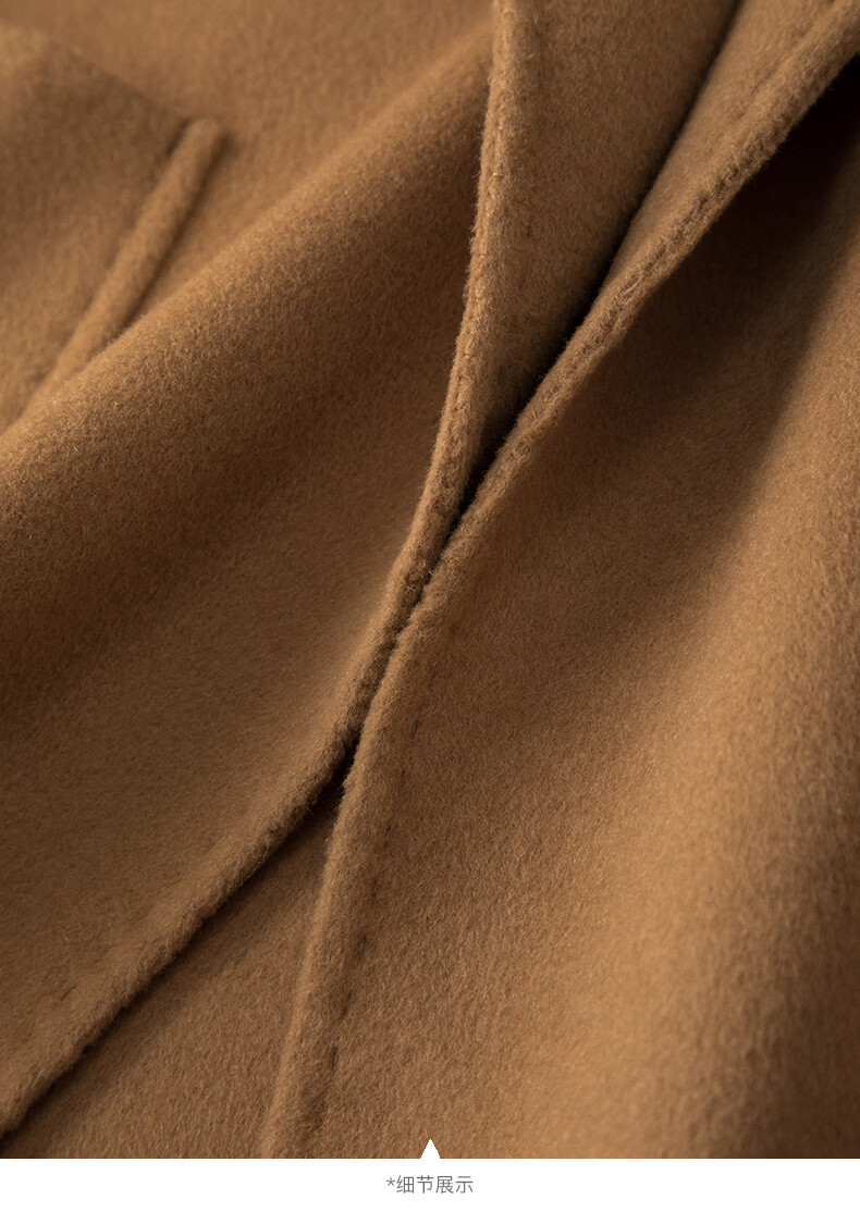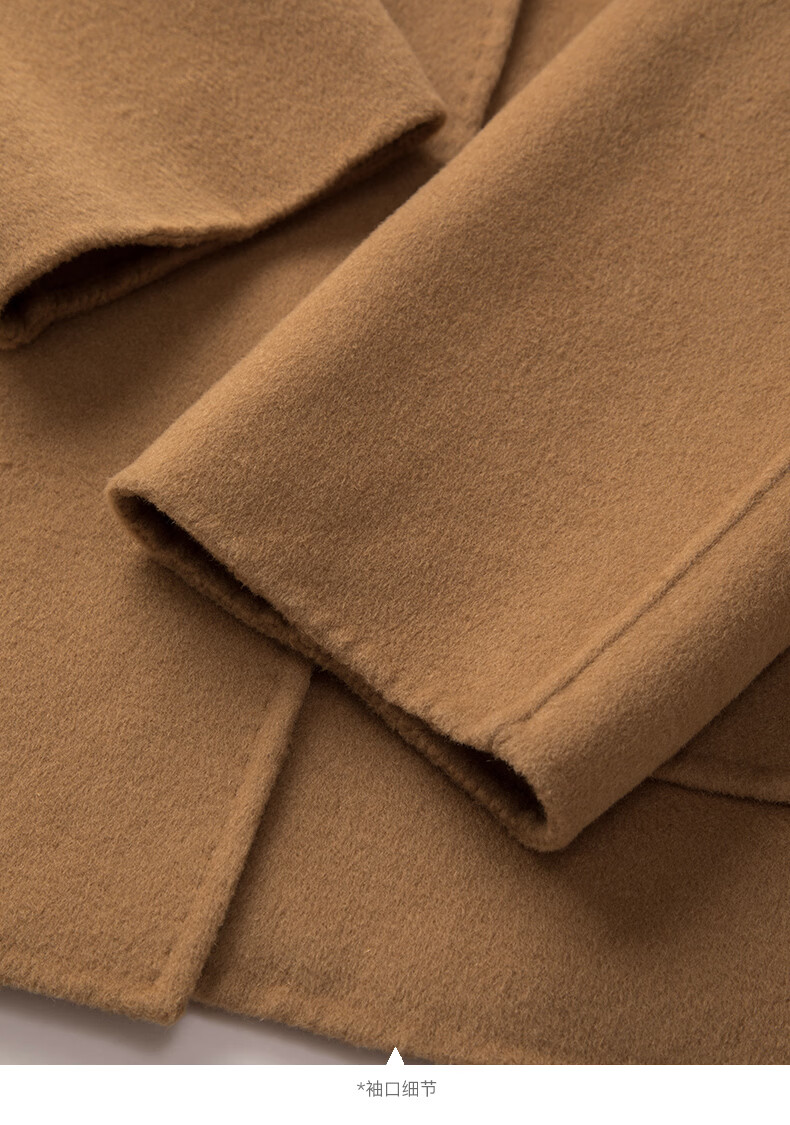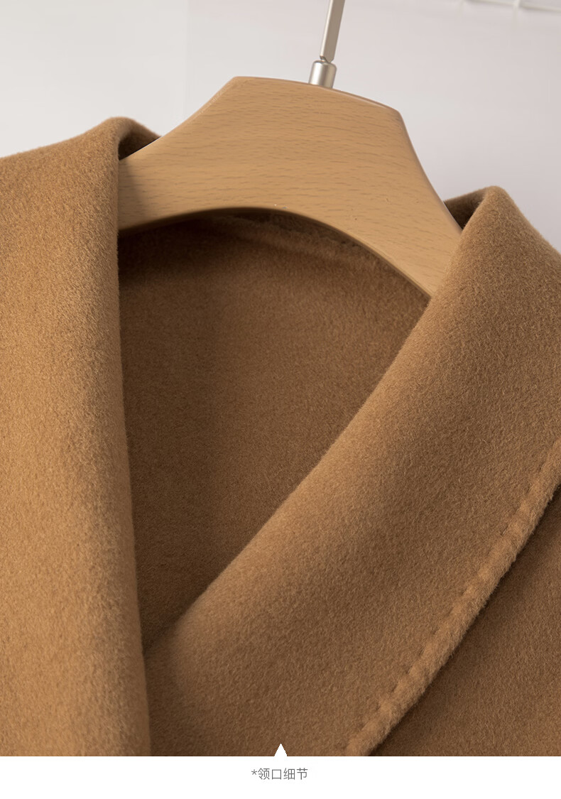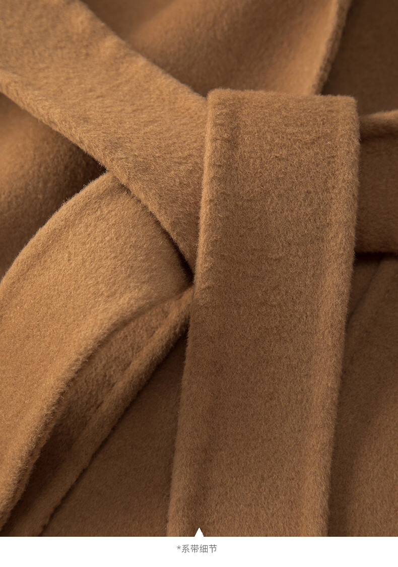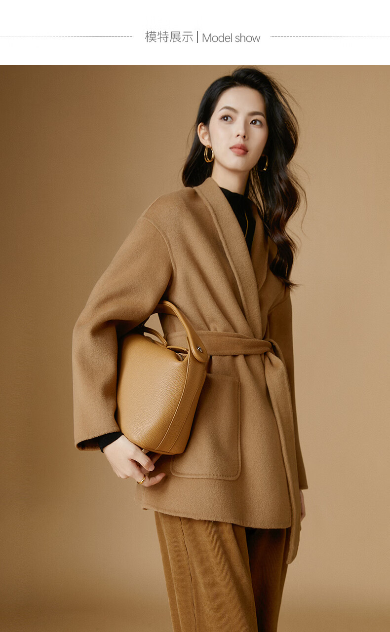 晚白【断码清仓】冬洋气小个子高级感收腰系带法式短款双面呢羊毛大衣 卡其色 XL
