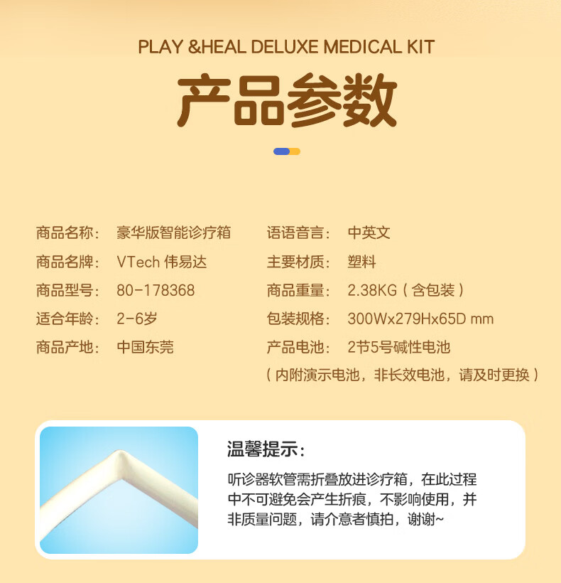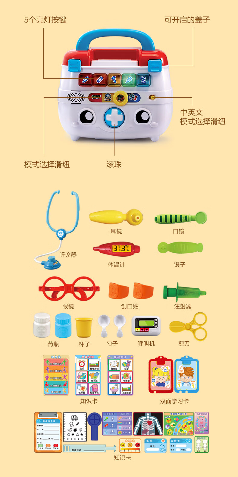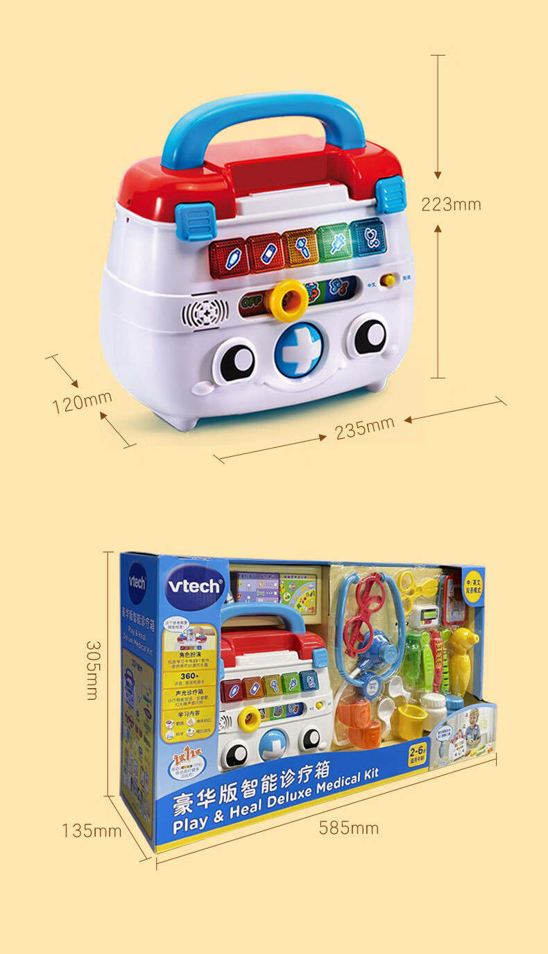 伟易达(Vtech)医生玩具儿童过家家双语豪华版智能诊疗箱听诊器男孩女孩生日礼物