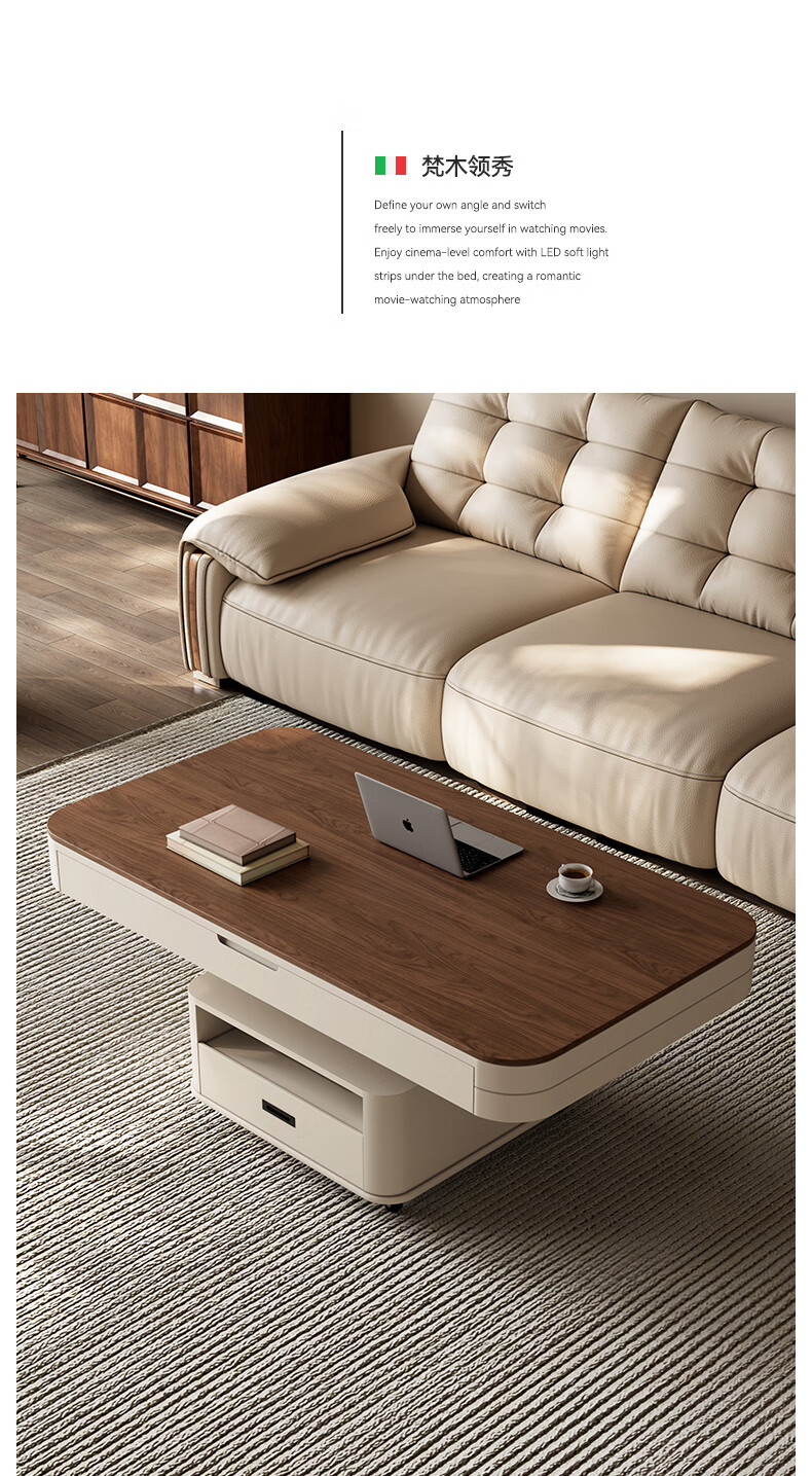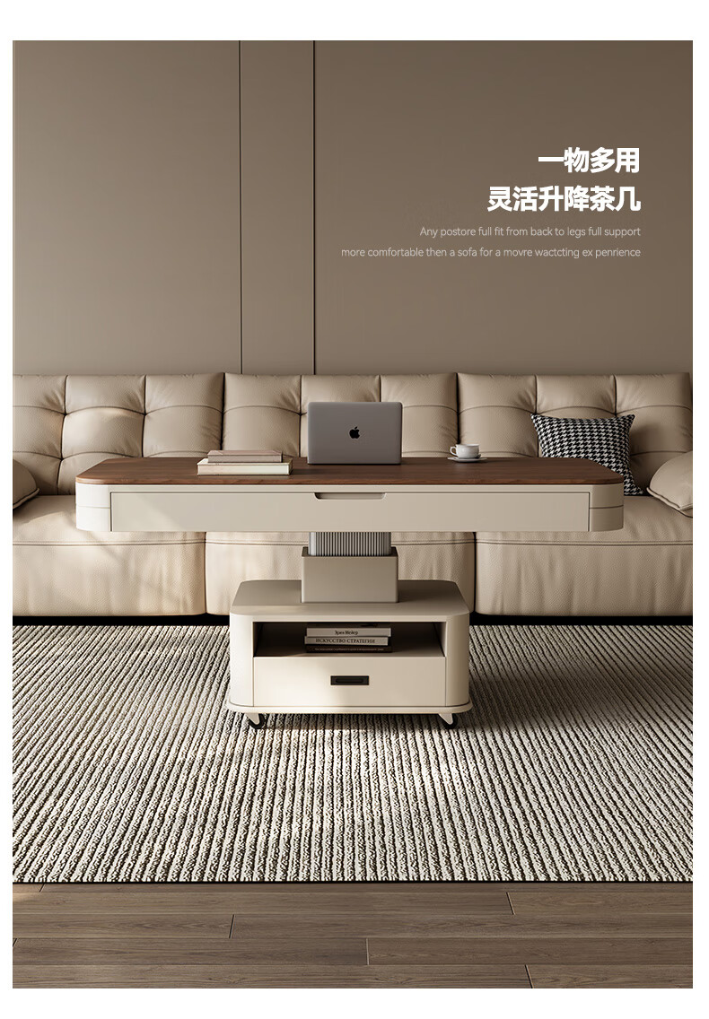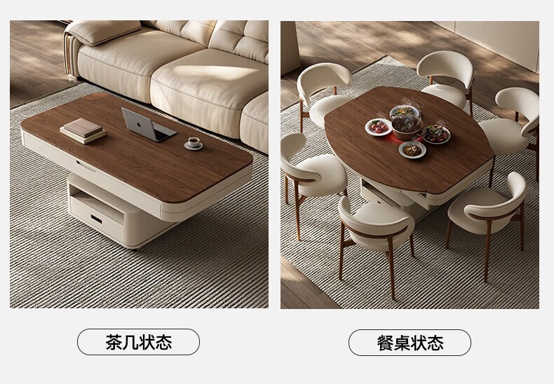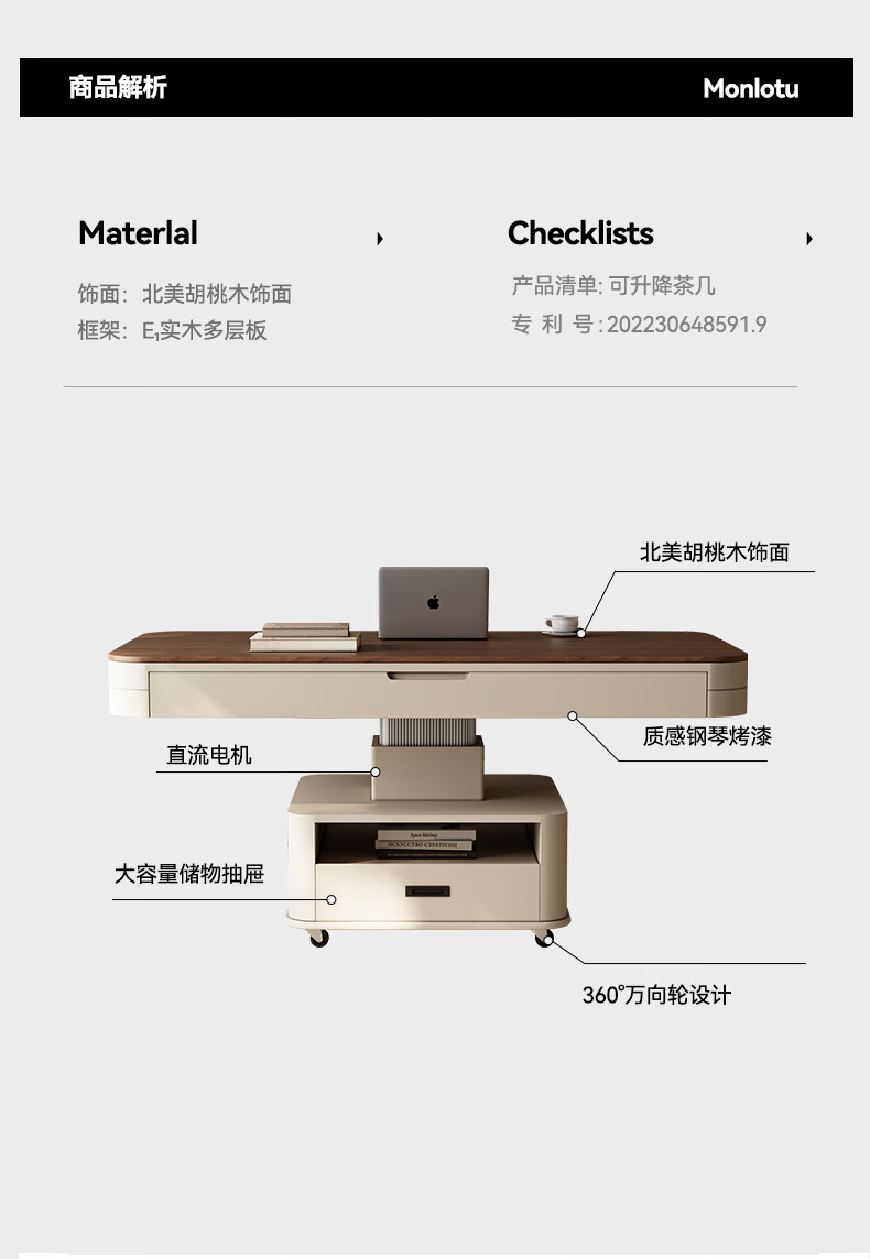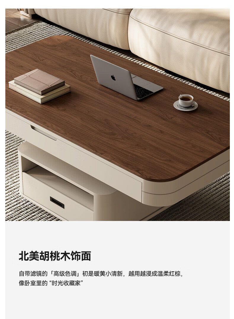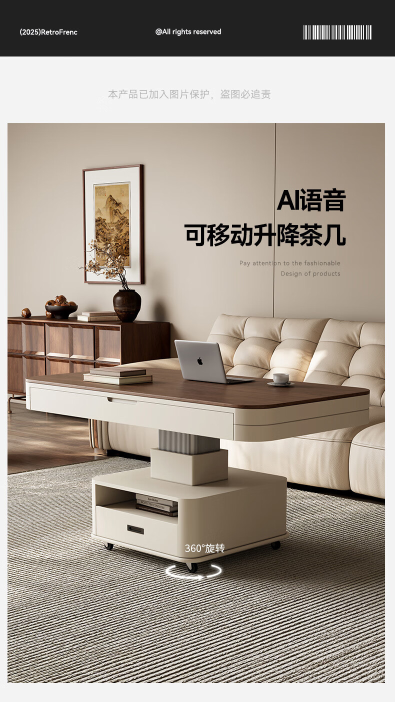 梵木领秀胡桃木轻奢电动升降茶几餐桌两用小户型新款可移动智能茶几二合一 【胡桃木纹】1.2米语音升降【充电款无需插电】