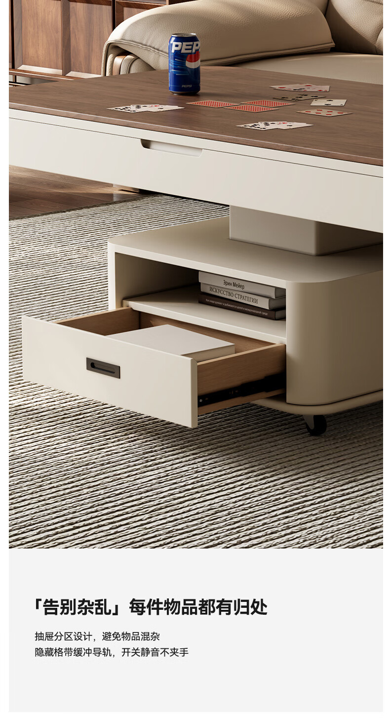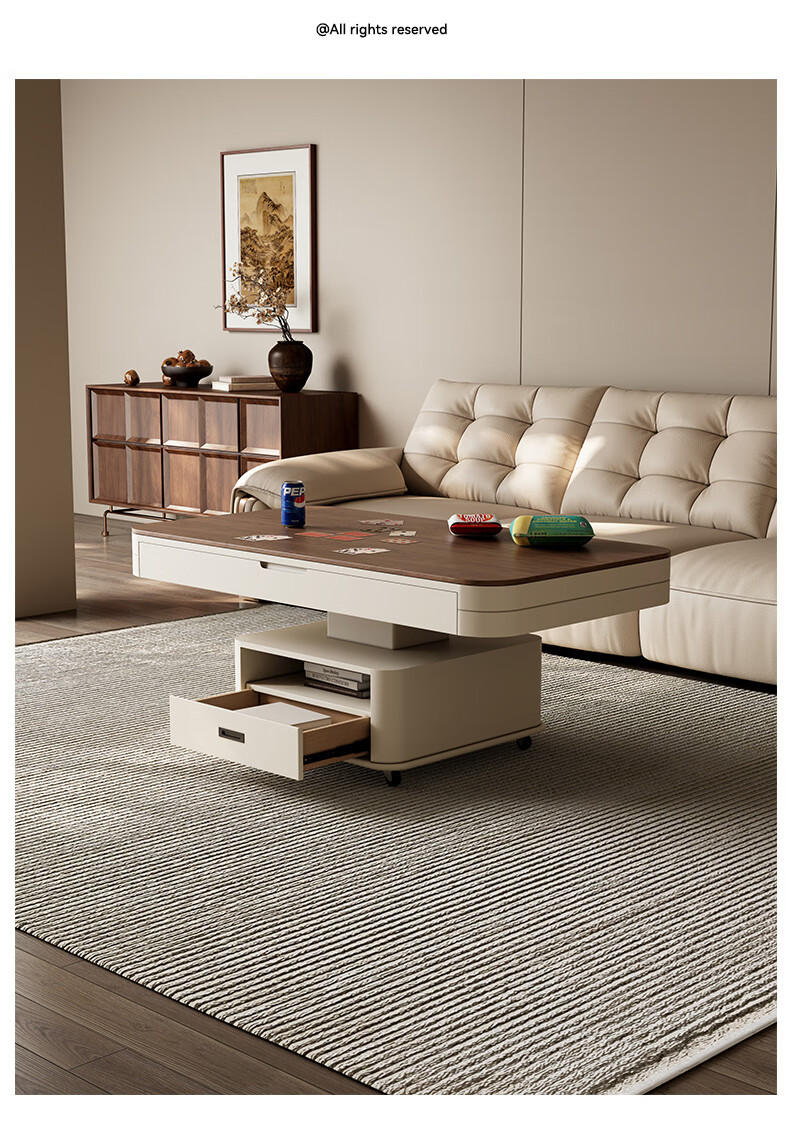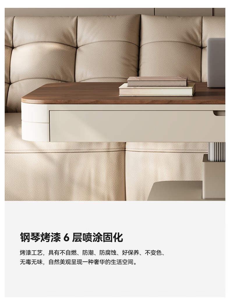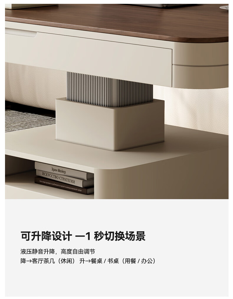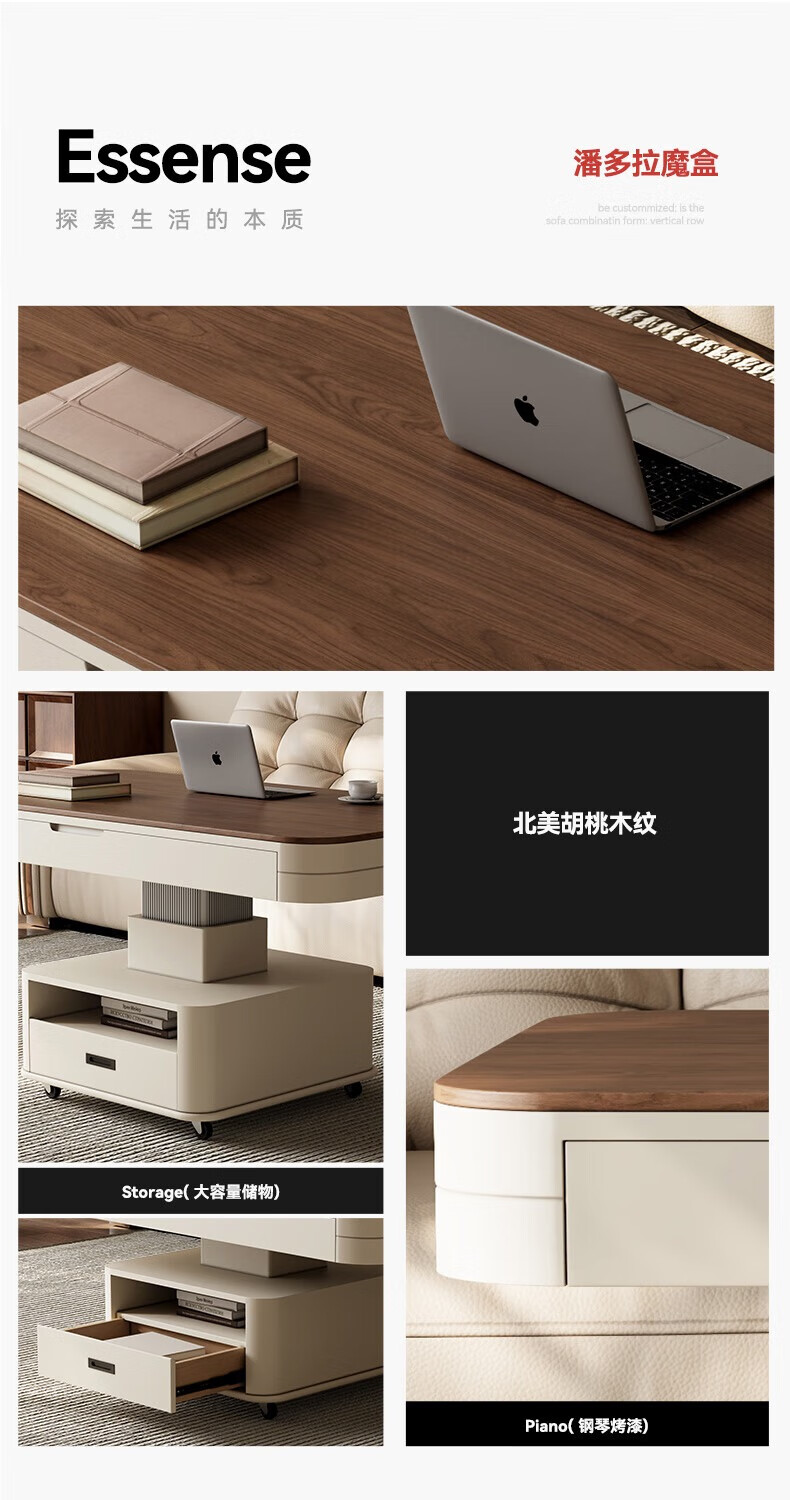 梵木领秀胡桃木轻奢电动升降茶几餐桌两用小户型新款可移动智能茶几二合一 【胡桃木纹】1.2米语音升降【充电款无需插电】