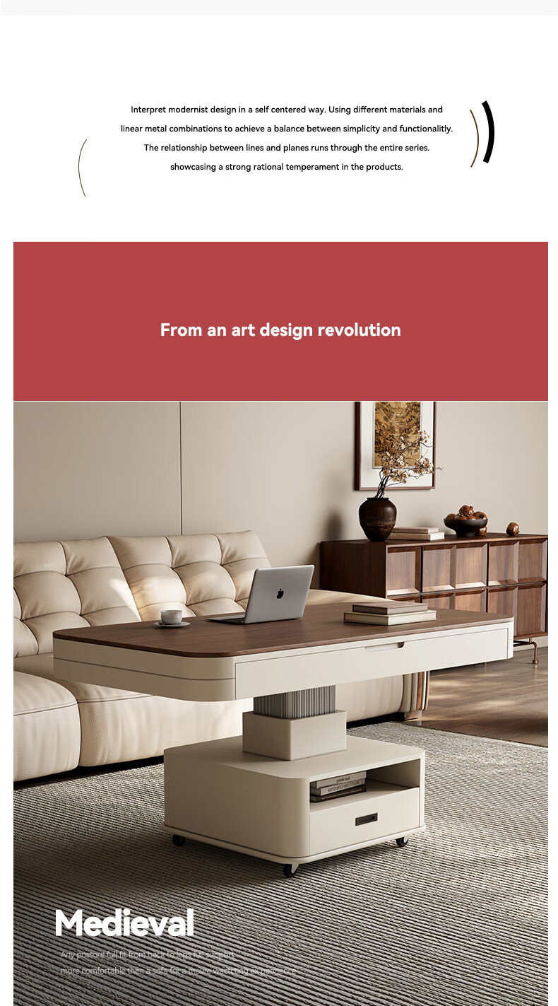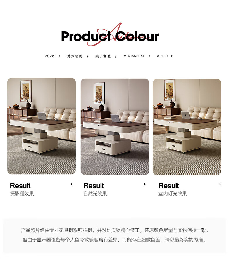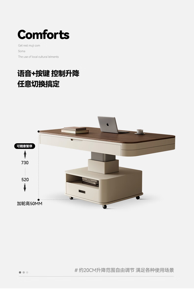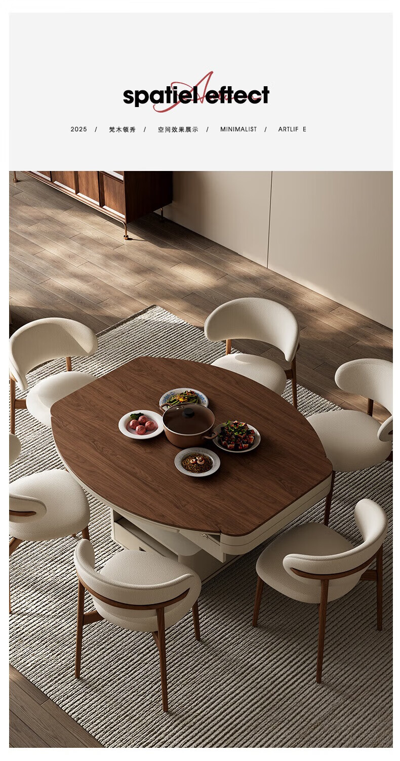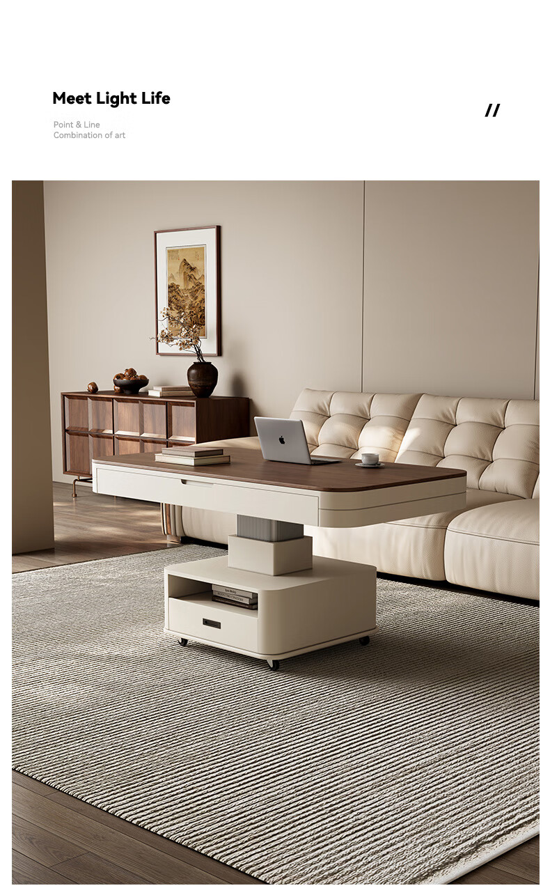 梵木领秀胡桃木轻奢电动升降茶几餐桌两用小户型新款可移动智能茶几二合一 【胡桃木纹】1.2米语音升降【充电款无需插电】