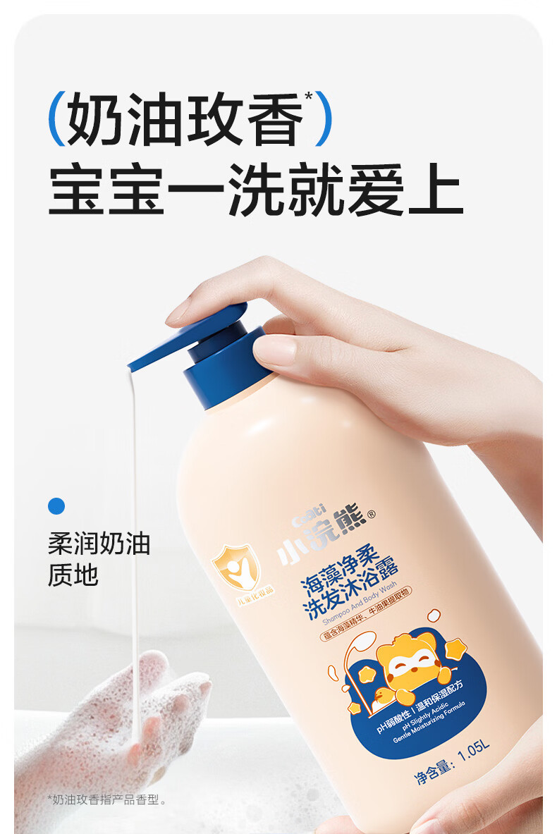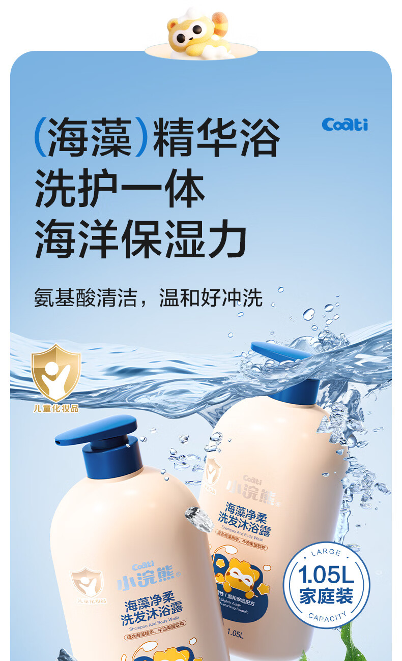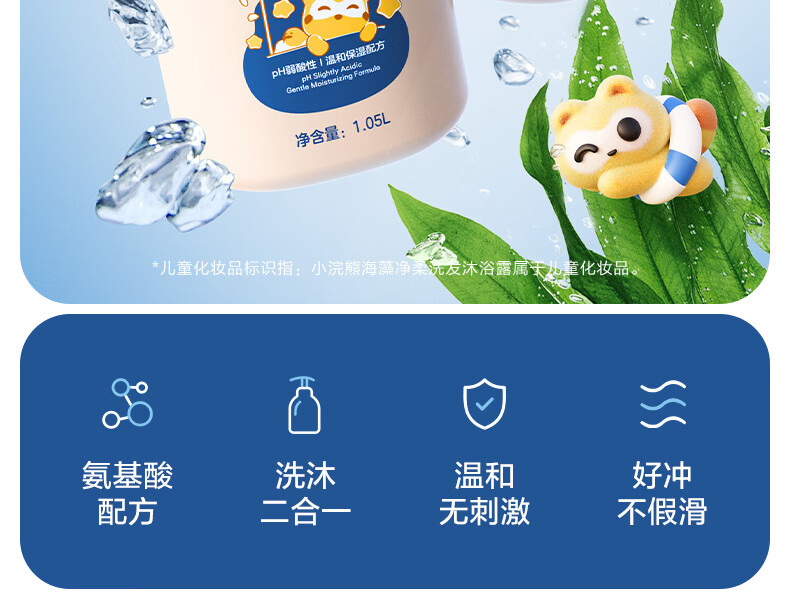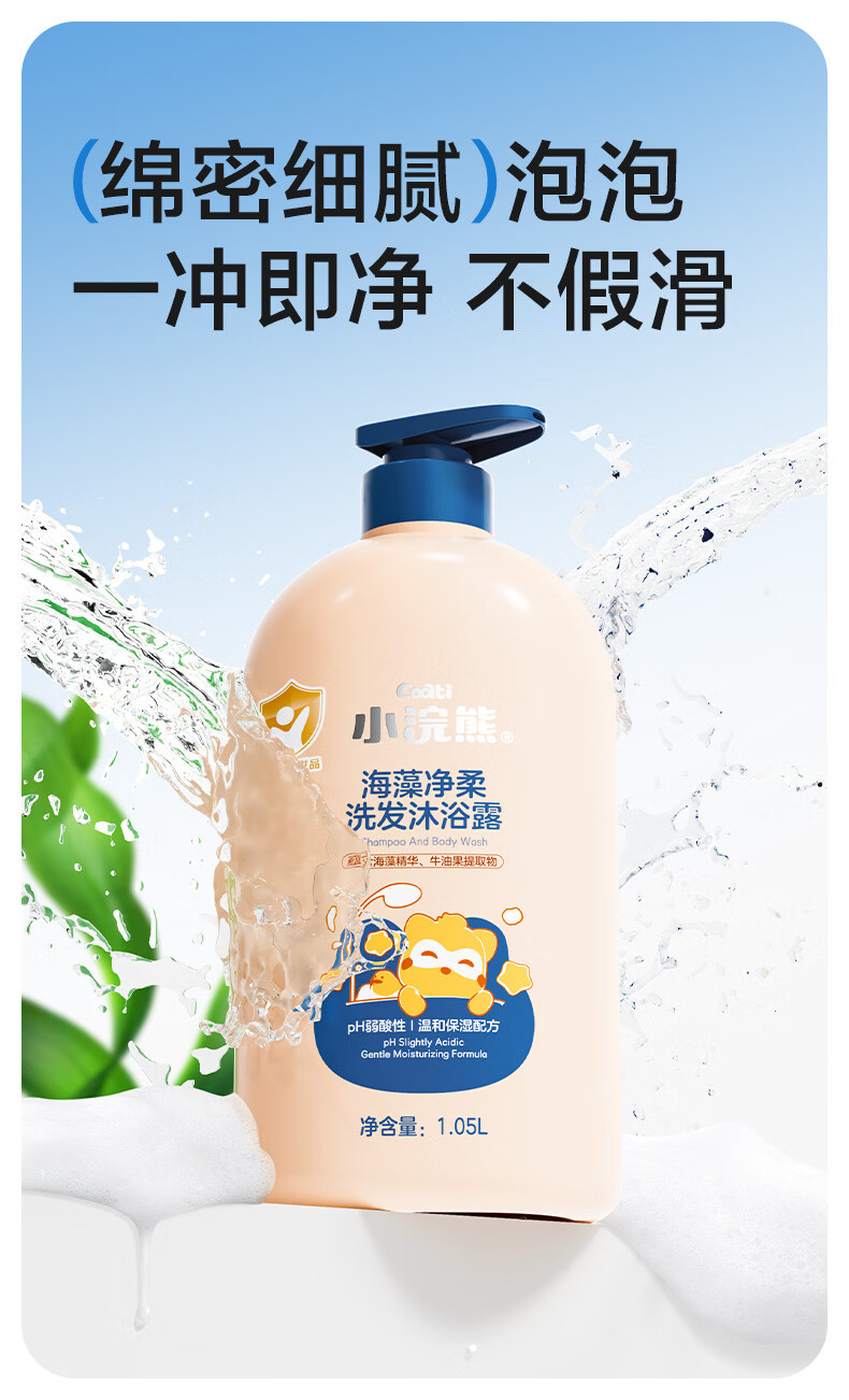 小浣熊婴儿沐浴露洗发水二合一新生儿童洗发水3-6岁氨基酸宝宝沐浴液 【家庭装】海藻洗发沐浴露1.05L