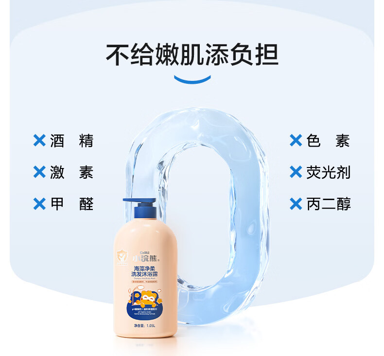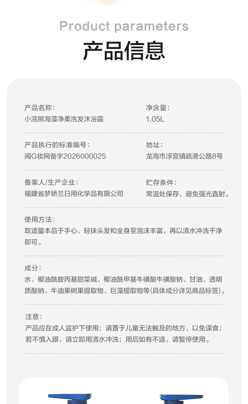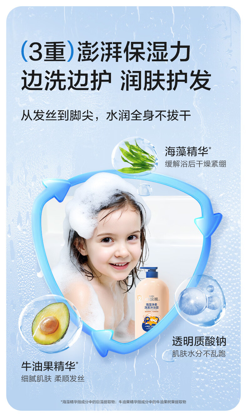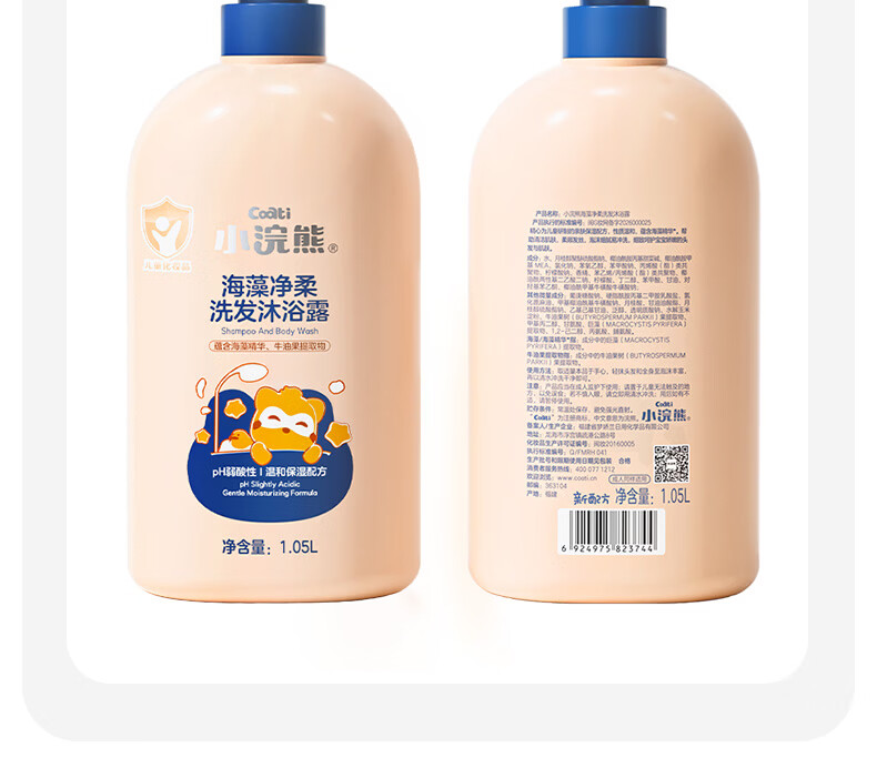 小浣熊婴儿沐浴露洗发水二合一新生儿童洗发水3-6岁氨基酸宝宝沐浴液 【家庭装】海藻洗发沐浴露1.05L