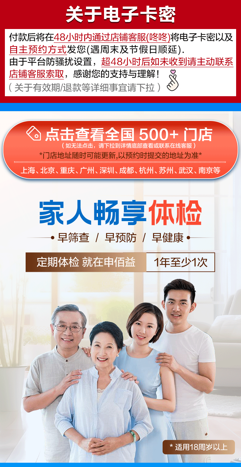 美年大健康瑞慈体检家人畅享D体检套餐成人全国门店通用体检卡 高阶版(1人)(美年瑞慈) 2个工作日内店铺客服(咚咚)发您电子卡密自主预约