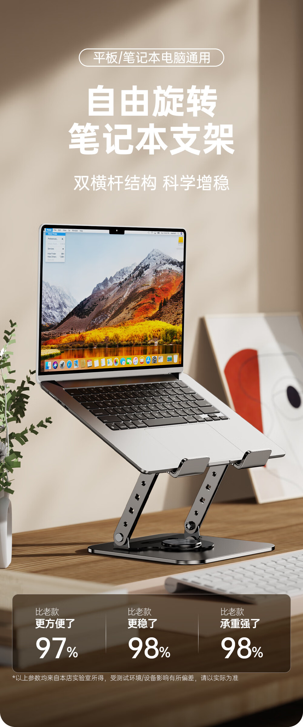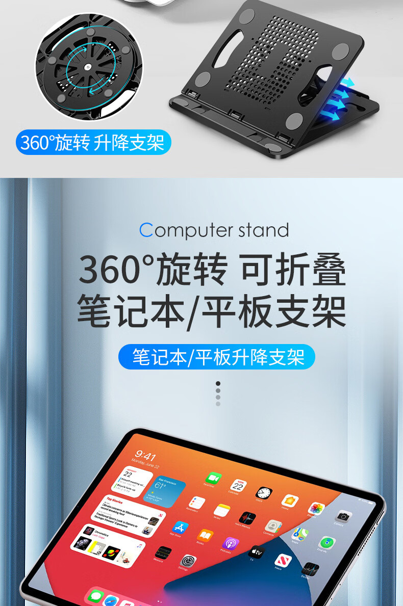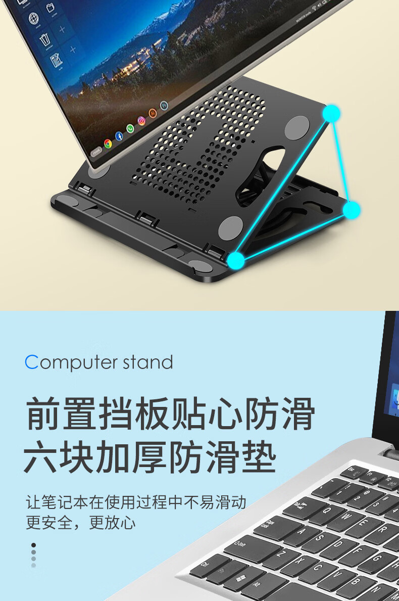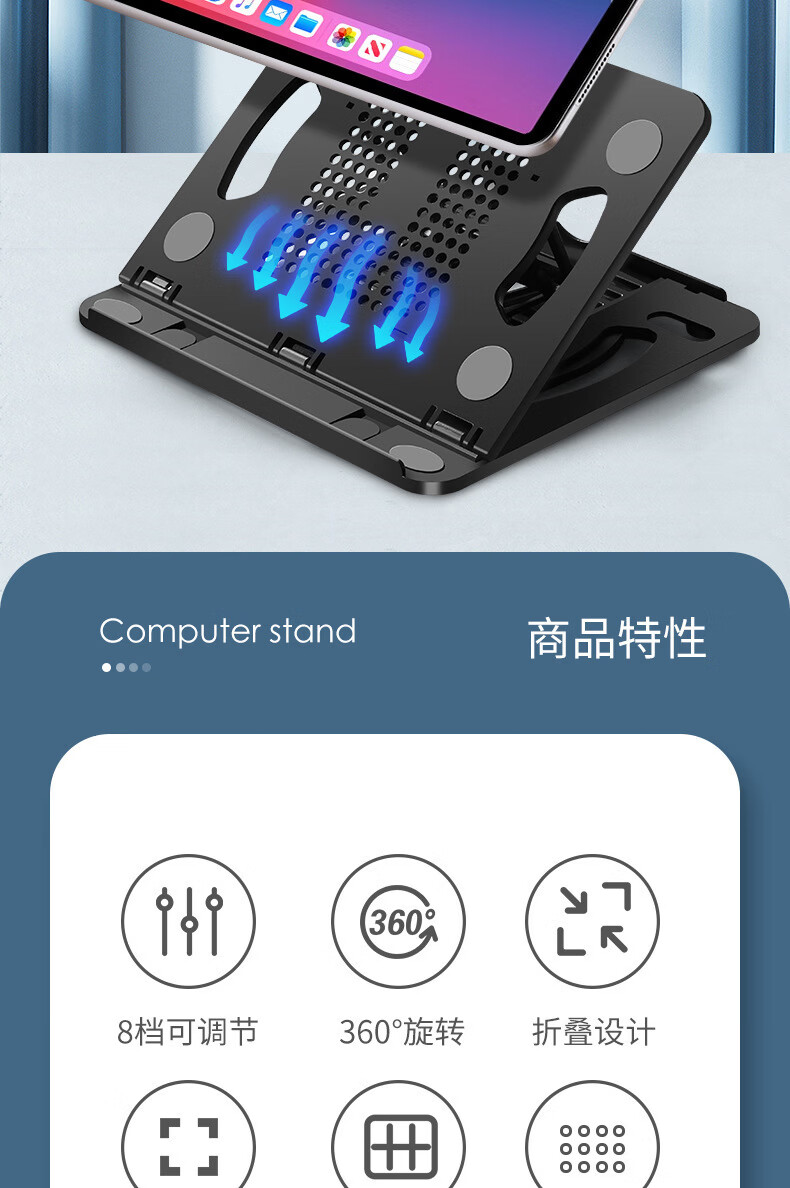 【直发】笔记本支架增高折叠散热便携旋转电脑支架桌面高度可调节 P2笔记本支架-黑色【ABS材质+360