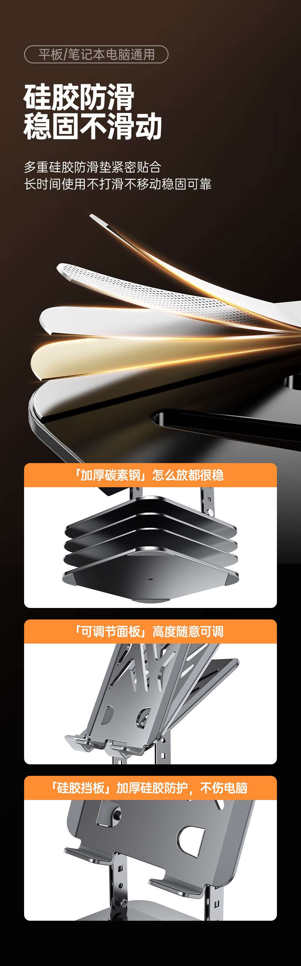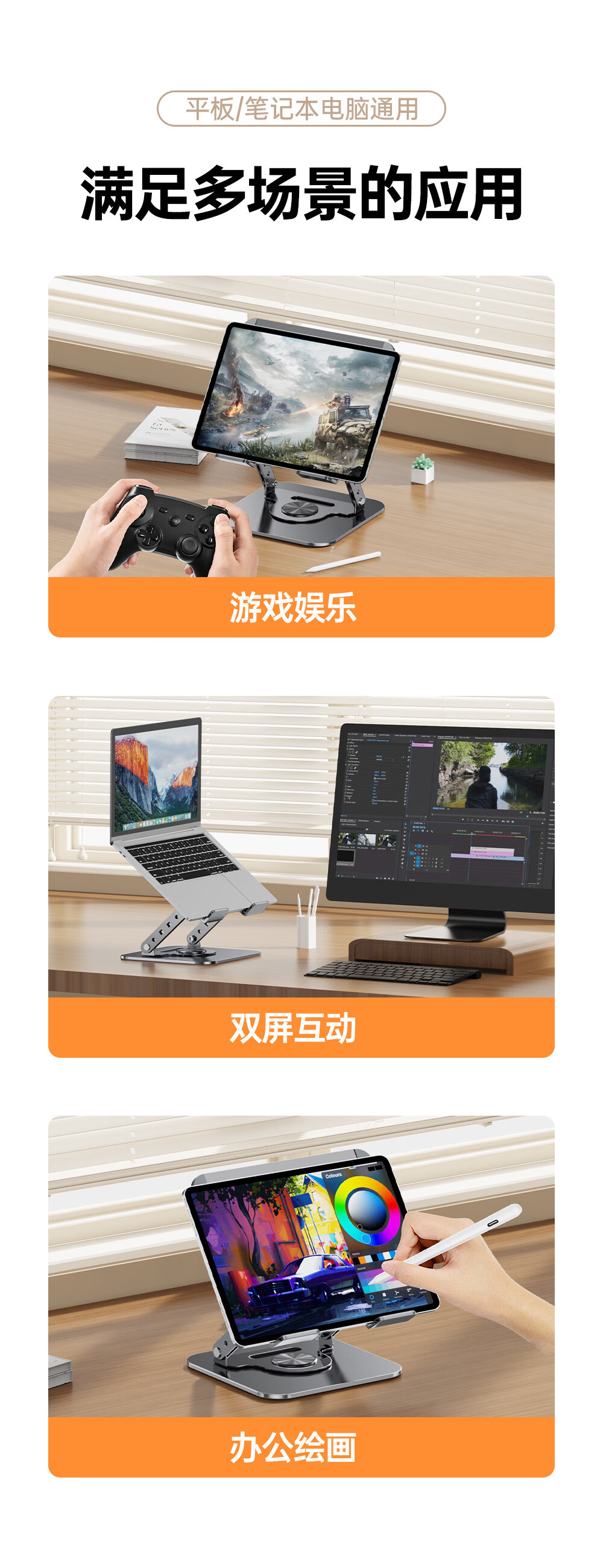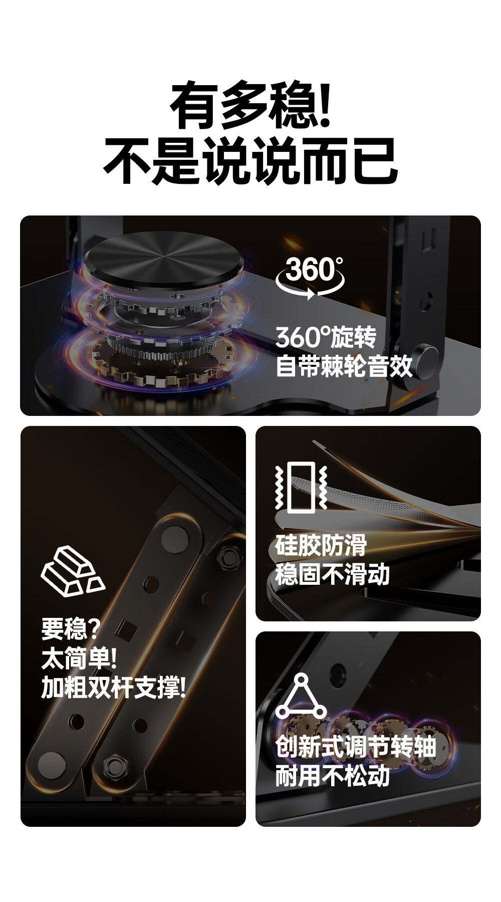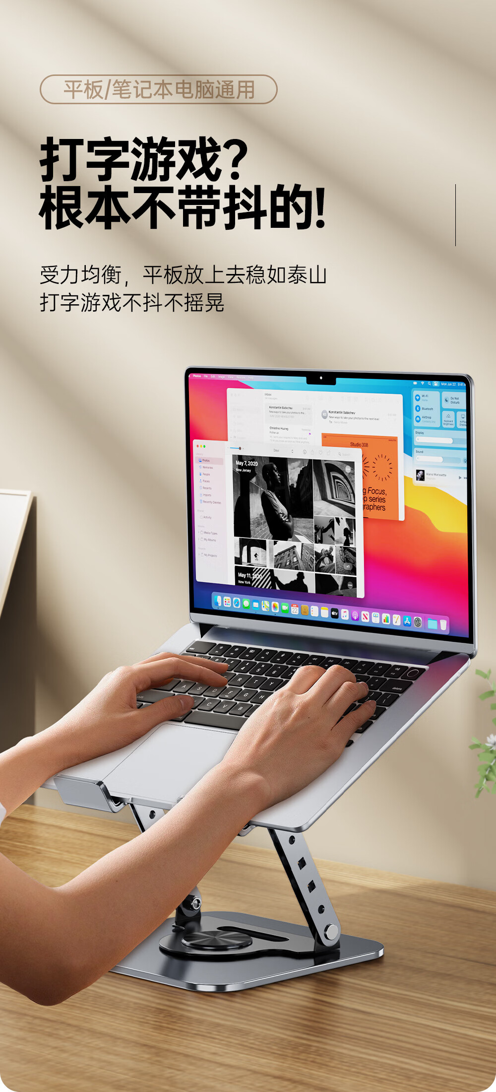 【直发】笔记本支架增高折叠散热便携旋转电脑支架桌面高度可调节 P2笔记本支架-黑色【ABS材质+360