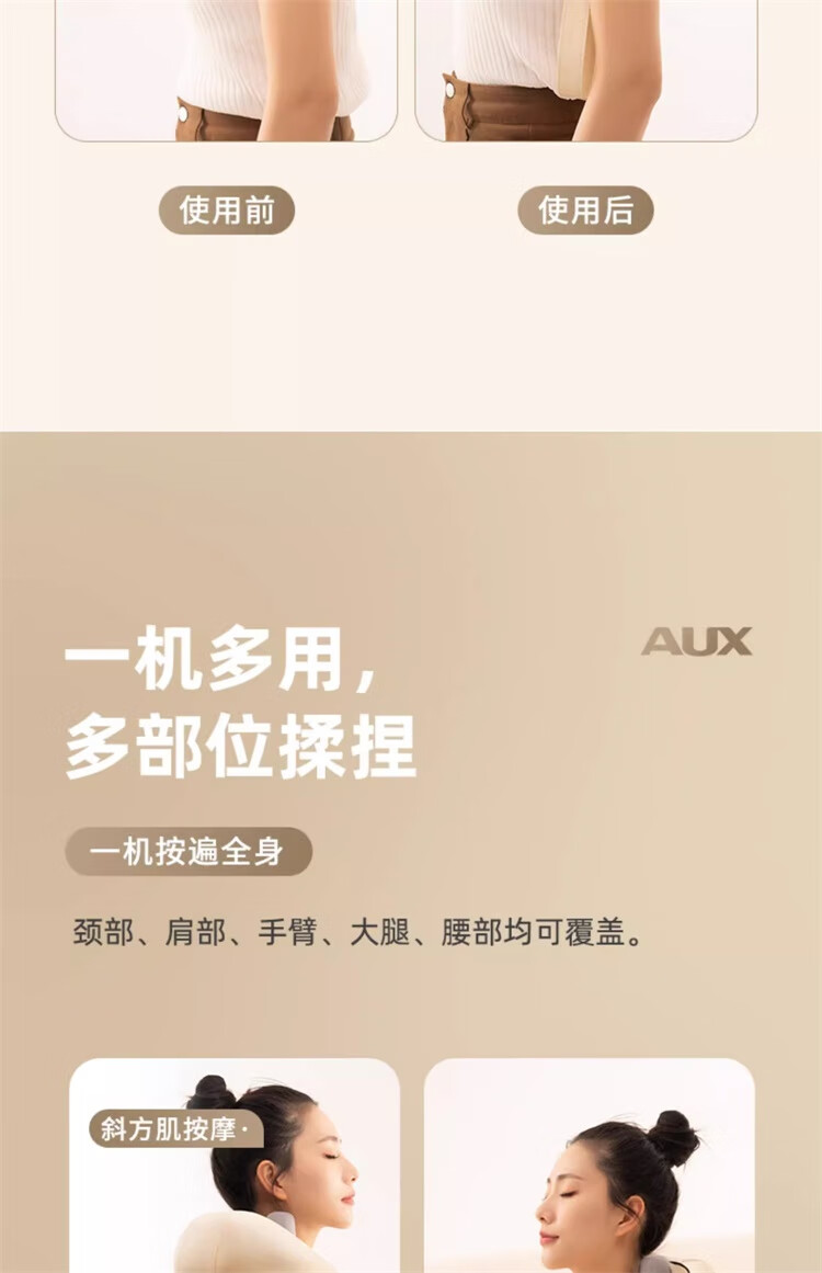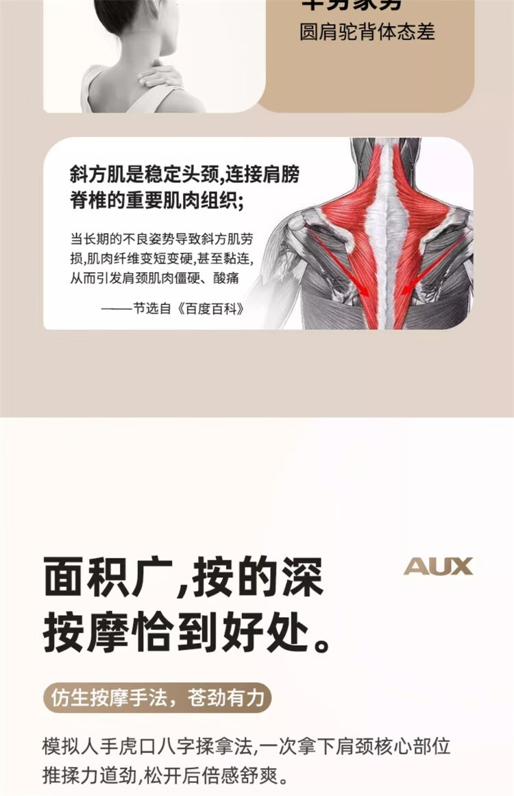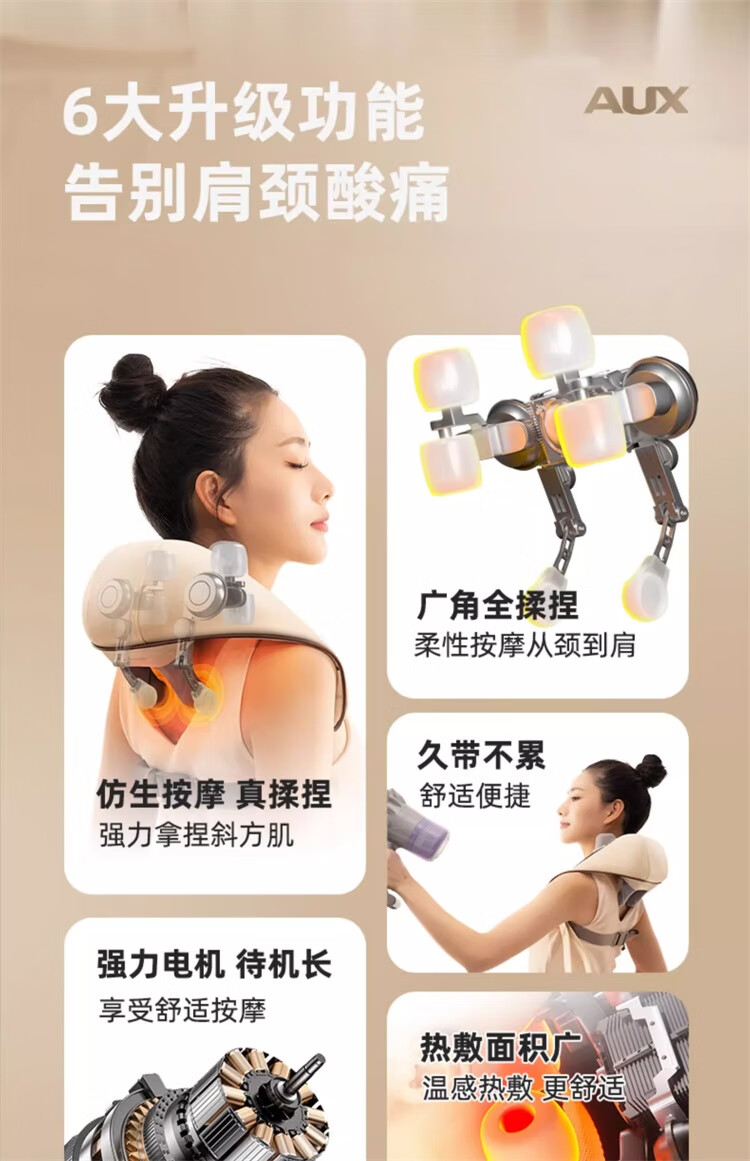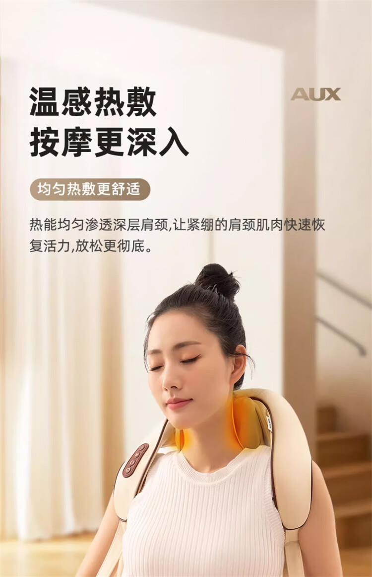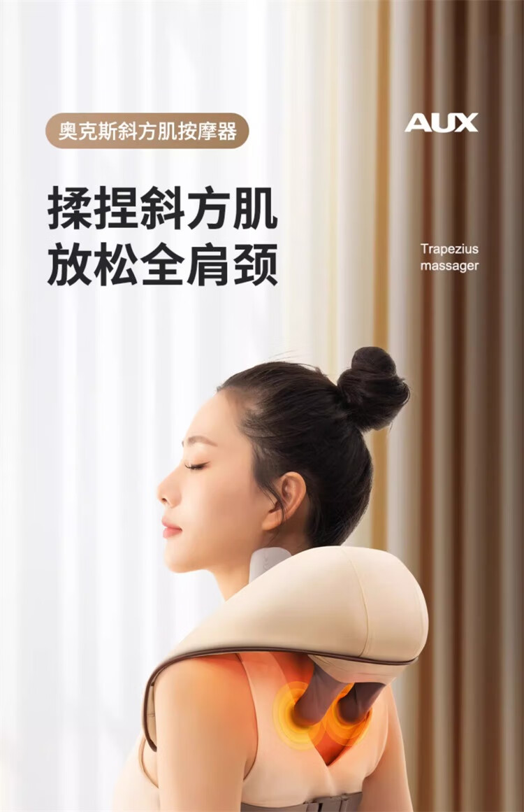 奥克斯颈椎肩颈按摩器肩颈按摩仪颈部按摩披肩脖子小腿肩颈腰背部斜方肌充电热敷生日礼物实用送妈妈礼品 顶配卡色【8头按摩+智能定时+红光热敷+力度升级】
