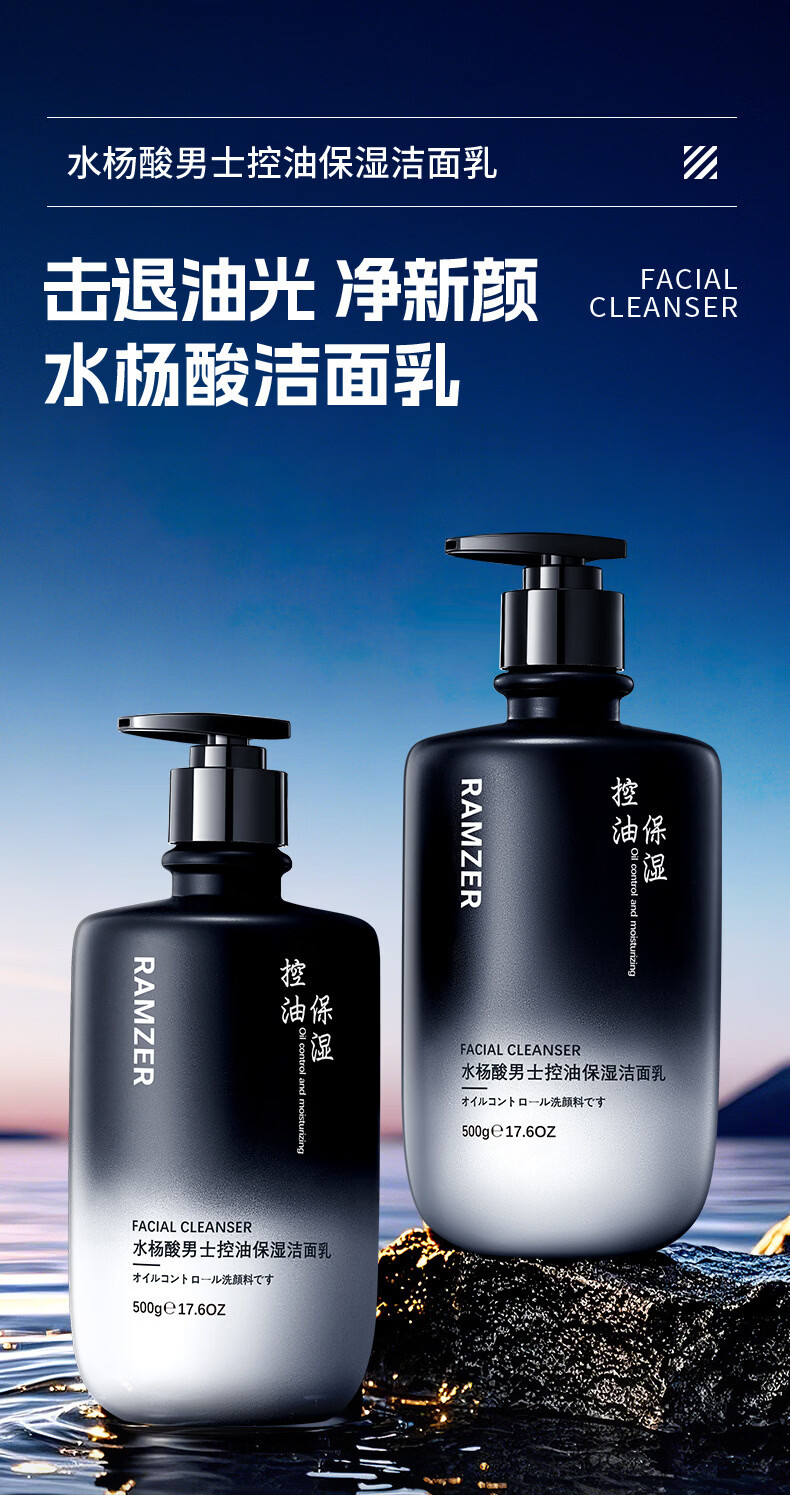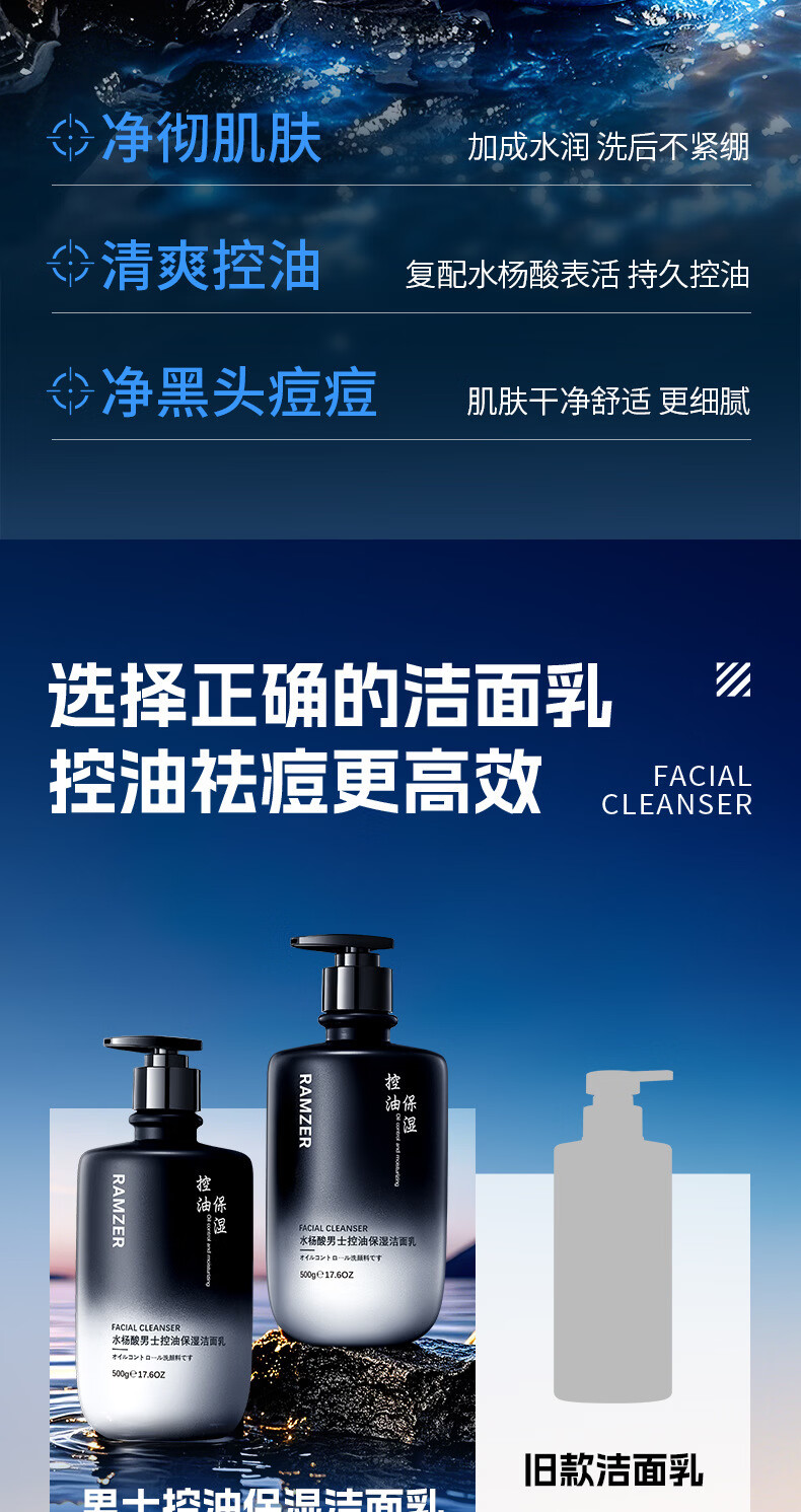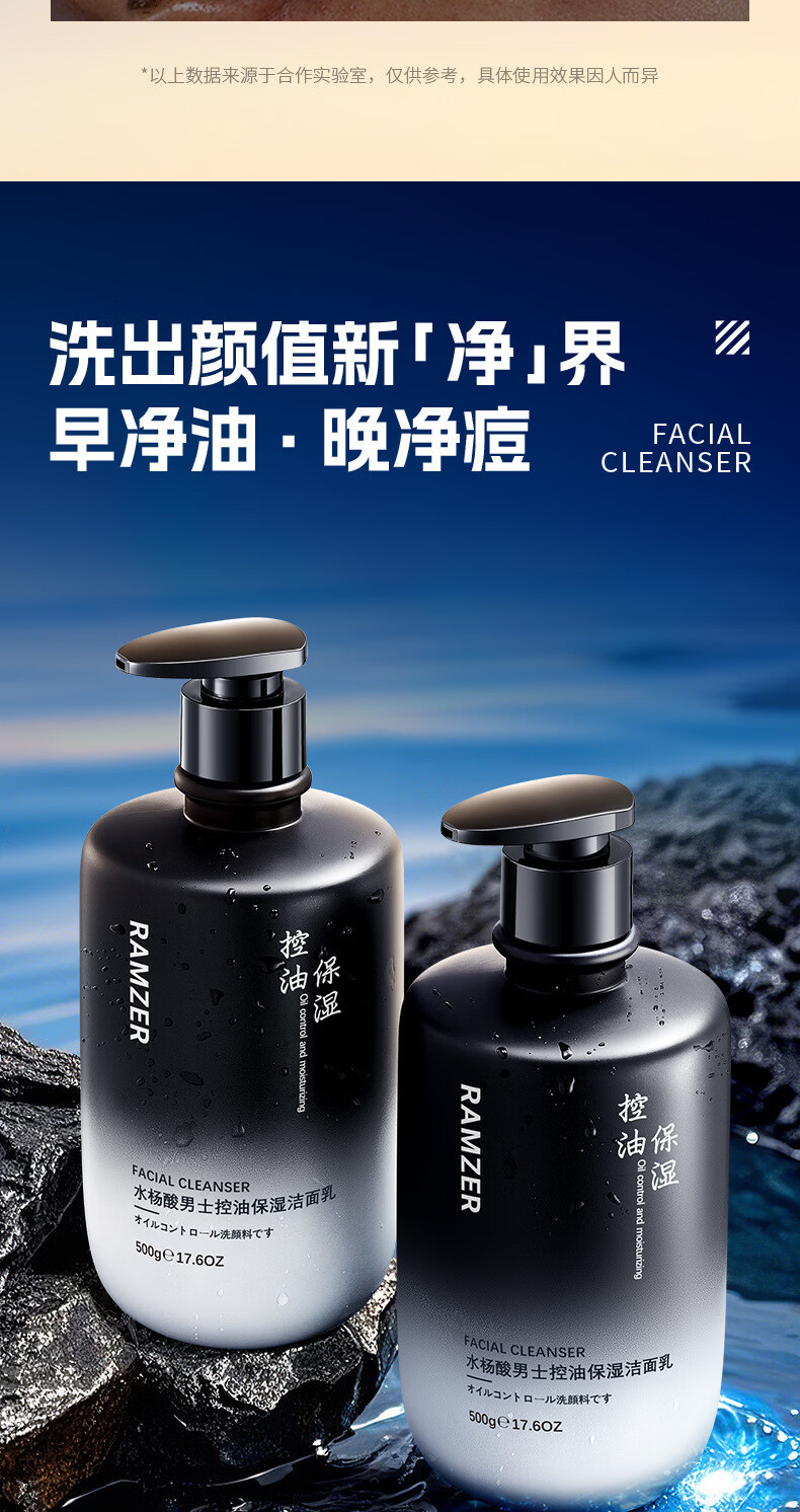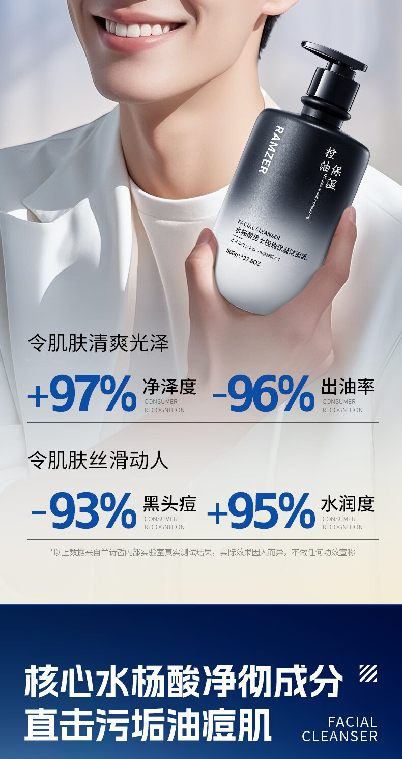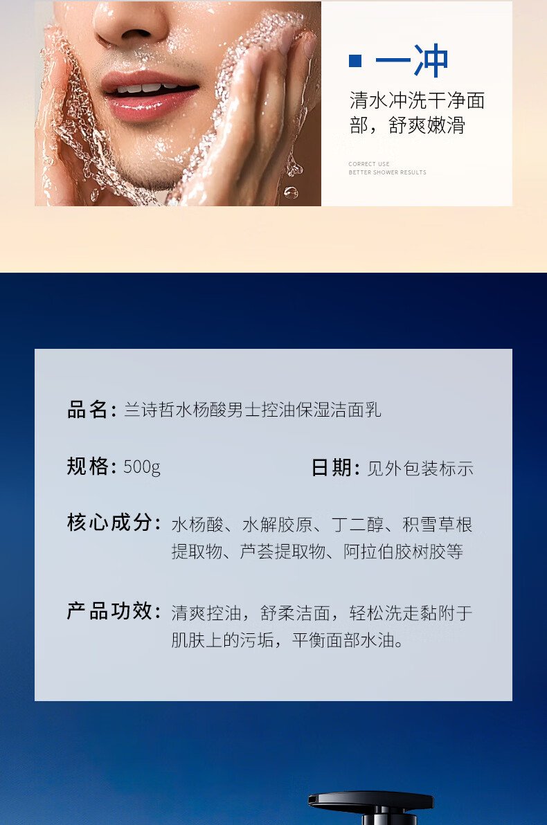 兰诗哲水杨酸男士控油保湿洁面乳补水滋润保湿深层清洁洗面奶 洁面乳500g