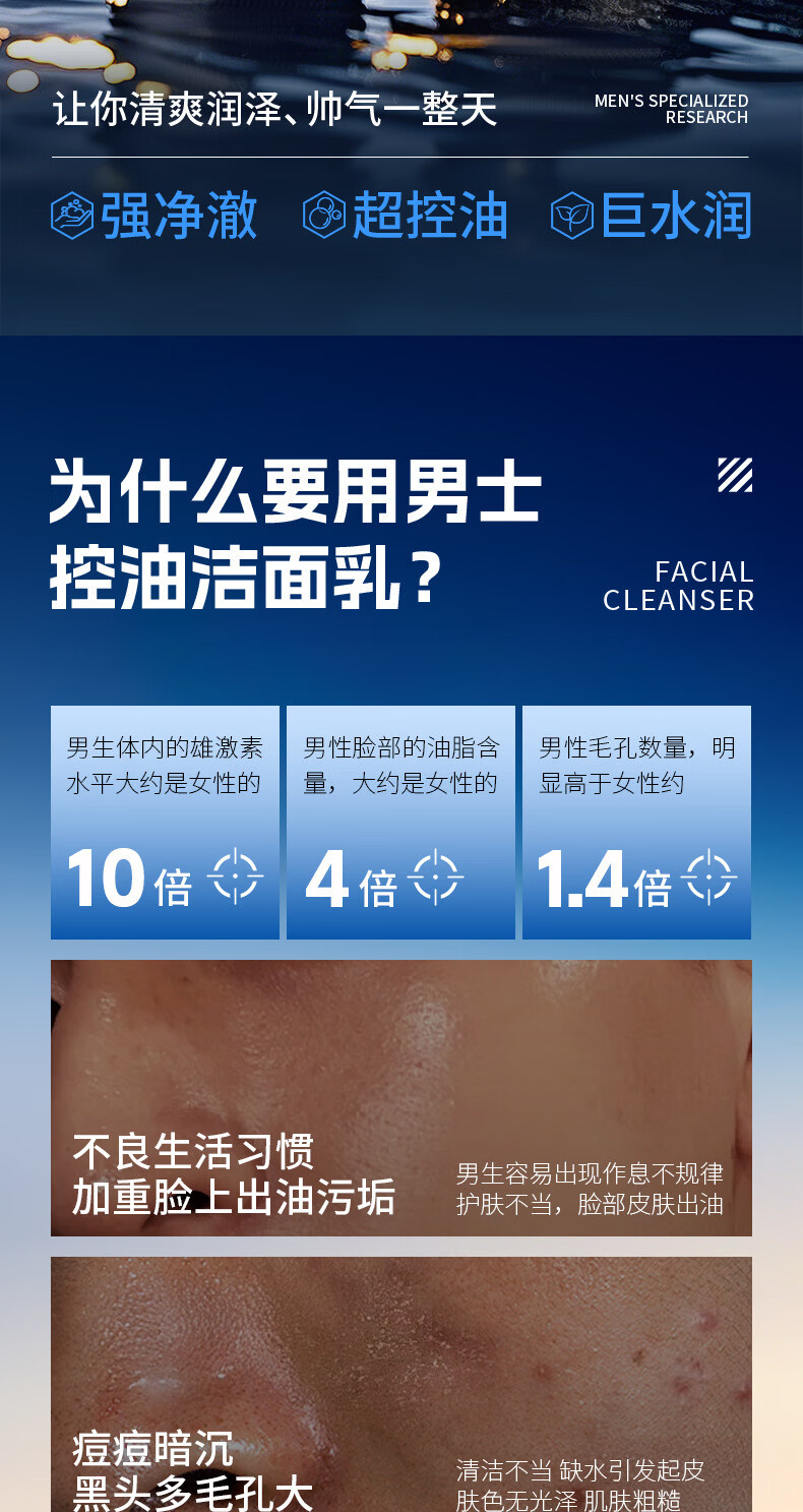 DreamtimesK2男士护肤洁面乳控油洗面奶控油祛痘深层清洁去黑头除螨洗面奶