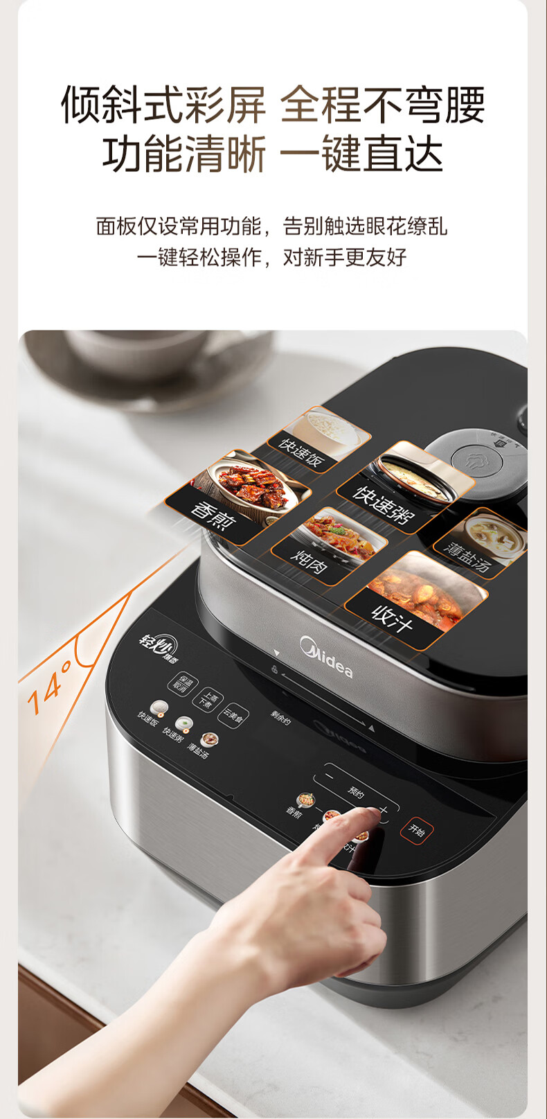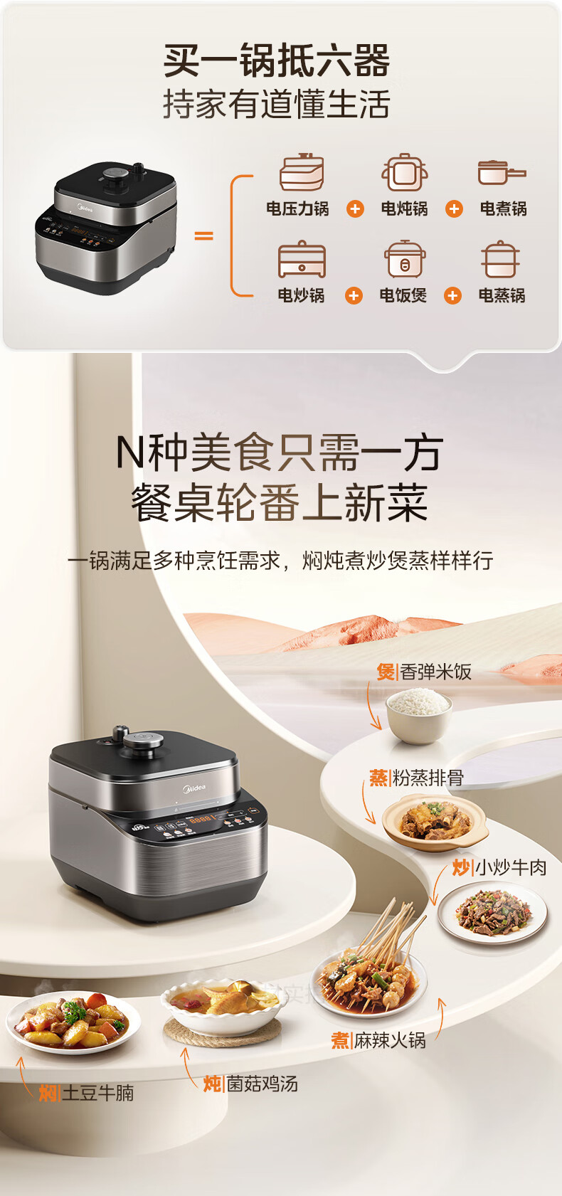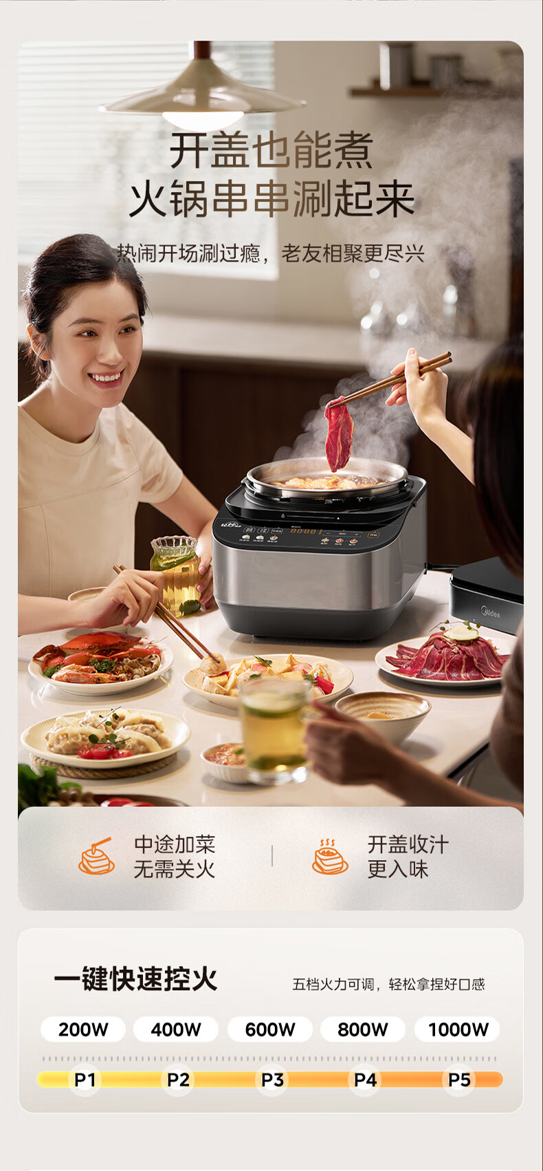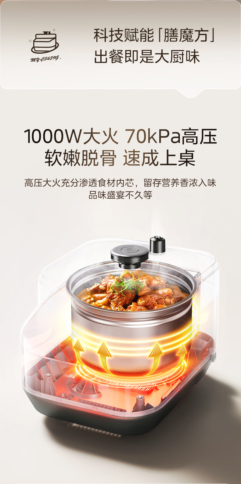 美的(Midea)电压力锅家用0涂层不锈钢精钢双胆多功能排气智能高压锅5L大米煮粥锅电饭煲 MY-C5639G 【0涂层钢胆+圆灶釜】5升 2-9人享 5L