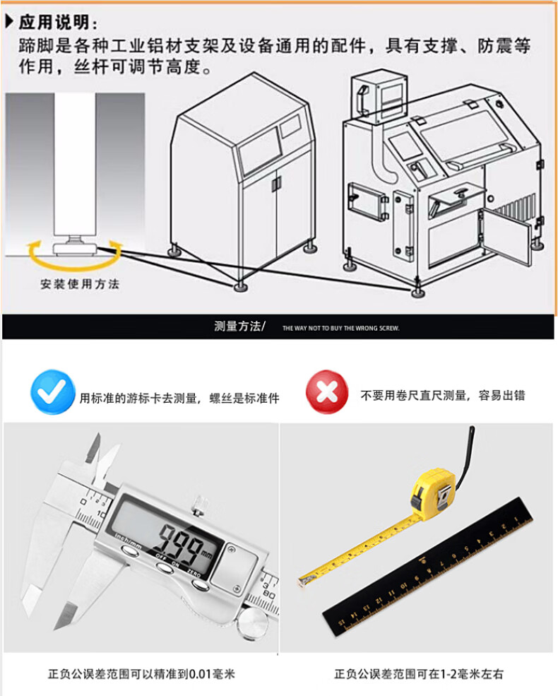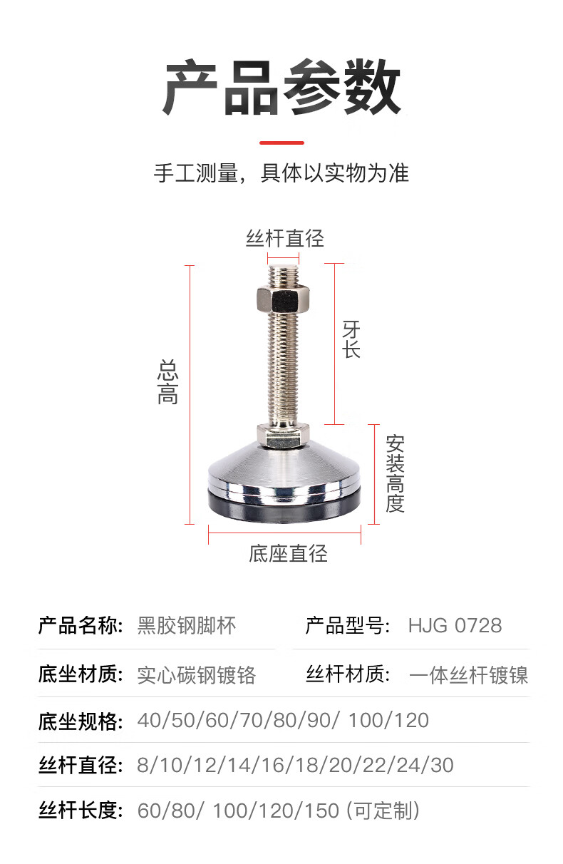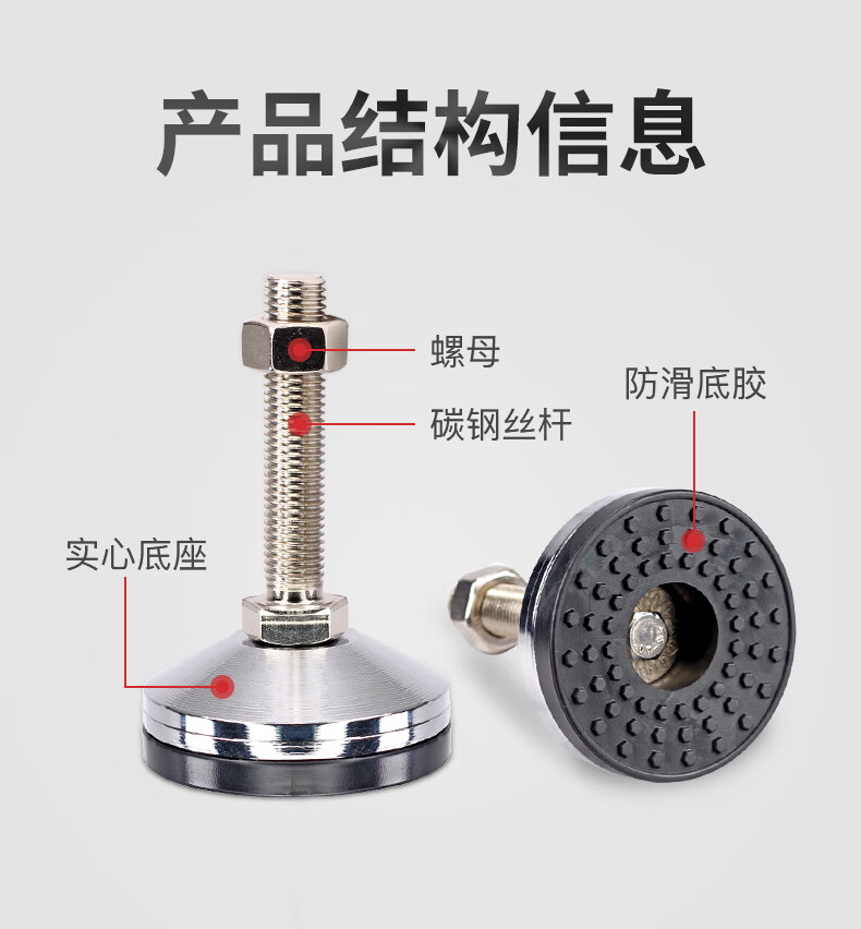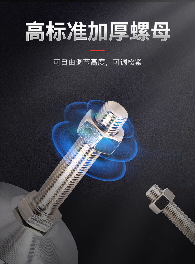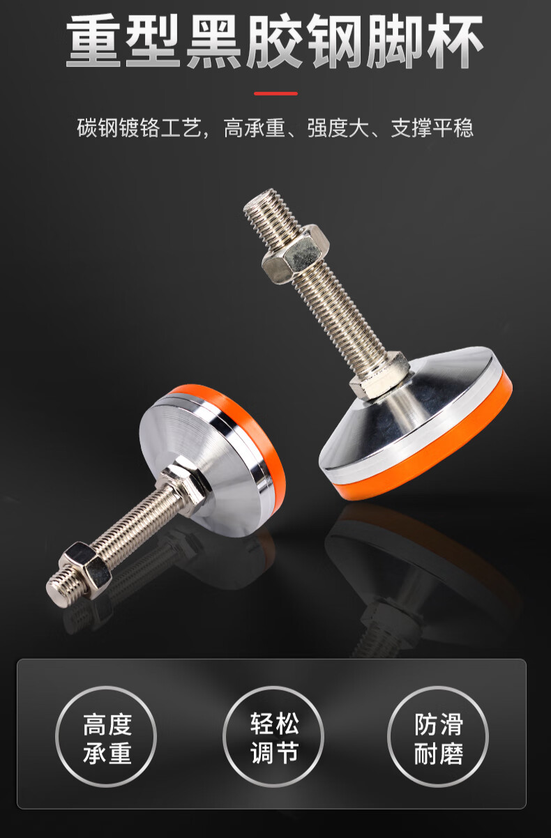 坤坦支撑脚杯防滑防震地脚蹄脚可调节螺丝调节脚调平重型设备底脚 黑胶钢无孔100*M20*150