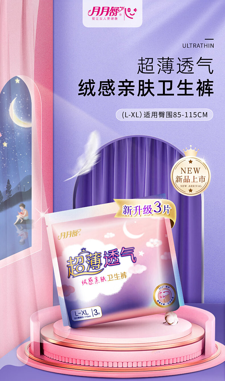 月月舒(yueyueshu)卫生巾安睡裤 产妇大码夜用安心裤 女士拉拉裤 成人姨妈裤 L-XL码 15条 100-180斤