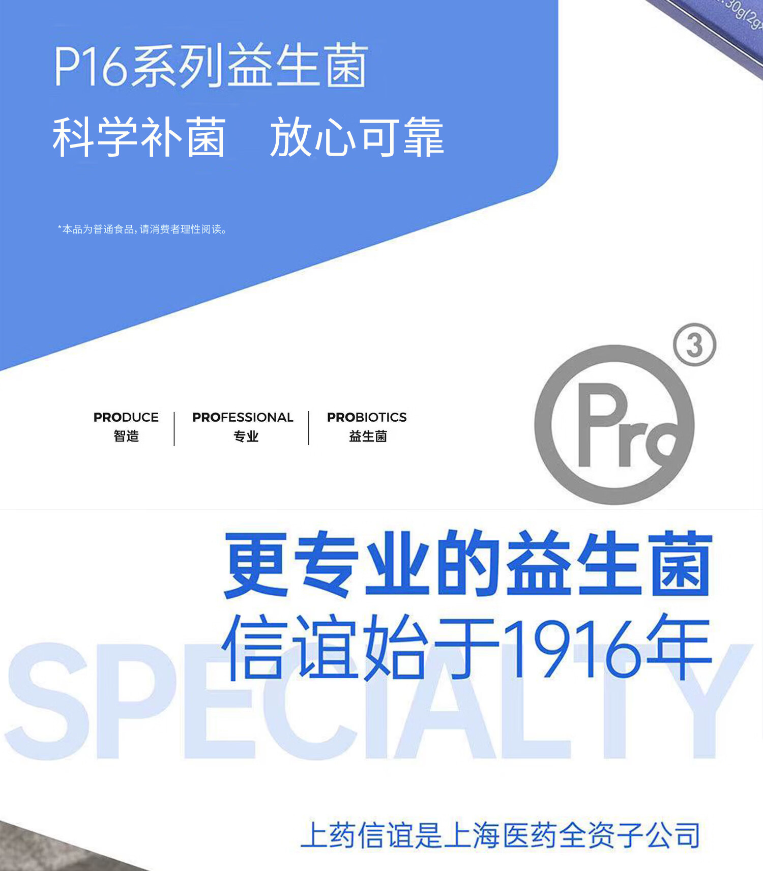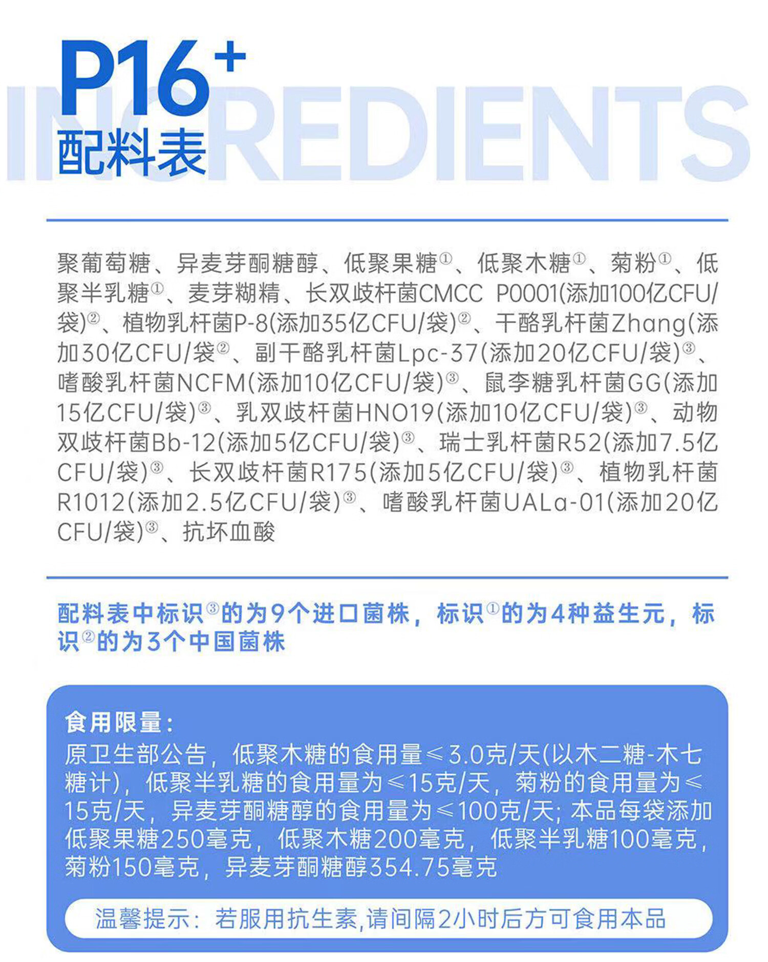 信谊P16+肠道益生菌成人青年儿童养护男女活性益生菌上海医药旗下官旗 皮肤益生菌尝试期 2g*20袋
