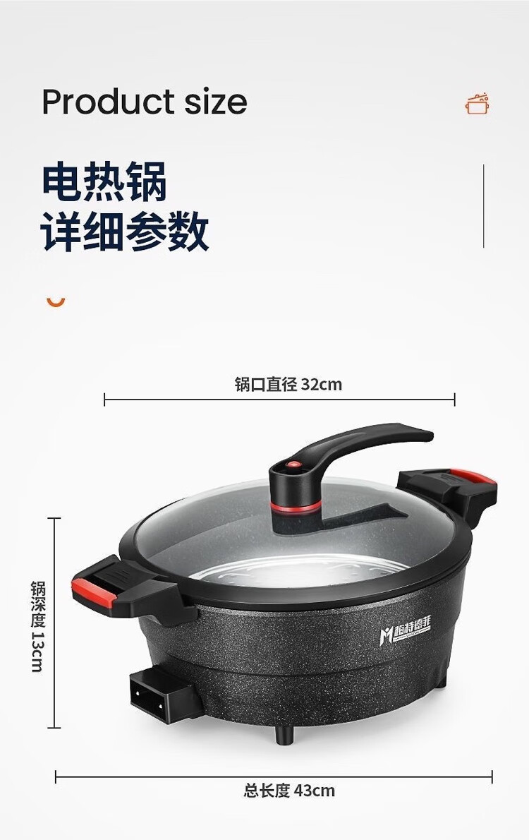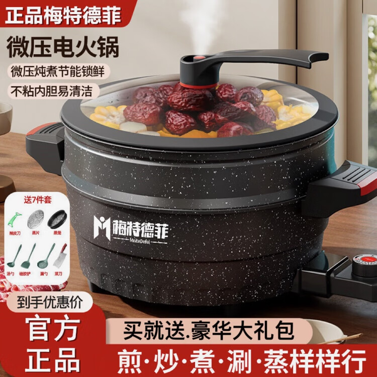 梅特德菲多功能电子锅微压锅不粘锅插电炒锅蒸煮炖涮火锅烤一体锅烙饼炖汤 30厘米6升(礼品全送)1-5人用 30cm