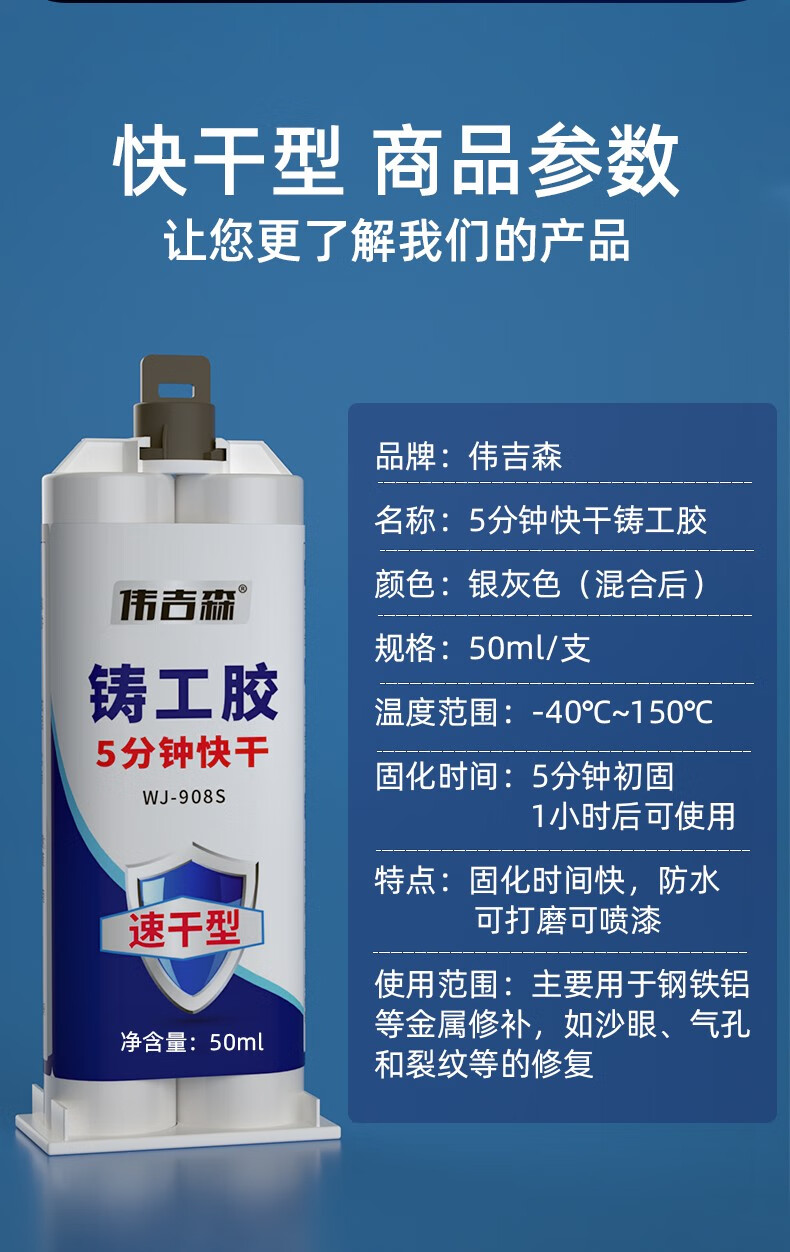 伟吉森(WEIJISEN)速干铸工胶粘金属暖气片油箱塑料水管漏水补漏神器万能强力焊接剂 伟吉森速干铸工胶