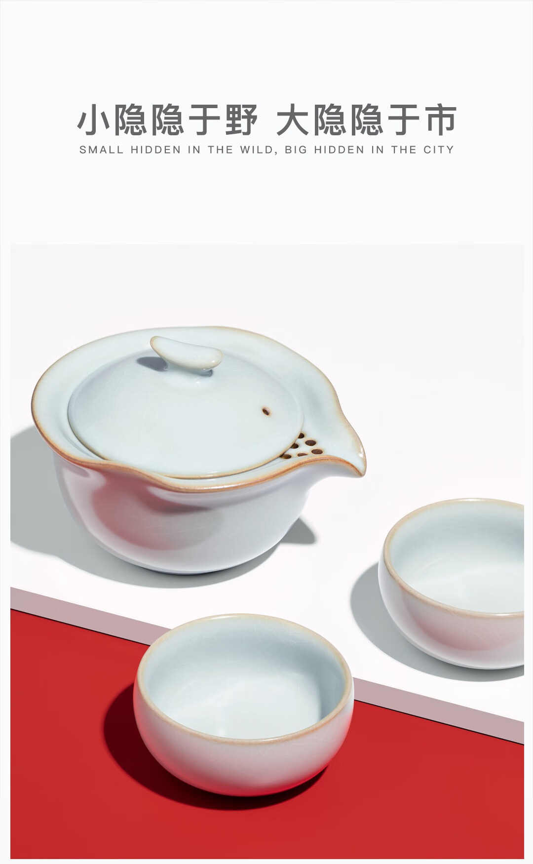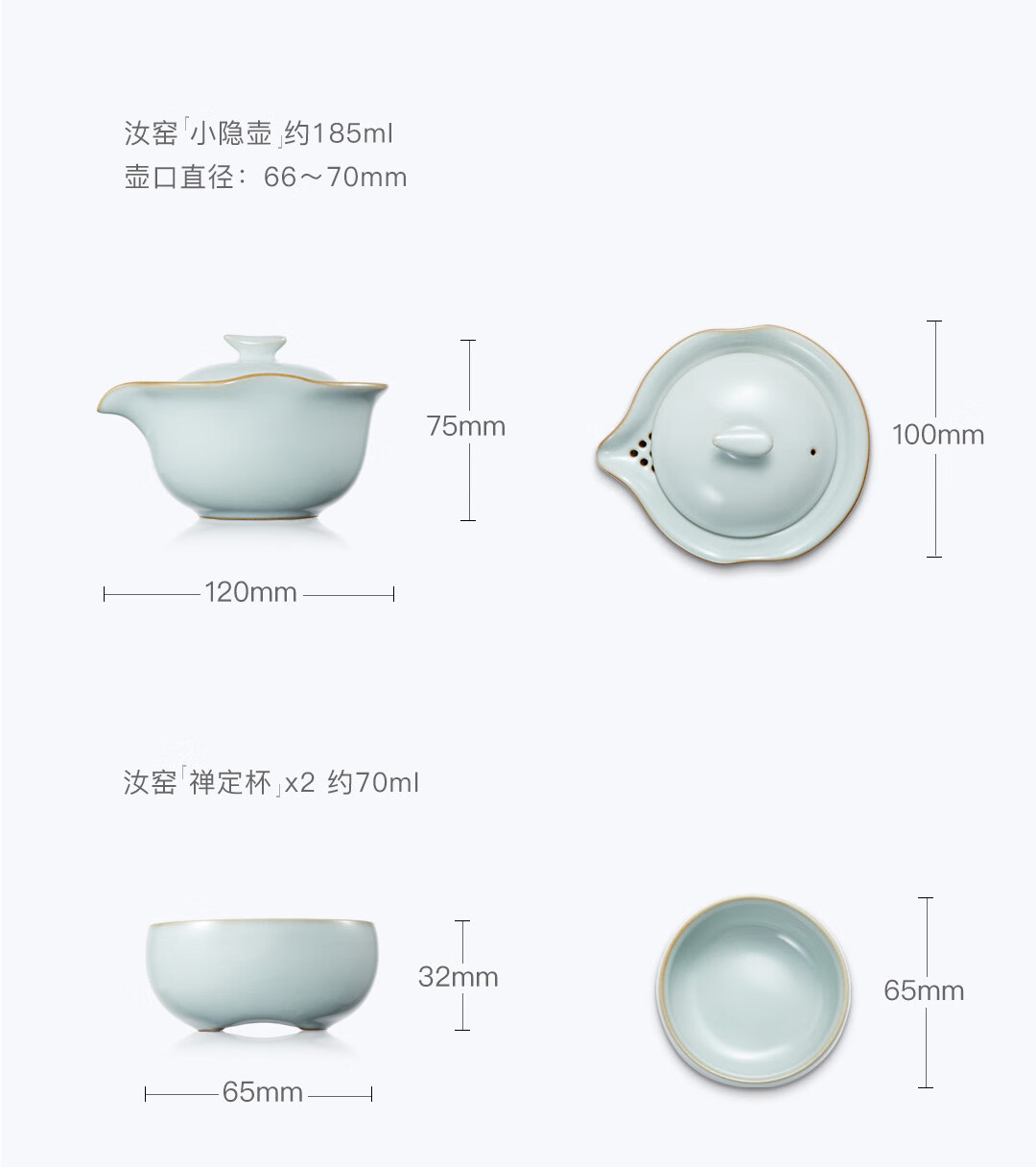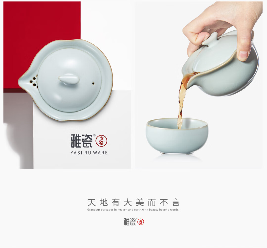 雅瓷汝窑茶具套装手抓壶泡茶壶办公室一壶二杯旅行出差小隐 汝窑小隐茶侧 3件