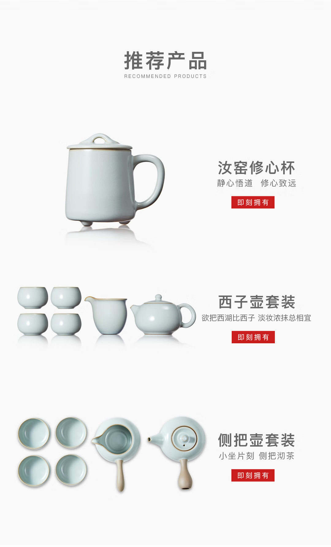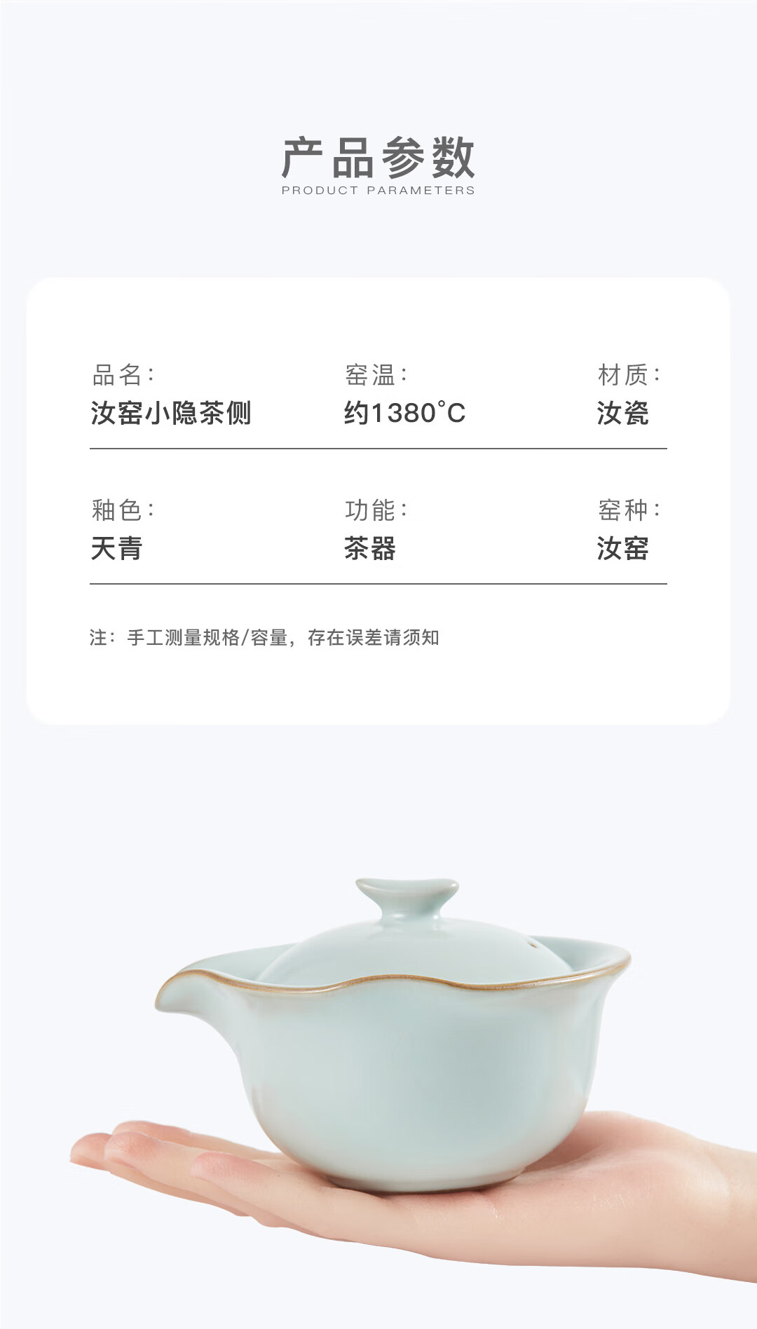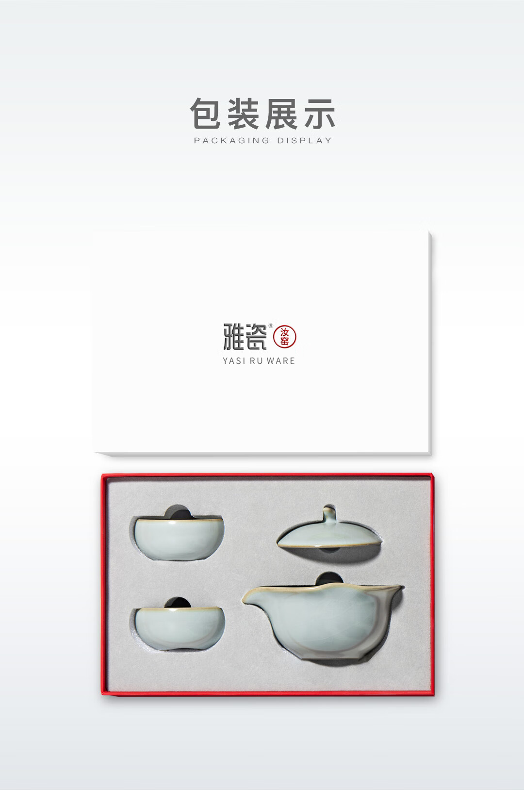 雅瓷汝窑茶具套装手抓壶泡茶壶办公室一壶二杯旅行出差小隐 汝窑小隐茶侧 3件