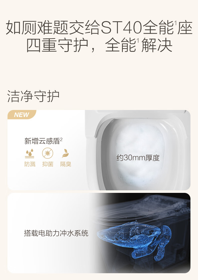 科勒(KOHLER)轻智能坐便器ST40L全能座马桶泡沫盾脚感触控自动翻盖坑距可调 ST40轻智能(科勒白)