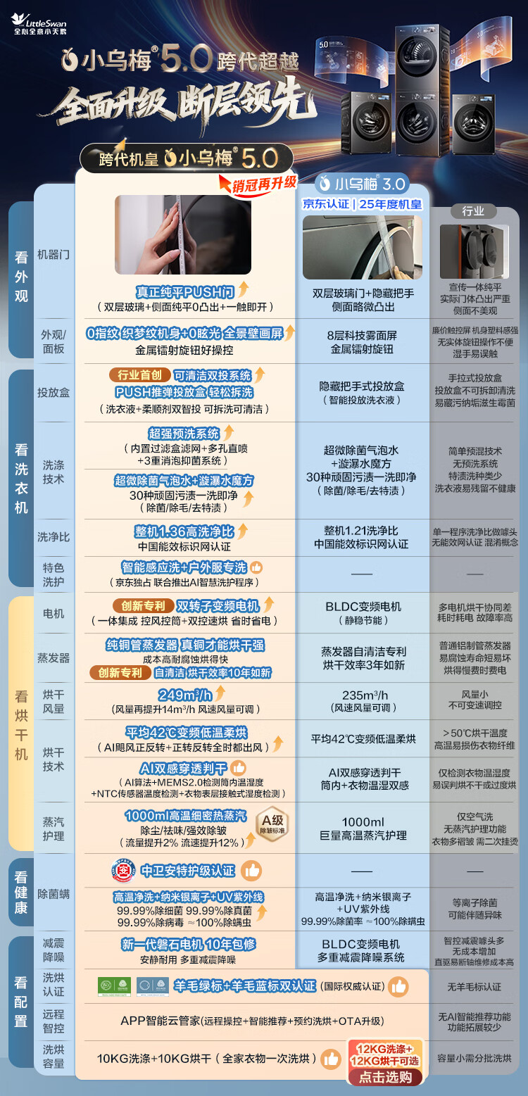 小天鹅(LittleSwan)分区双区洗 滚筒洗衣机全自动 13KG懒人洗衣机 TGG13E 5KG上筒 以旧换新国家补贴 京东自营 内衣洗