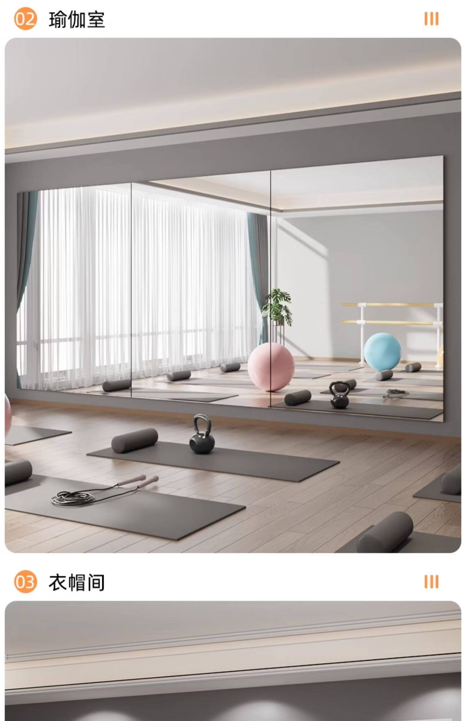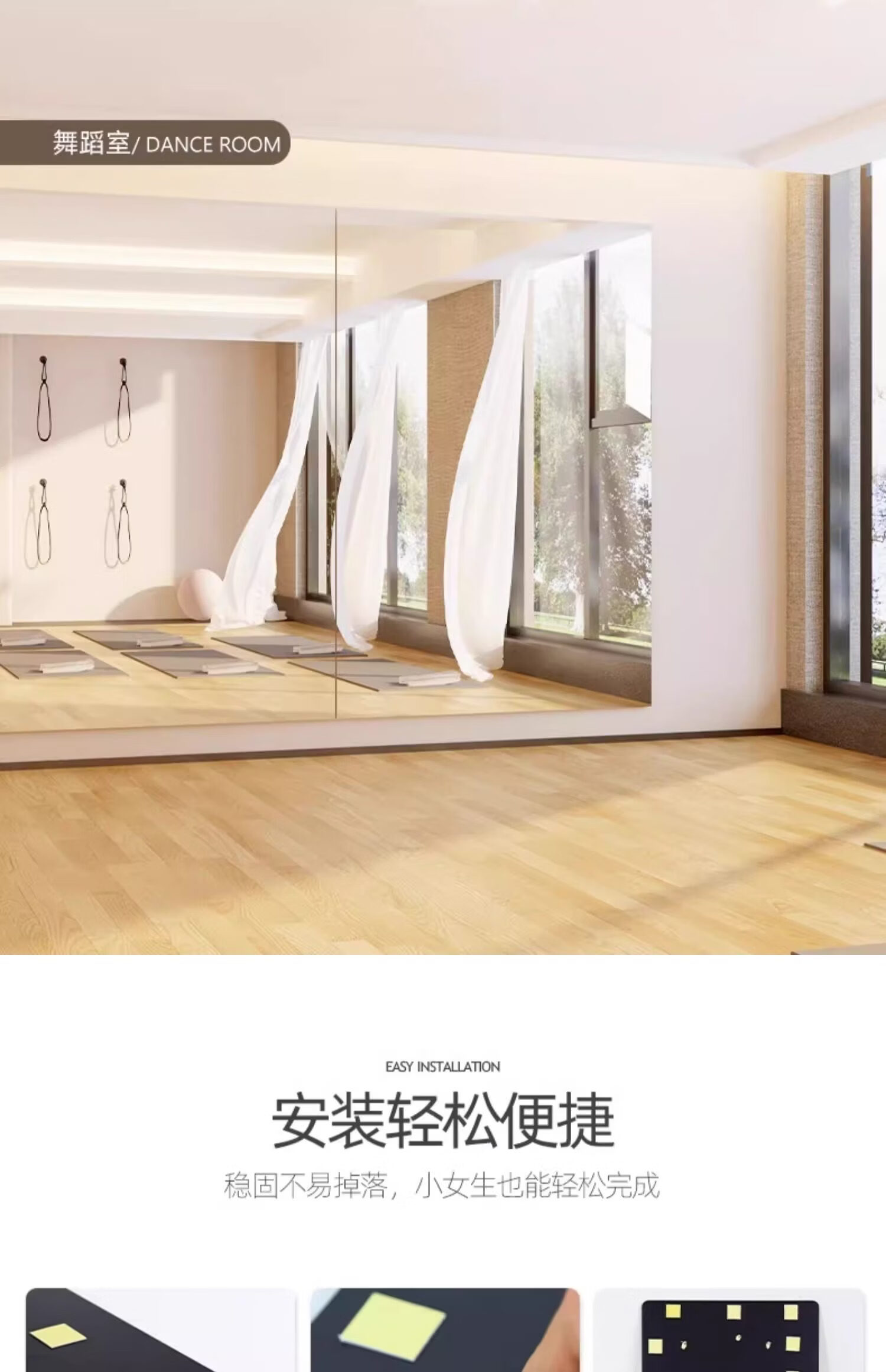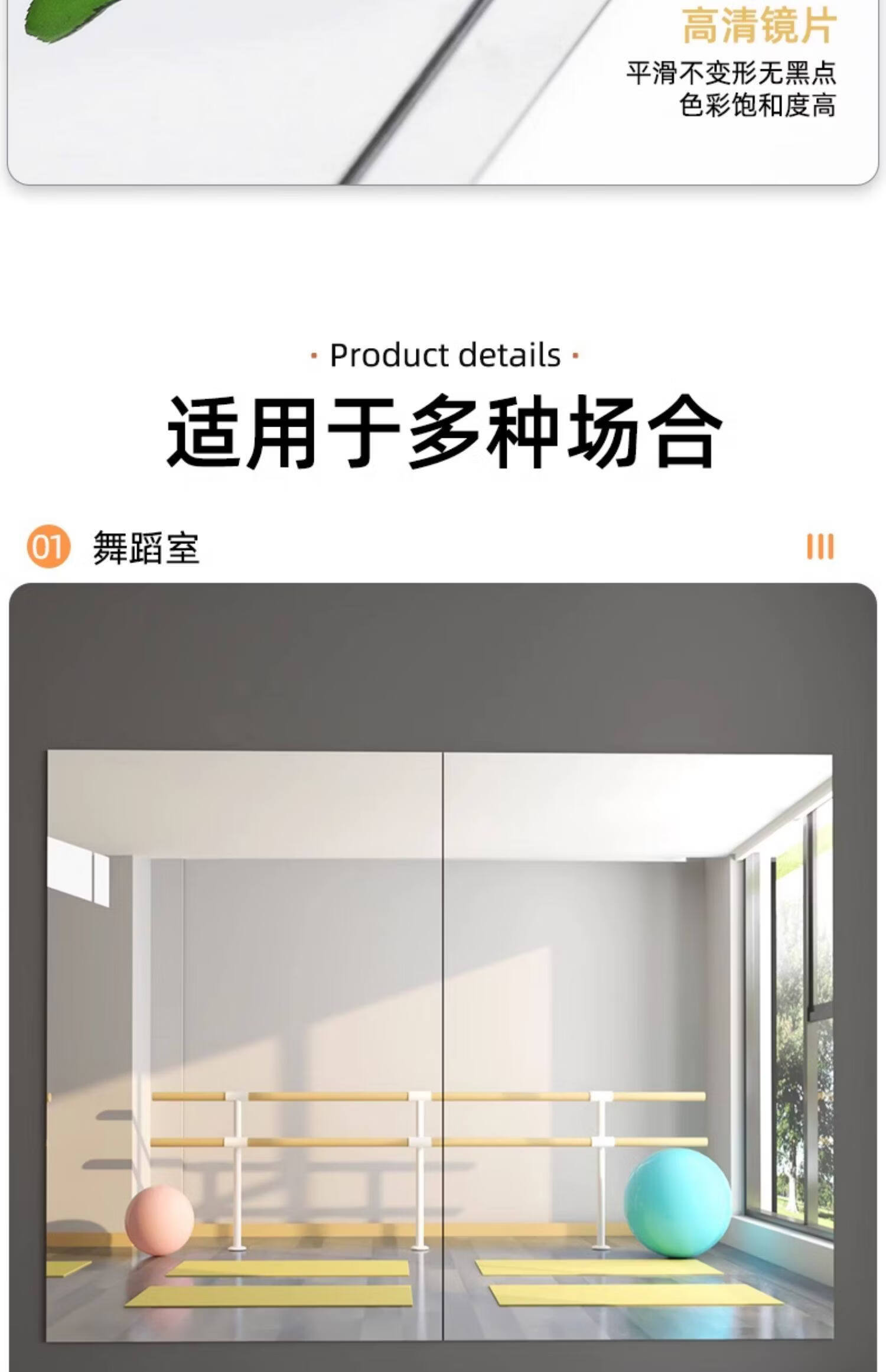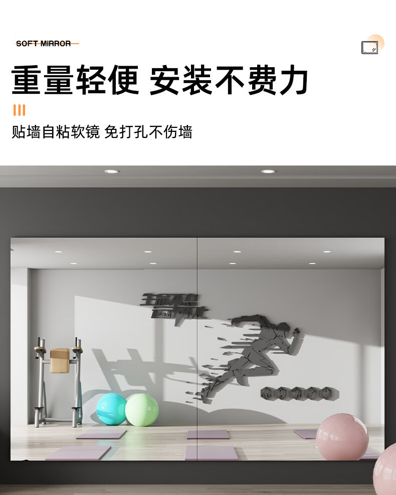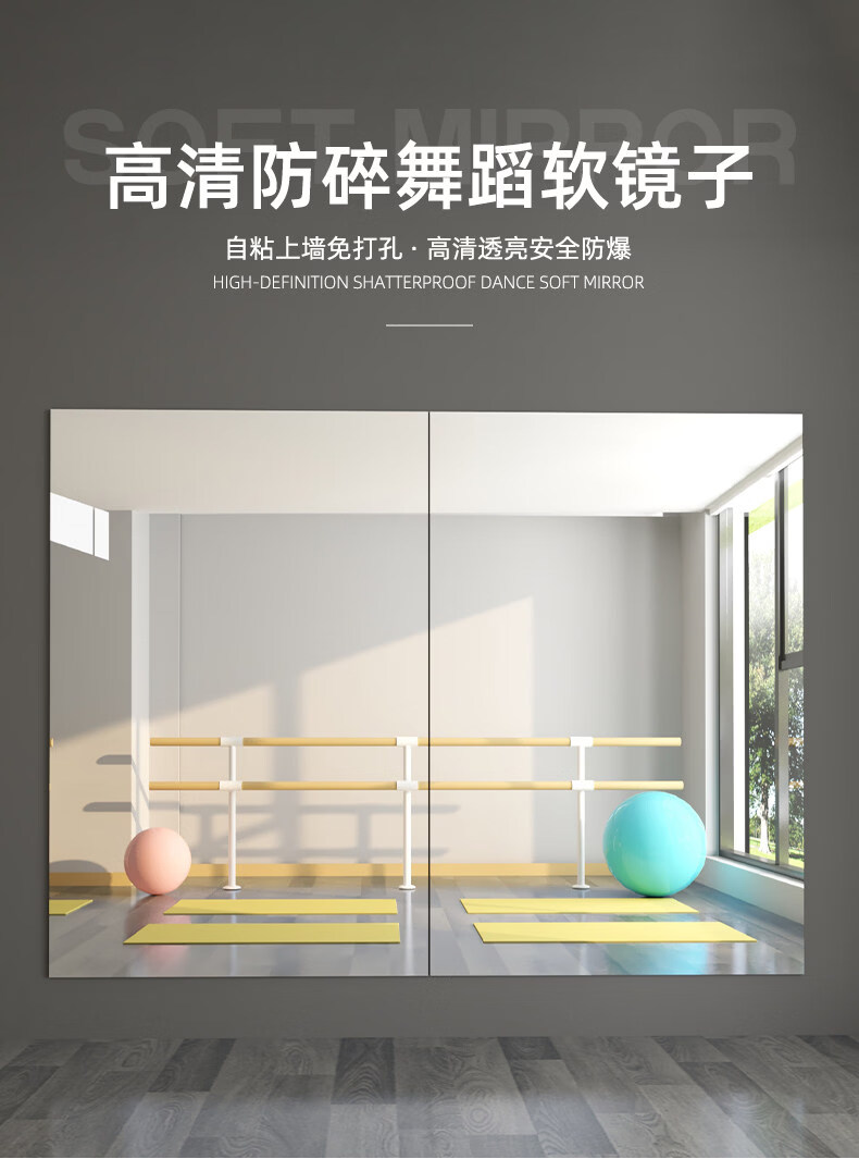 诗元跳舞镜子贴墙自粘舞蹈室镜子墙瑜伽镜家用亚克力软镜子全身穿衣镜 【定制尺寸需联系客服】