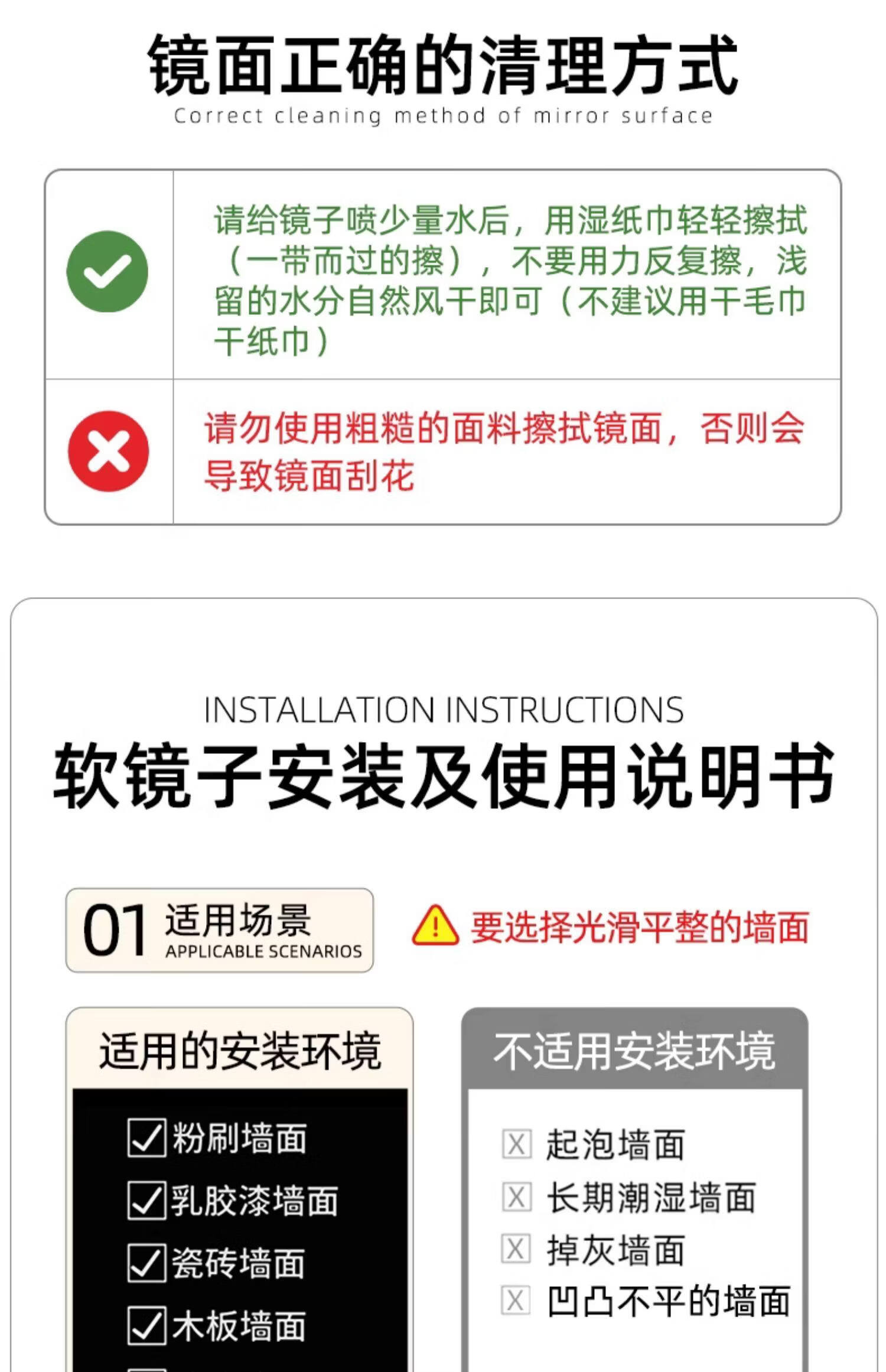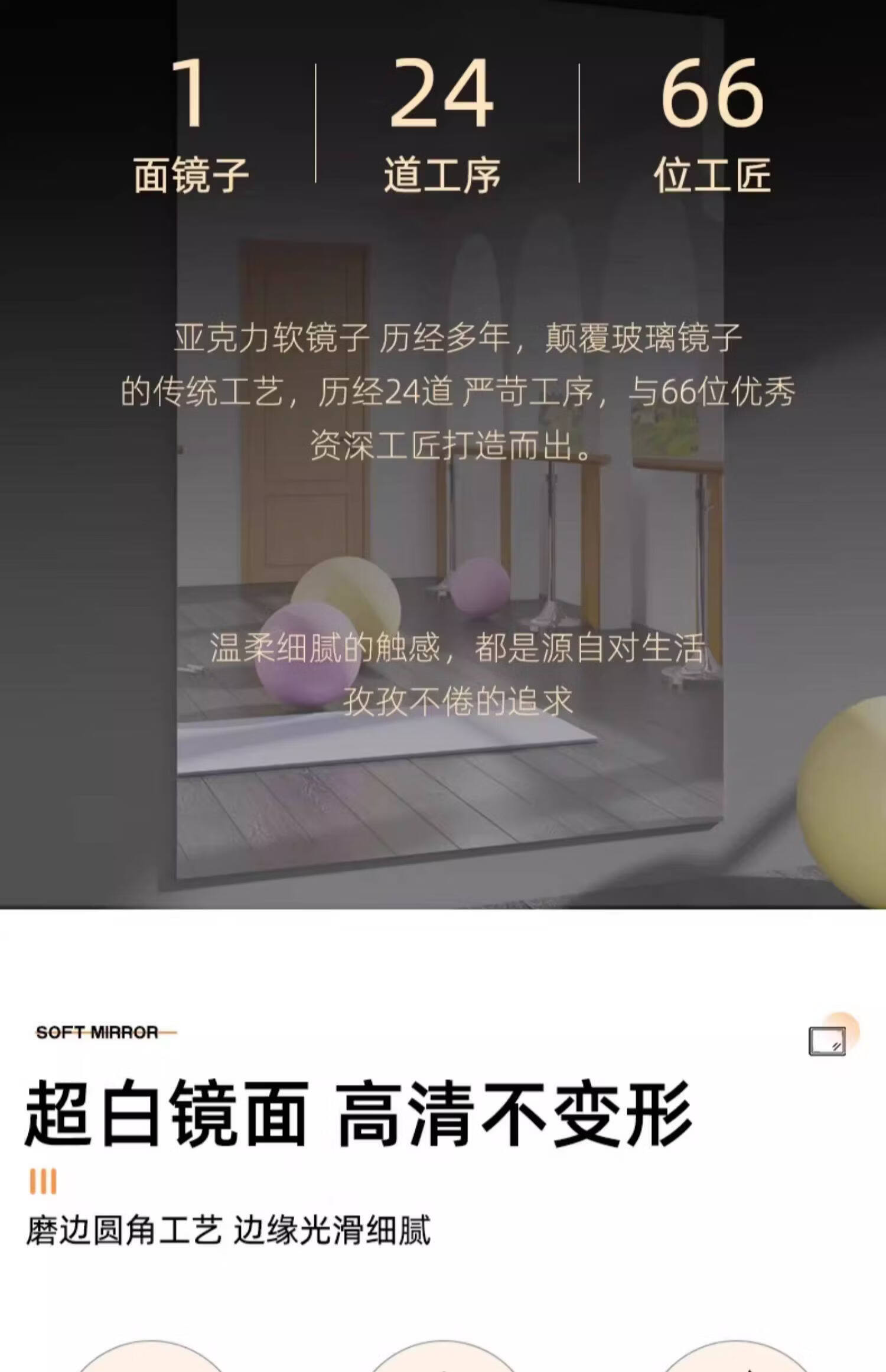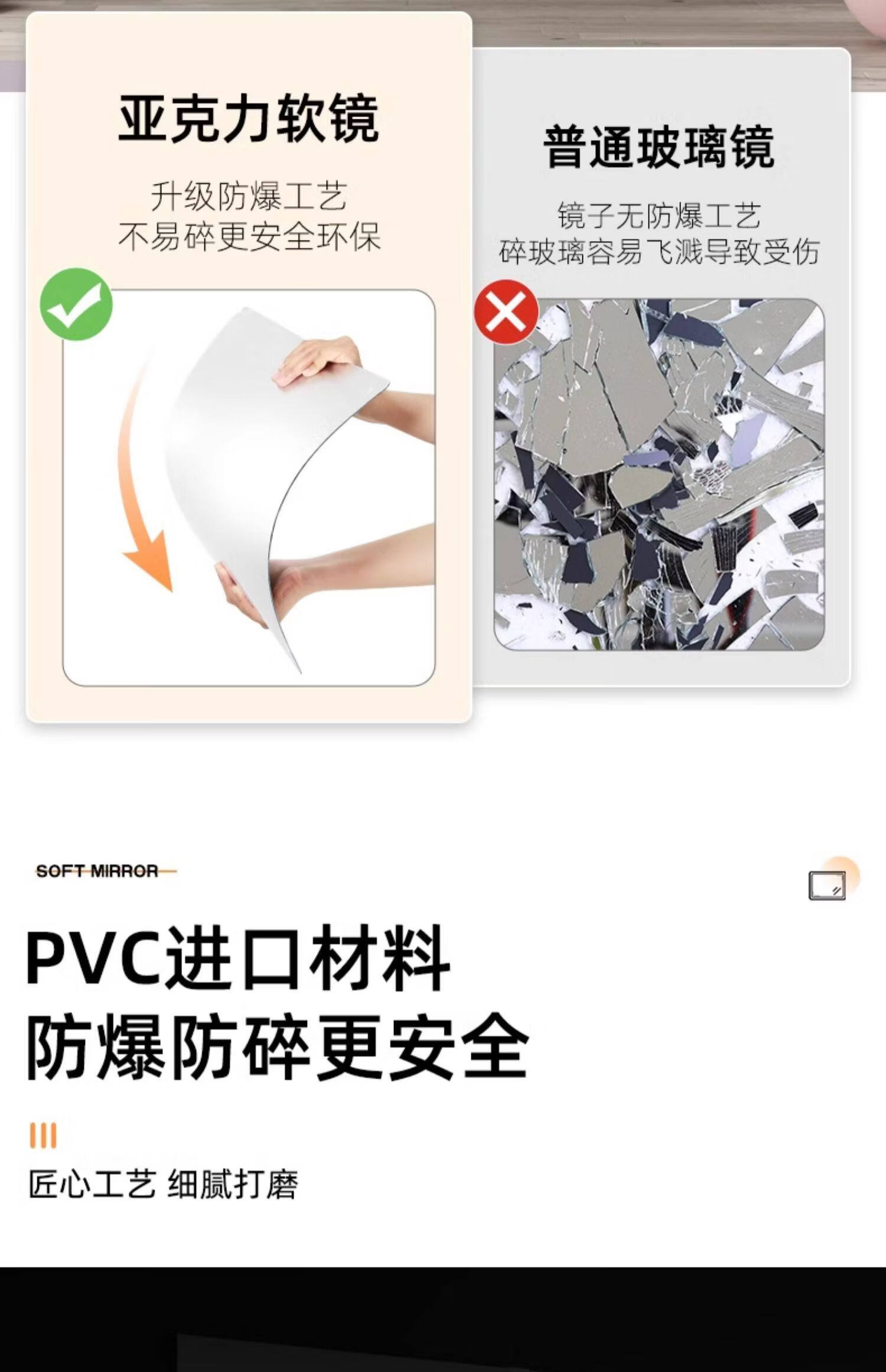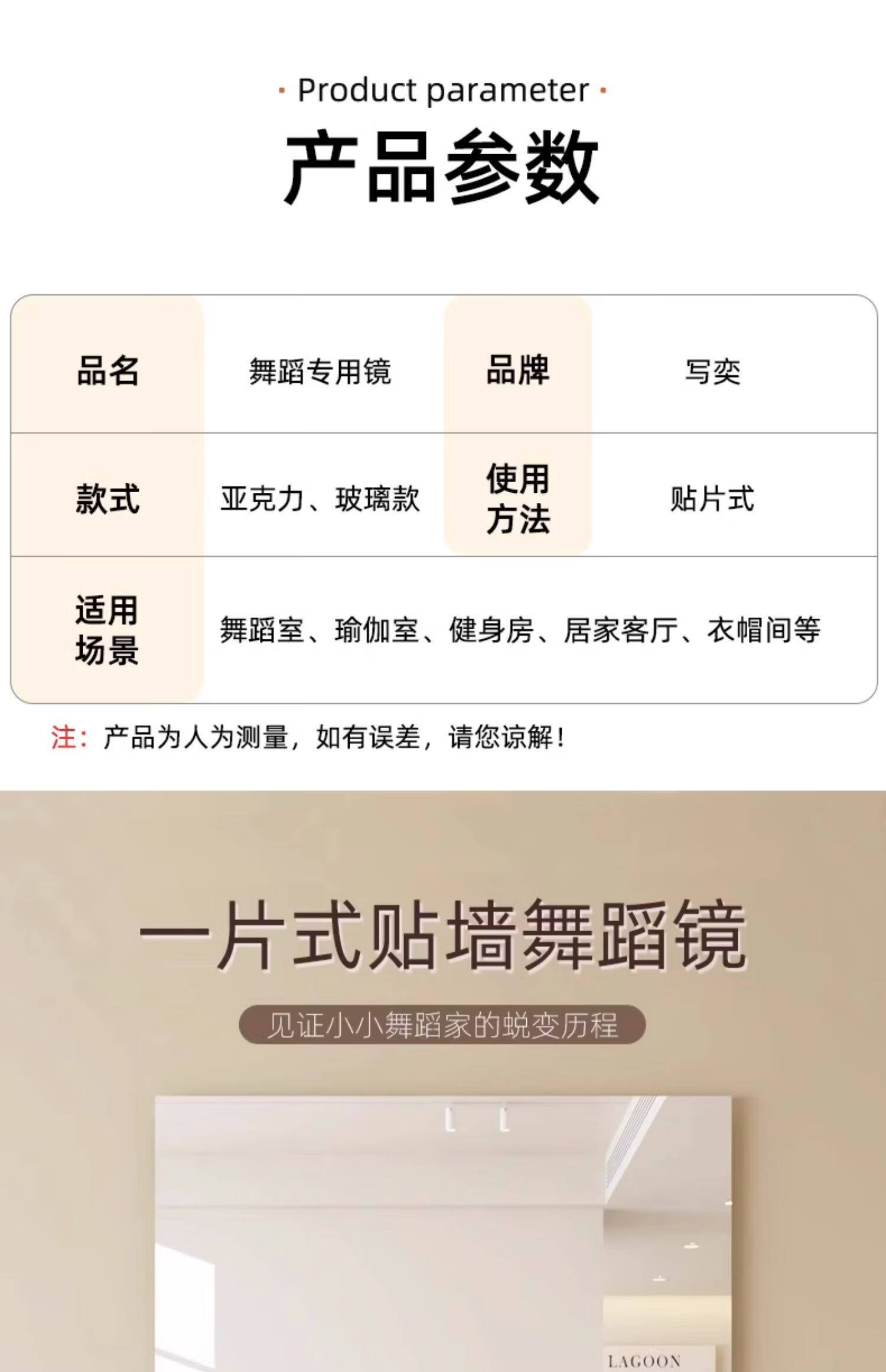 诗元跳舞镜子贴墙自粘舞蹈室镜子墙瑜伽镜家用亚克力软镜子全身穿衣镜 【定制尺寸需联系客服】