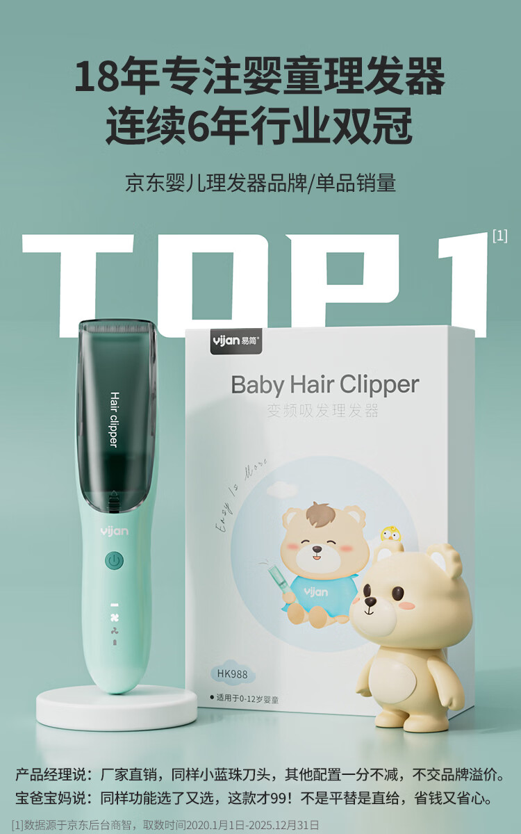 易简(yijan)自动吸发婴儿理发器轻音儿童理发器宝宝剃头器新生儿剪发电推子