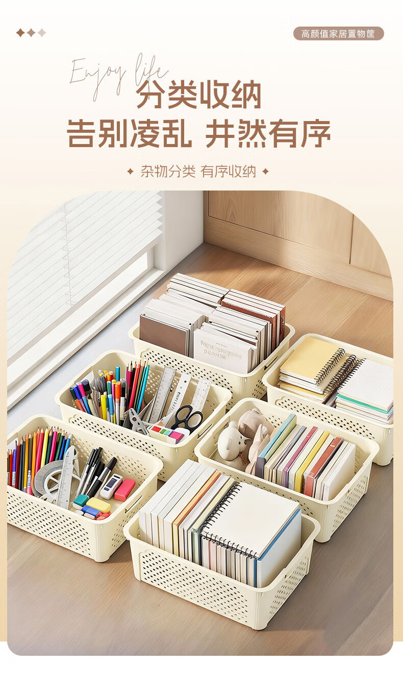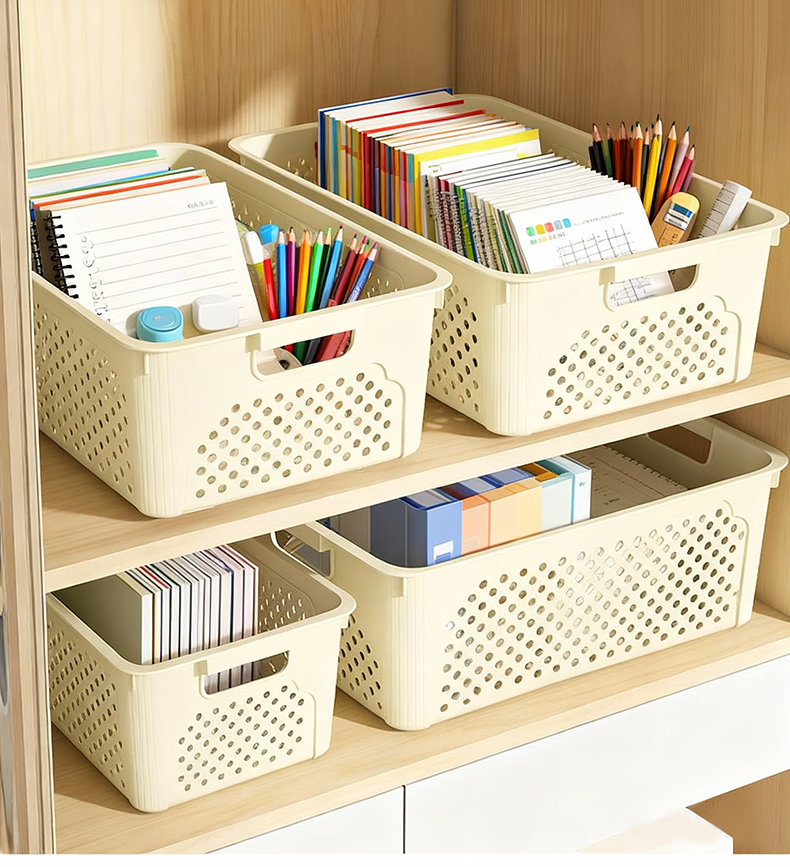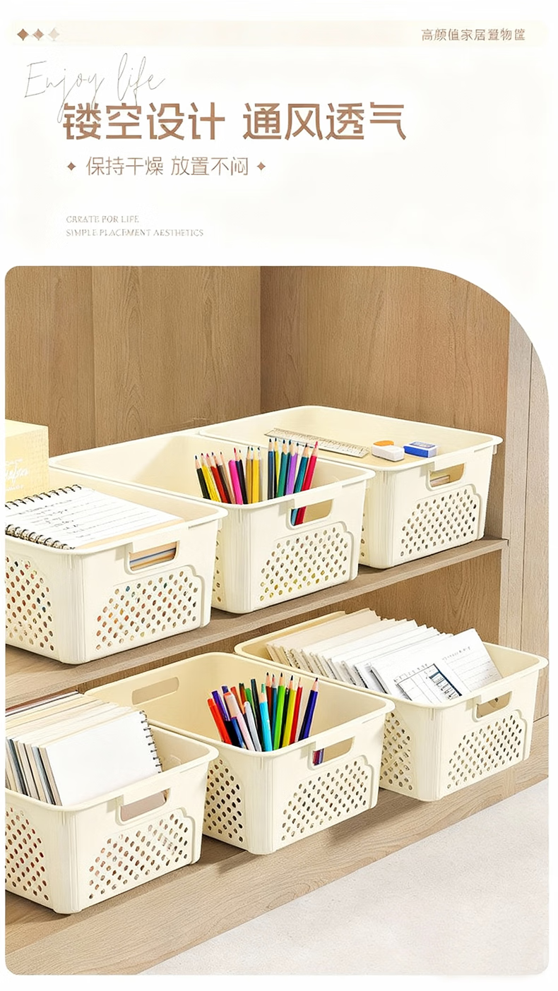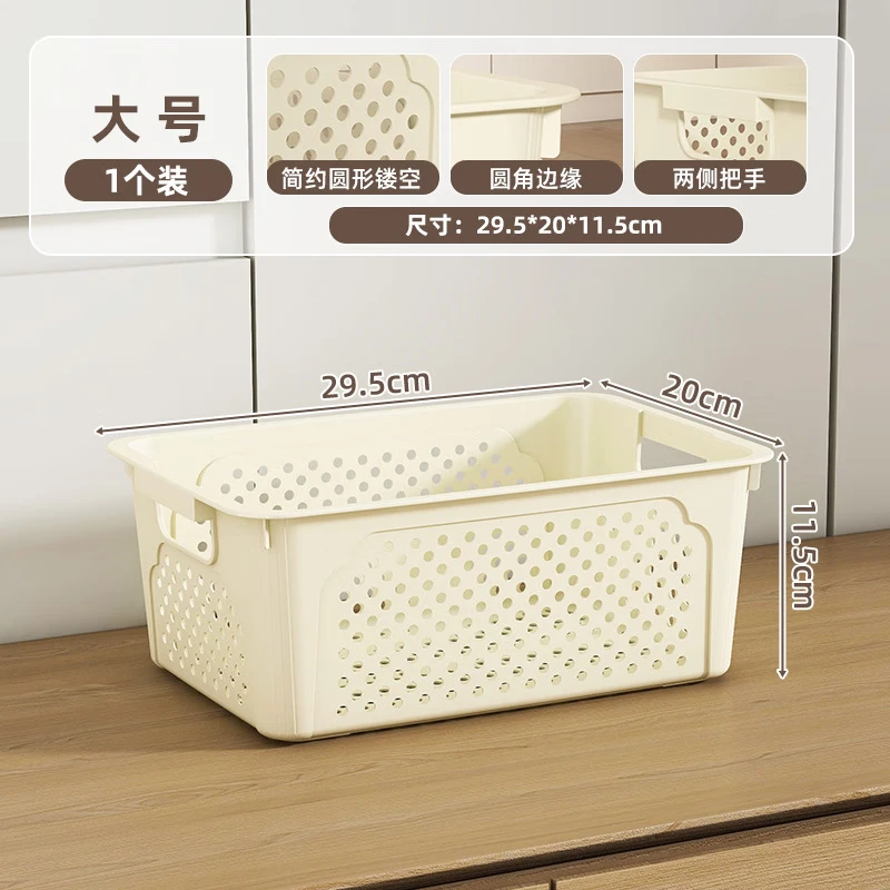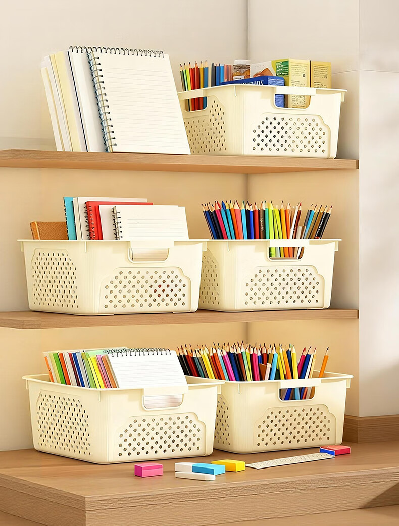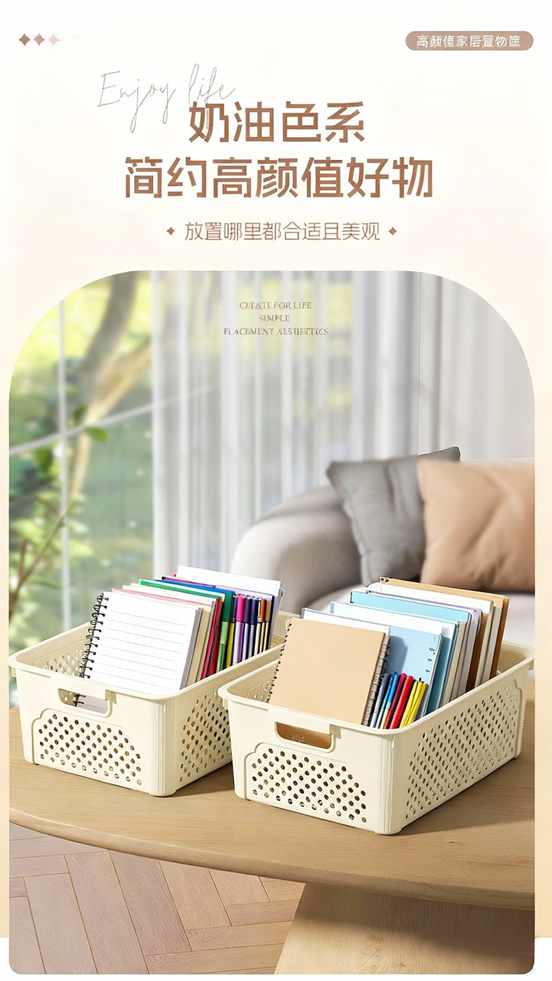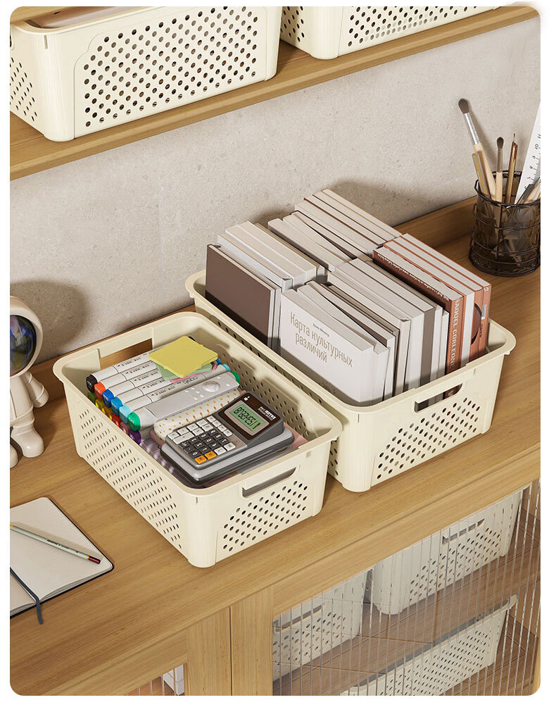 桌面长方形文件筐文具收纳盒塑料幼儿园收纳管理用品 1个装-奶油色大号 活动款