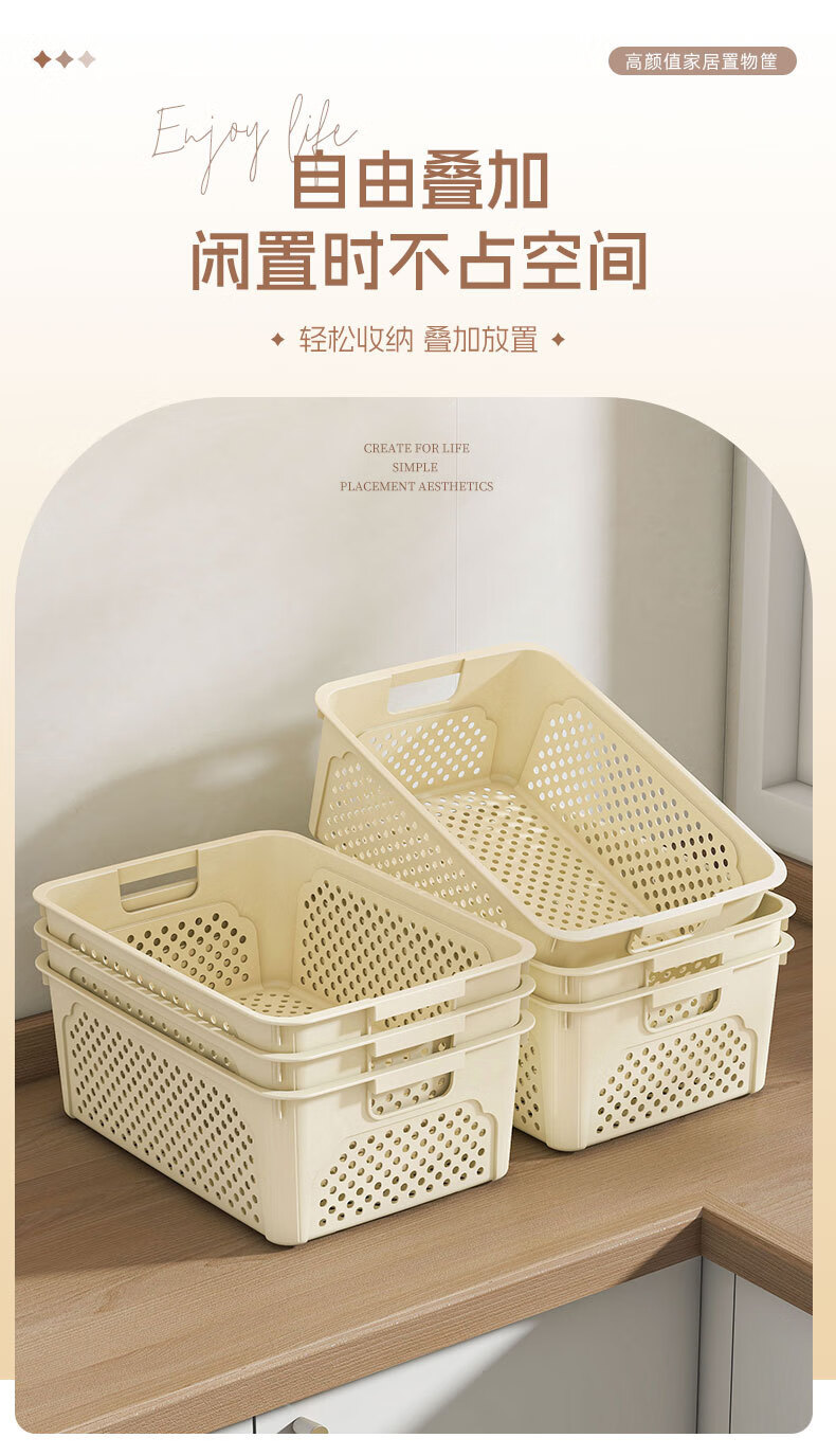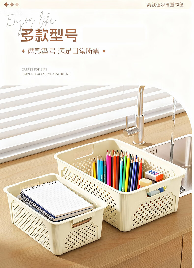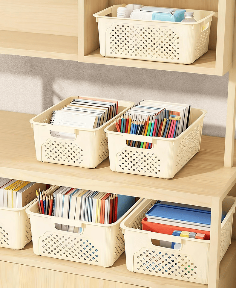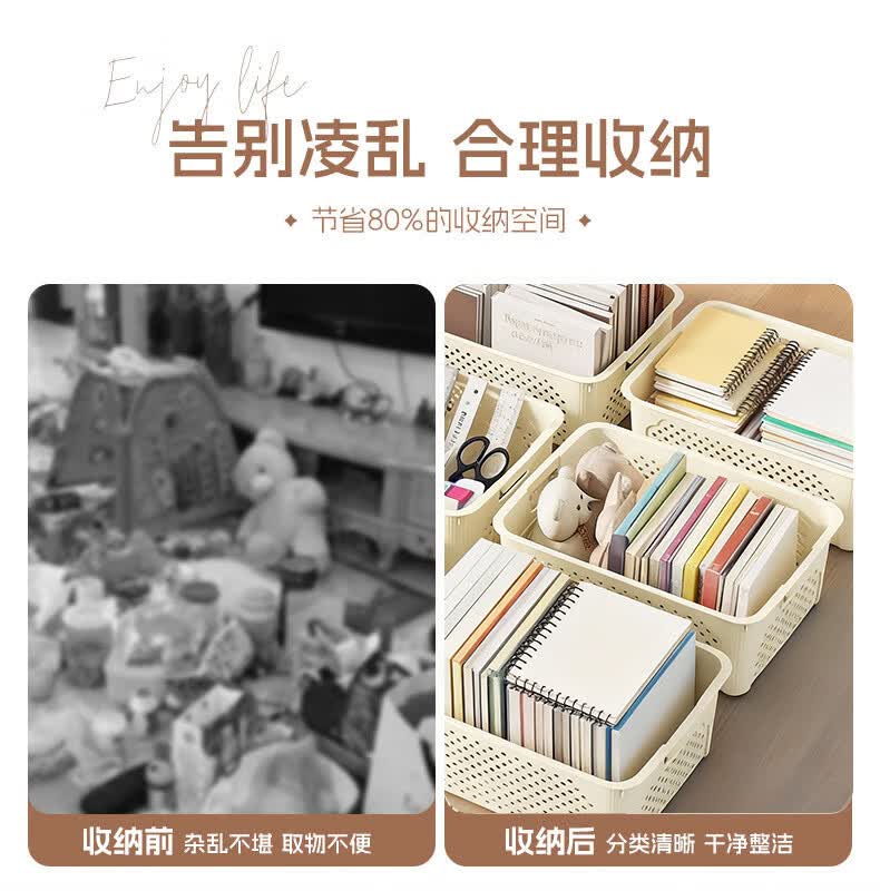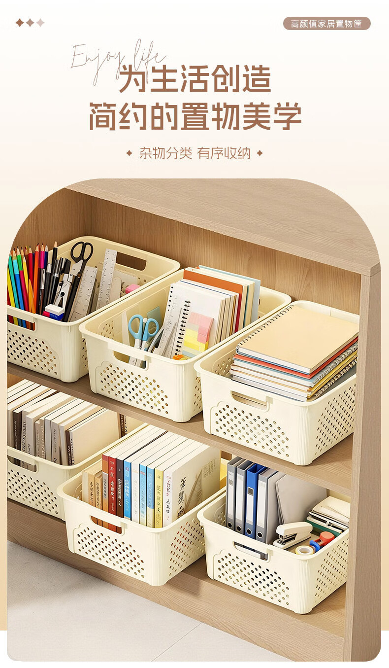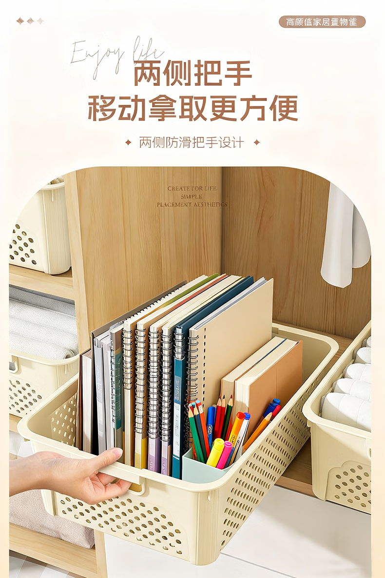 桌面长方形文件筐文具收纳盒塑料幼儿园收纳管理用品 1个装-奶油色大号 活动款