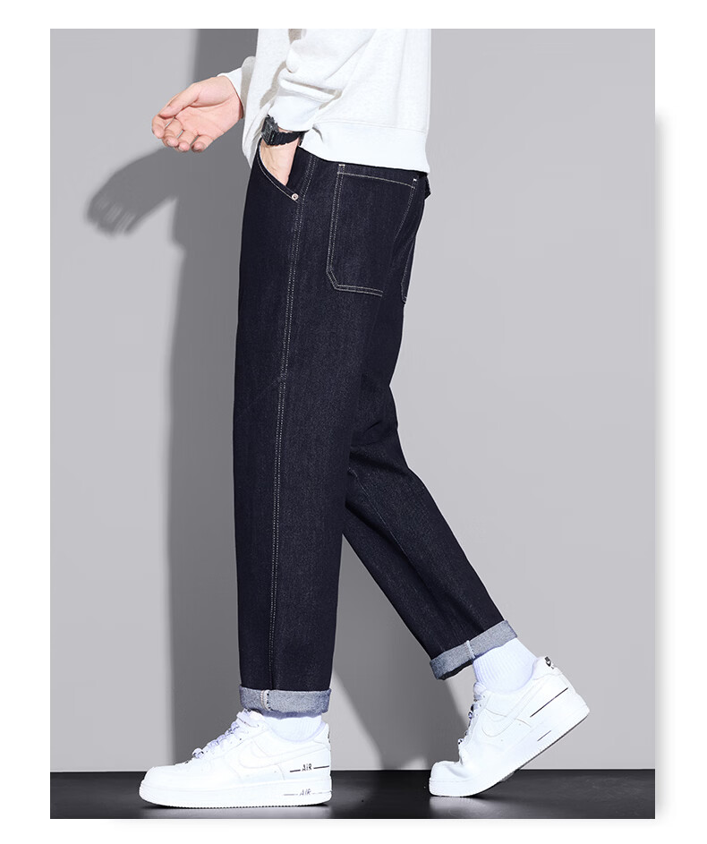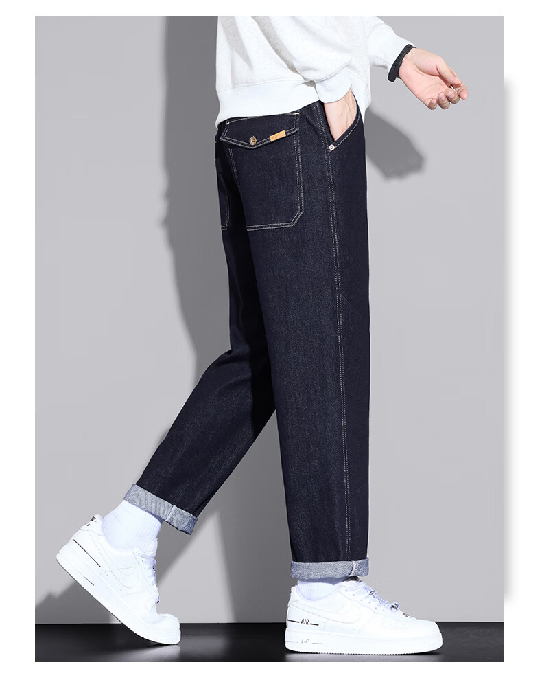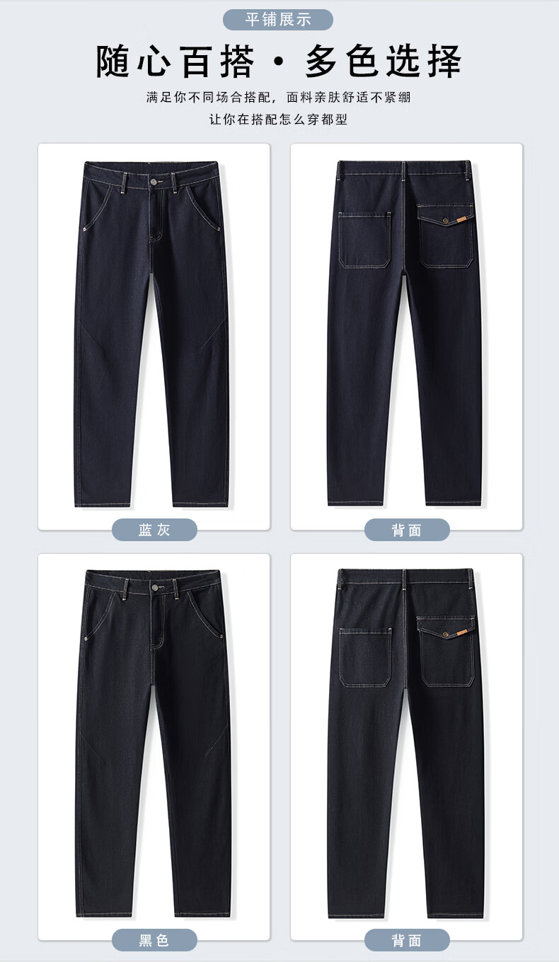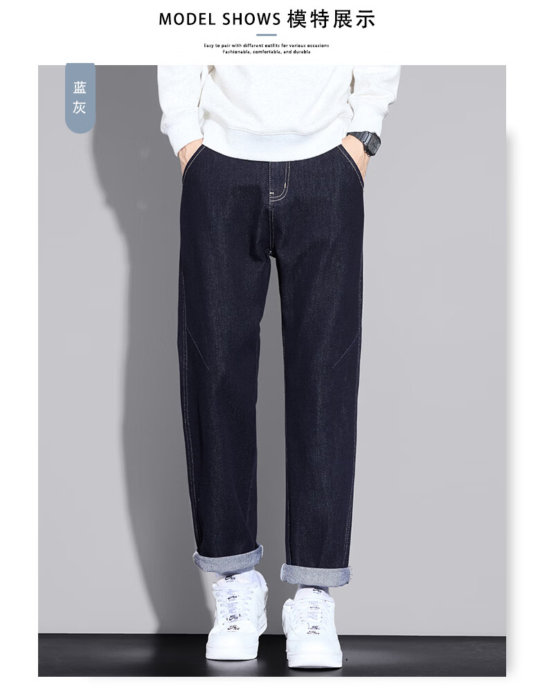 真维斯原色牛仔裤男春秋季舒适保暖百搭直筒裤男新款潮牌加绒休闲长裤男 蓝灰 28