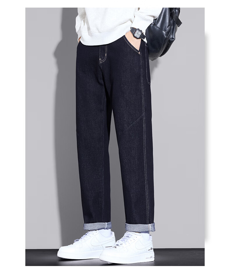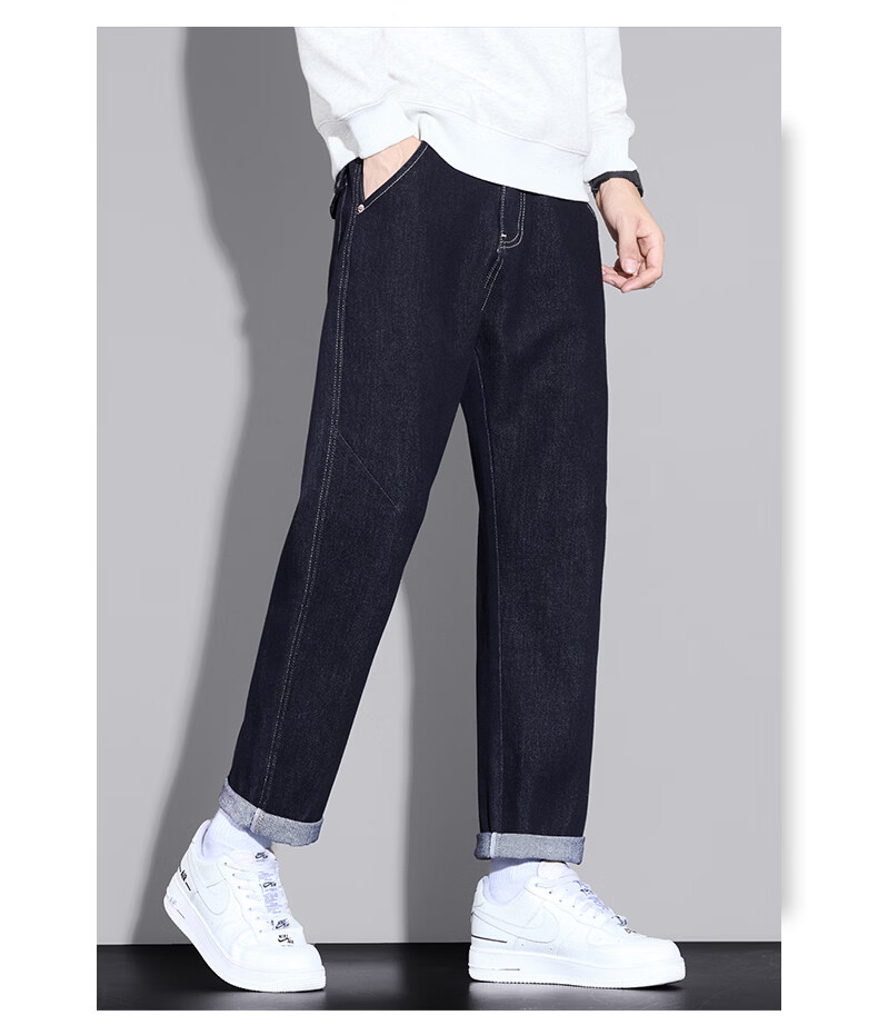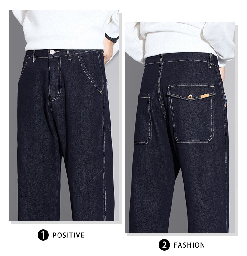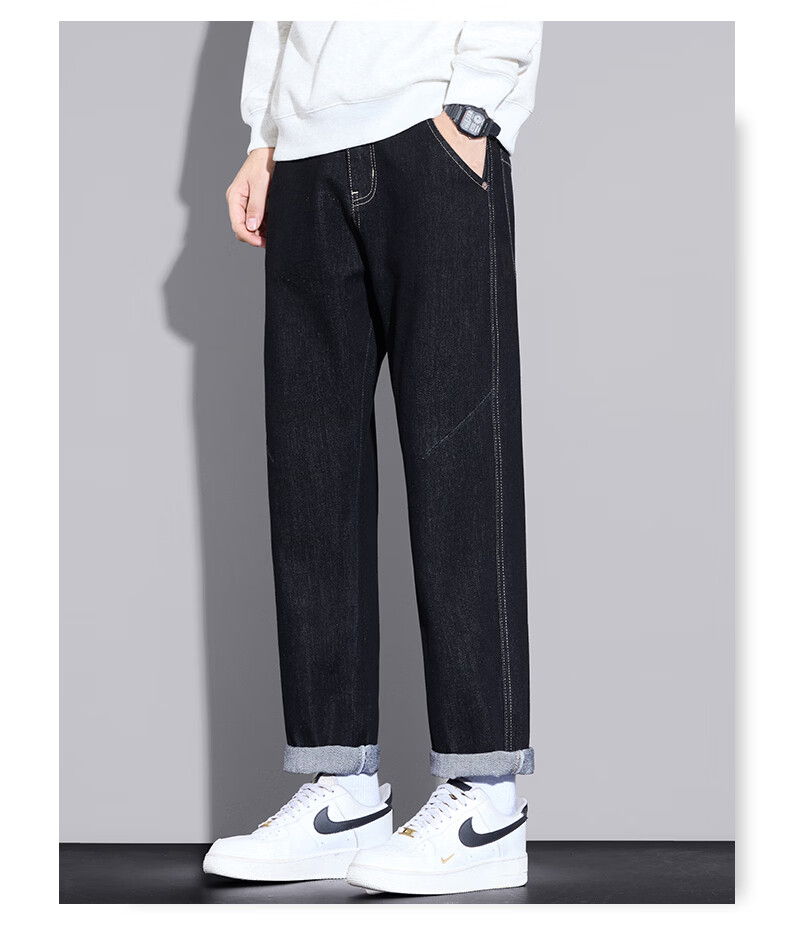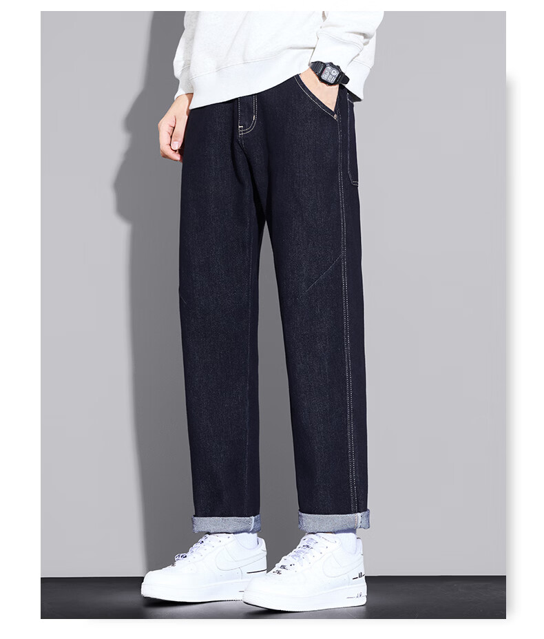 真维斯原色牛仔裤男春秋季舒适保暖百搭直筒裤男新款潮牌加绒休闲长裤男 蓝灰 28