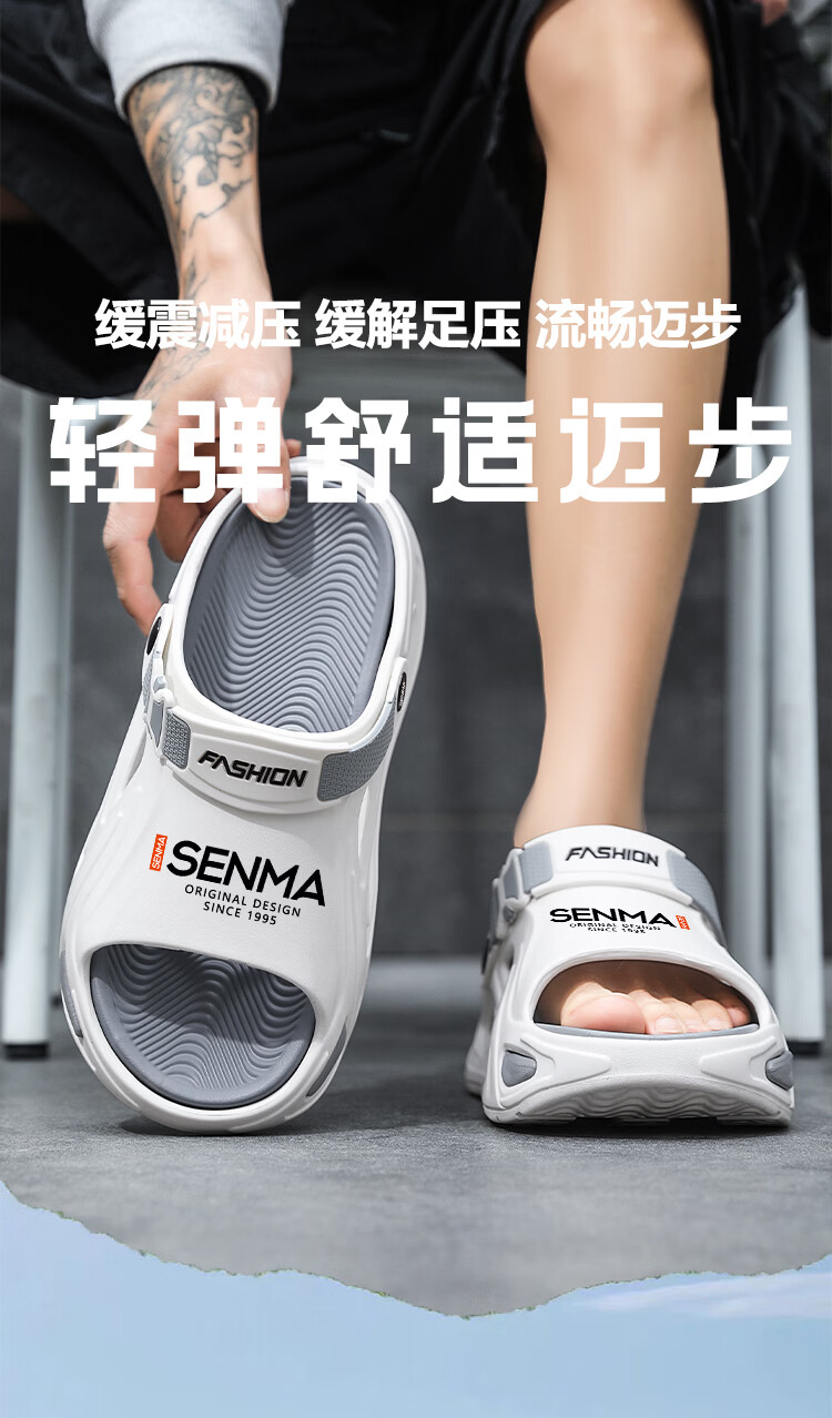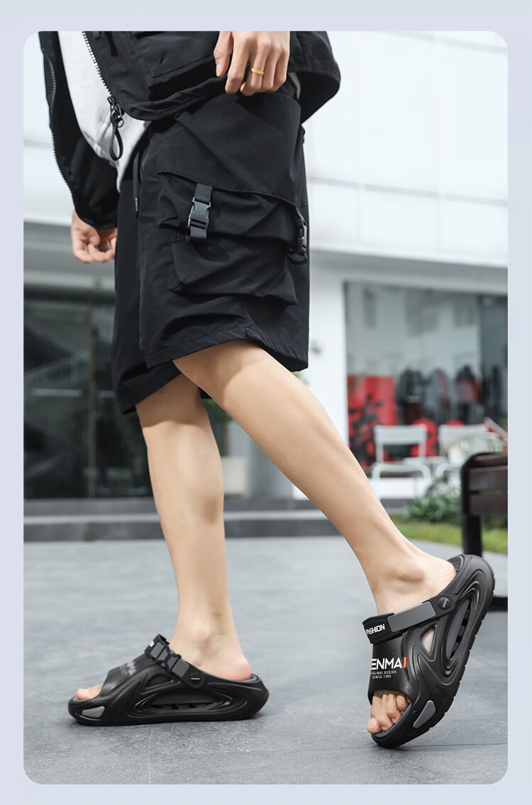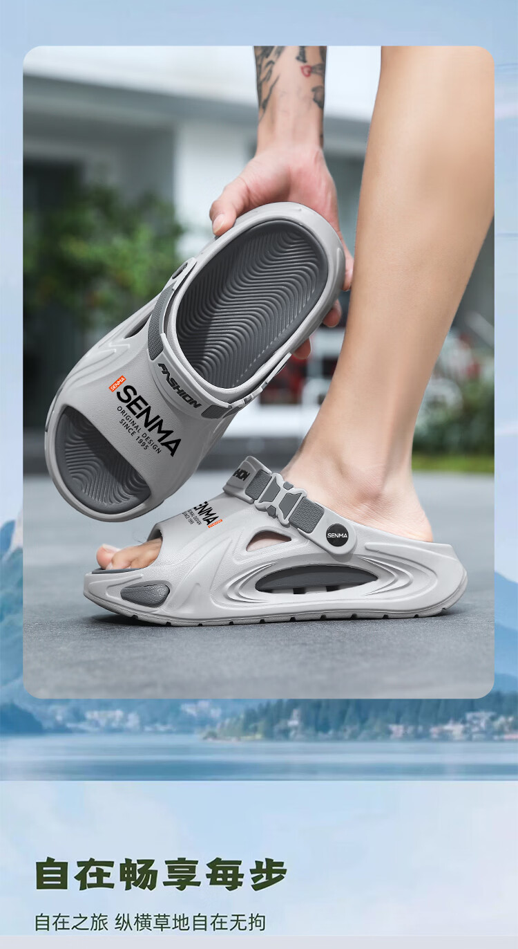 森馬拖鞋男外穿防滑踩屎感厚底凉拖夏季2026新款运动开车两用沙滩凉鞋 灰色【基础款】 42-43 【现货秒发】