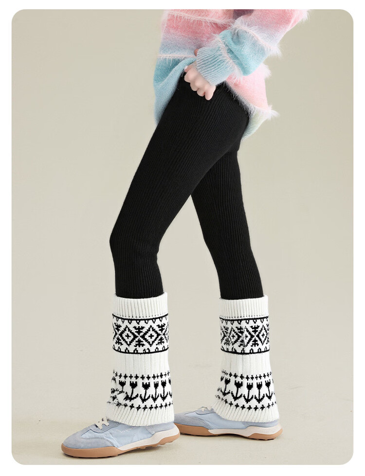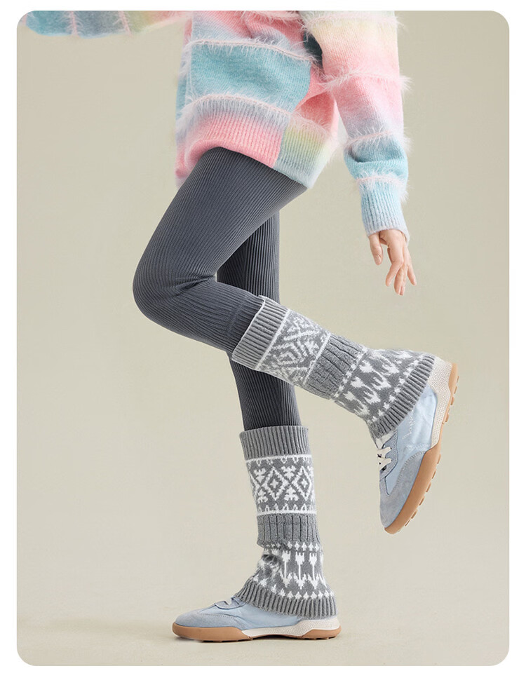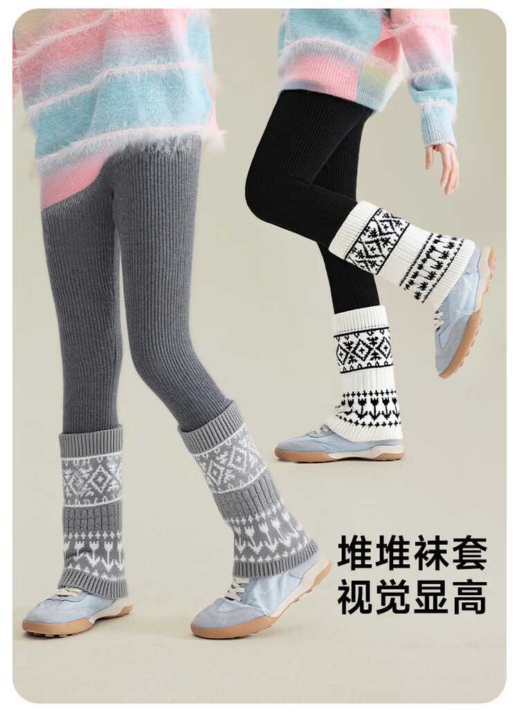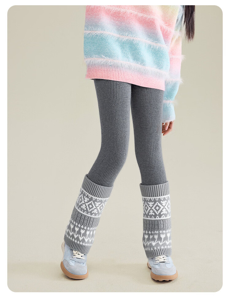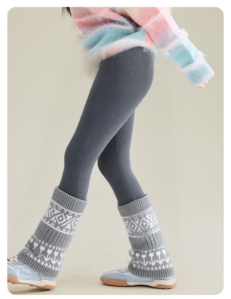 媛媛公主女童加绒加厚堆堆袜打底裤25冬新款儿童洋气保暖长裤中大童裤子 灰色 110