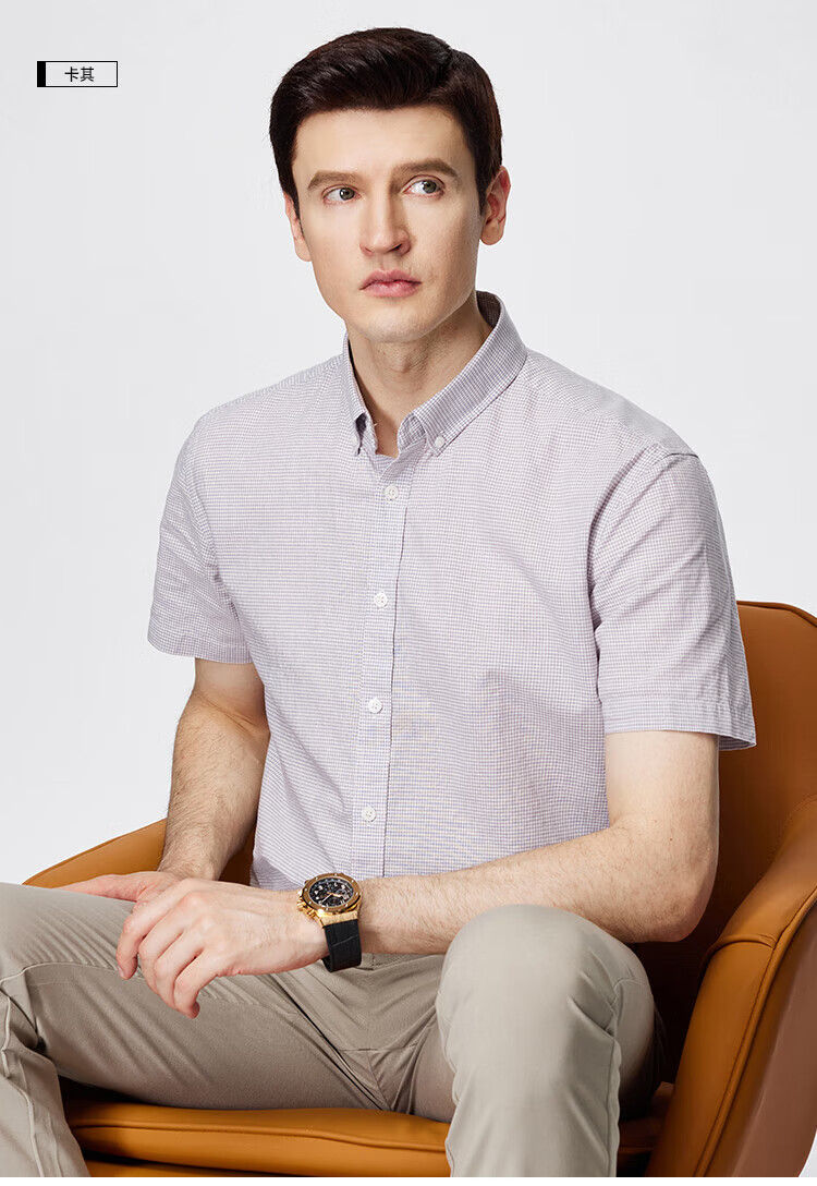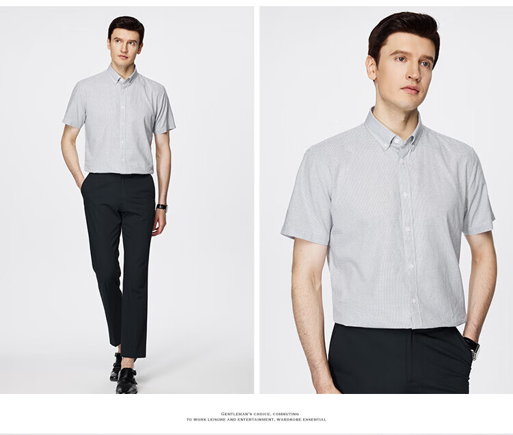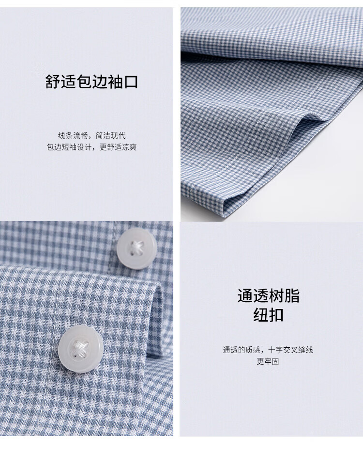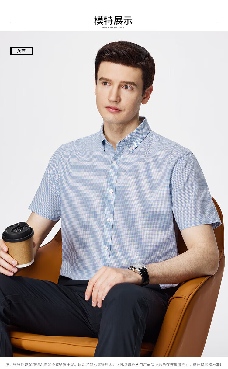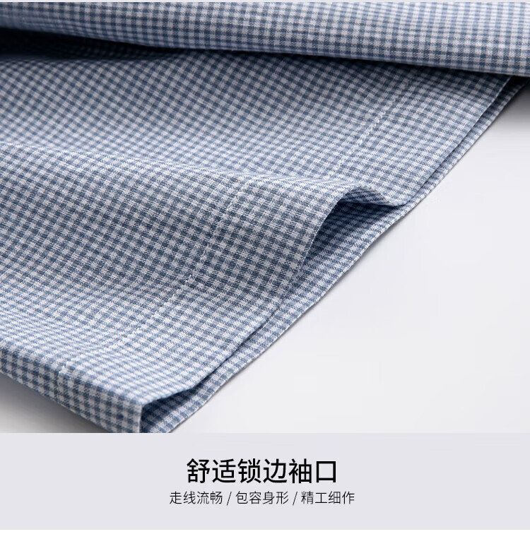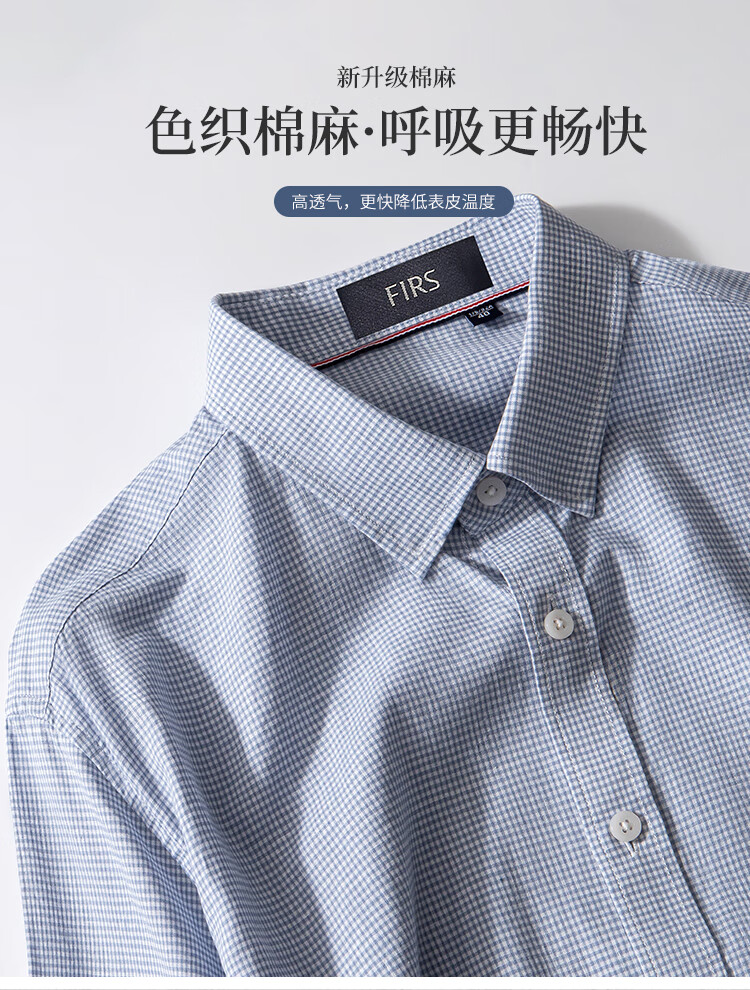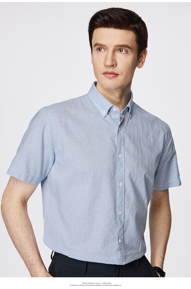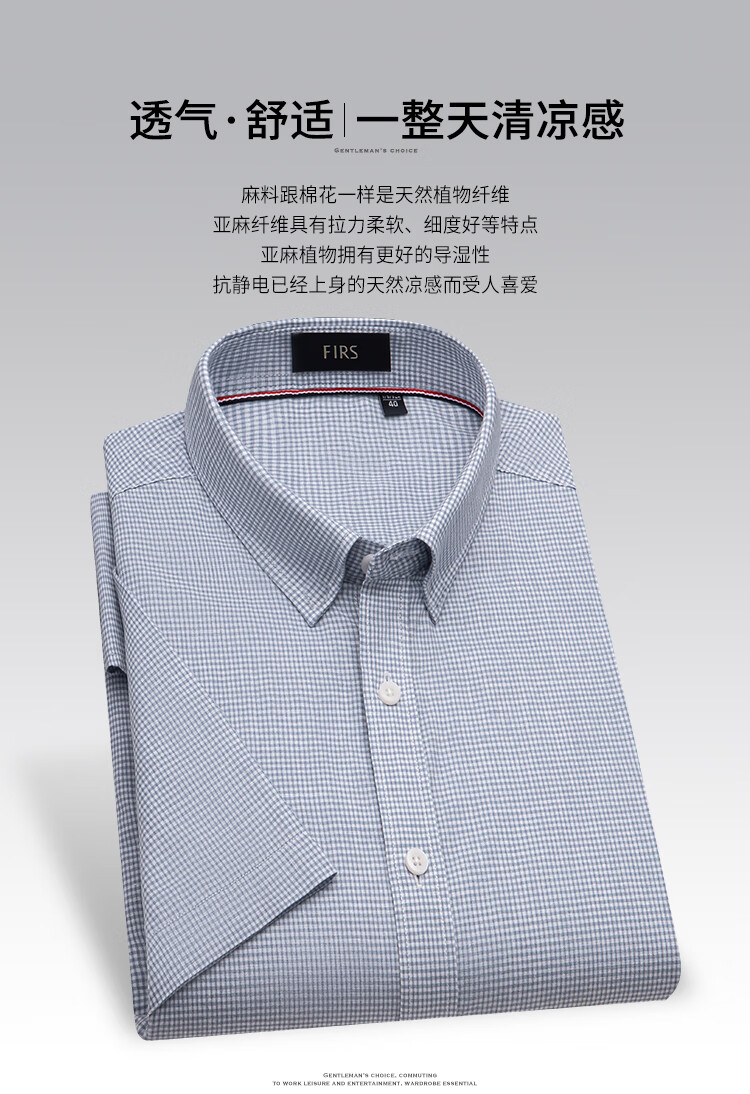 杉杉(FIRS)【天然棉麻】短袖衬衫男凉爽透气衬衣亲肤柔软薄款透气休闲上衣 灰蓝 39 (170) 88A