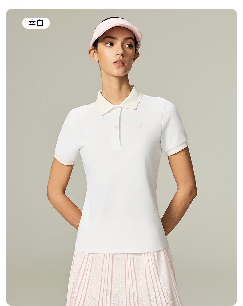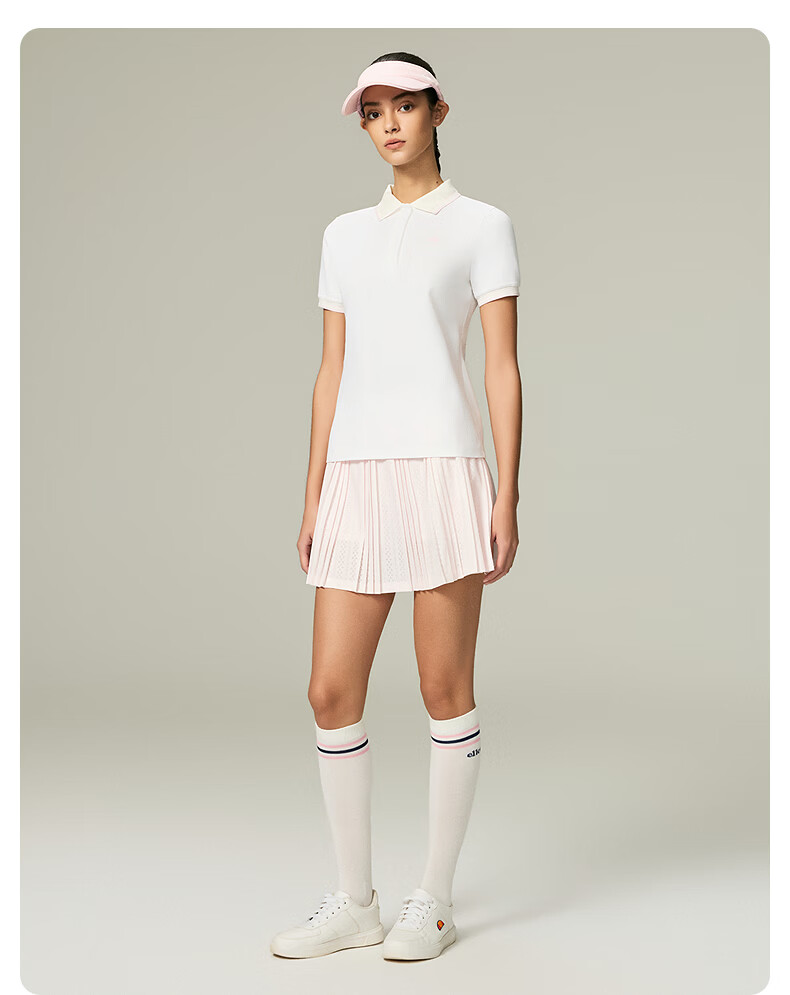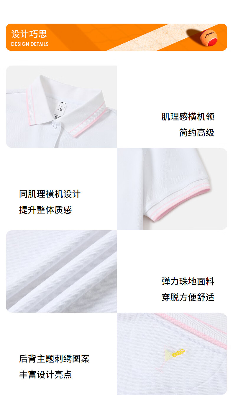 ellesse小贝壳26春季新品网球服弹力修身运动polo定制图案短袖女 本白 S