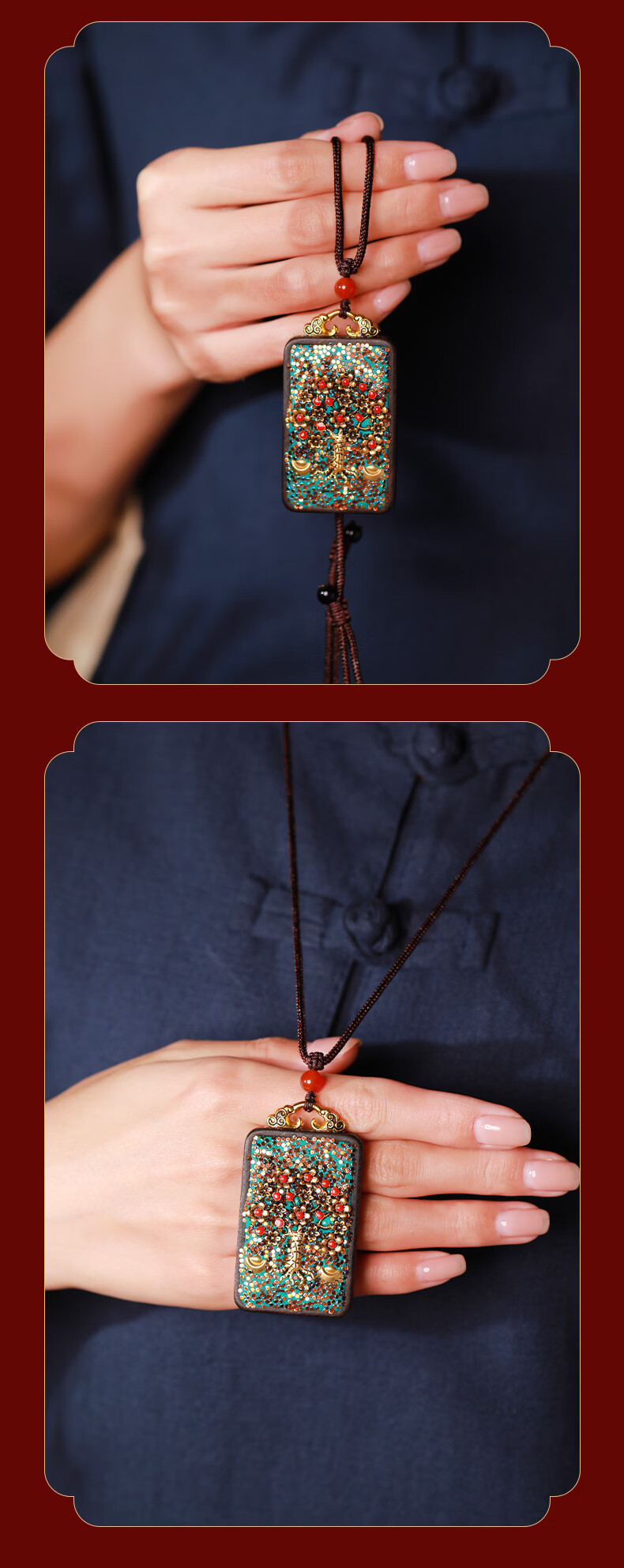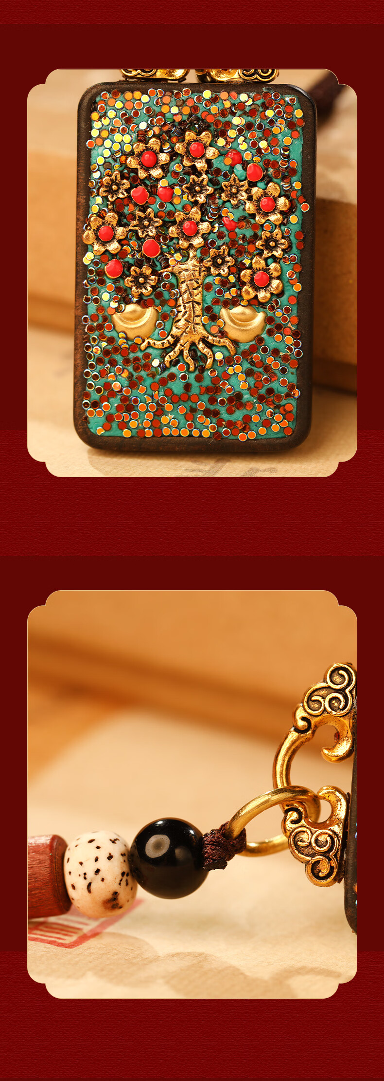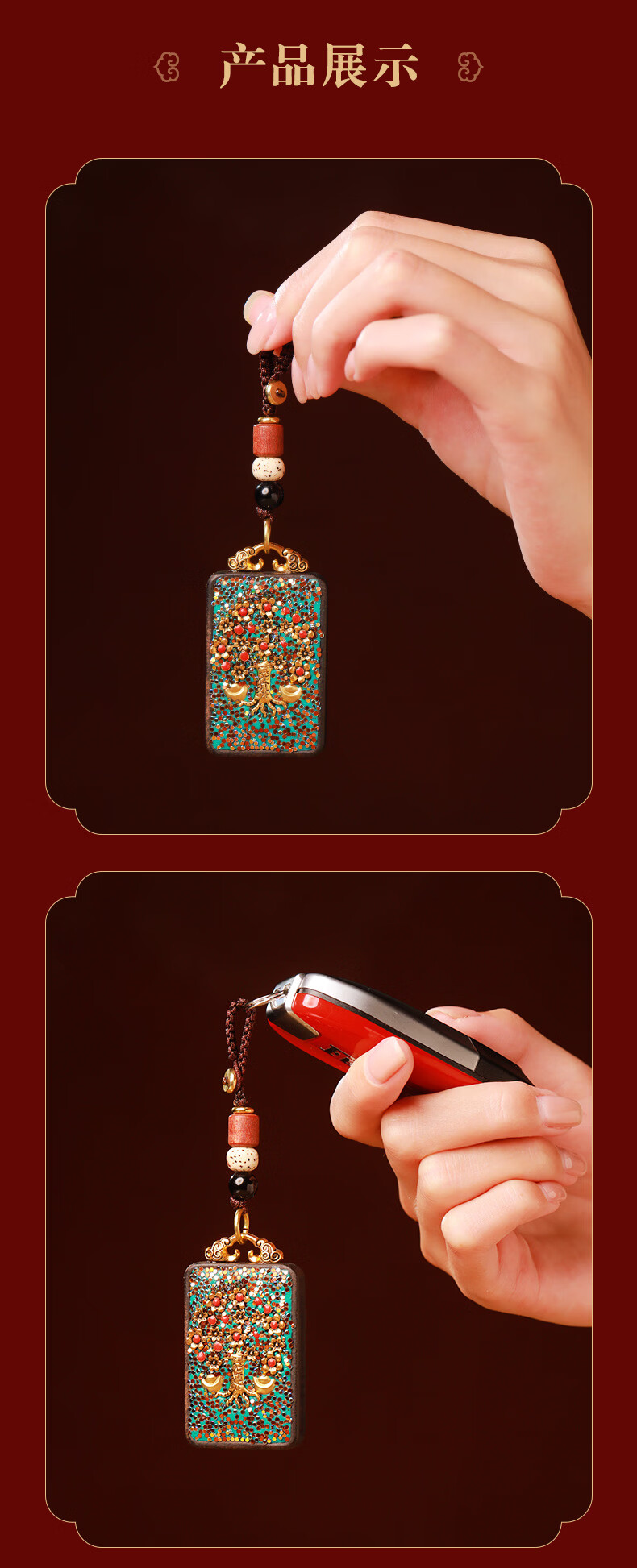 慈元阁黑檀木荣枝生华聚福饰品套装男女士情侣款吊坠高端盘玩汽车钥匙扣 荣枝生华聚福吊坠