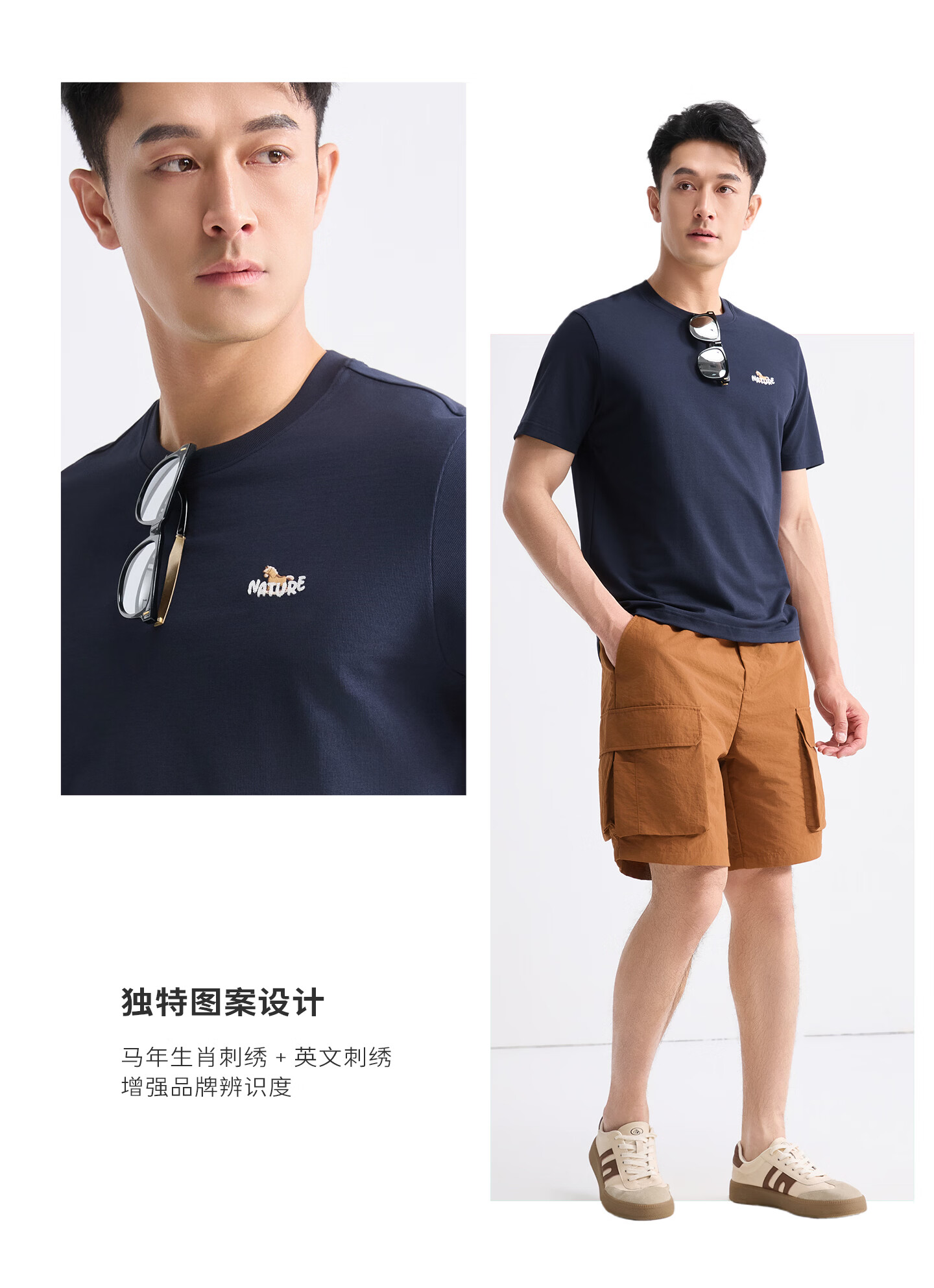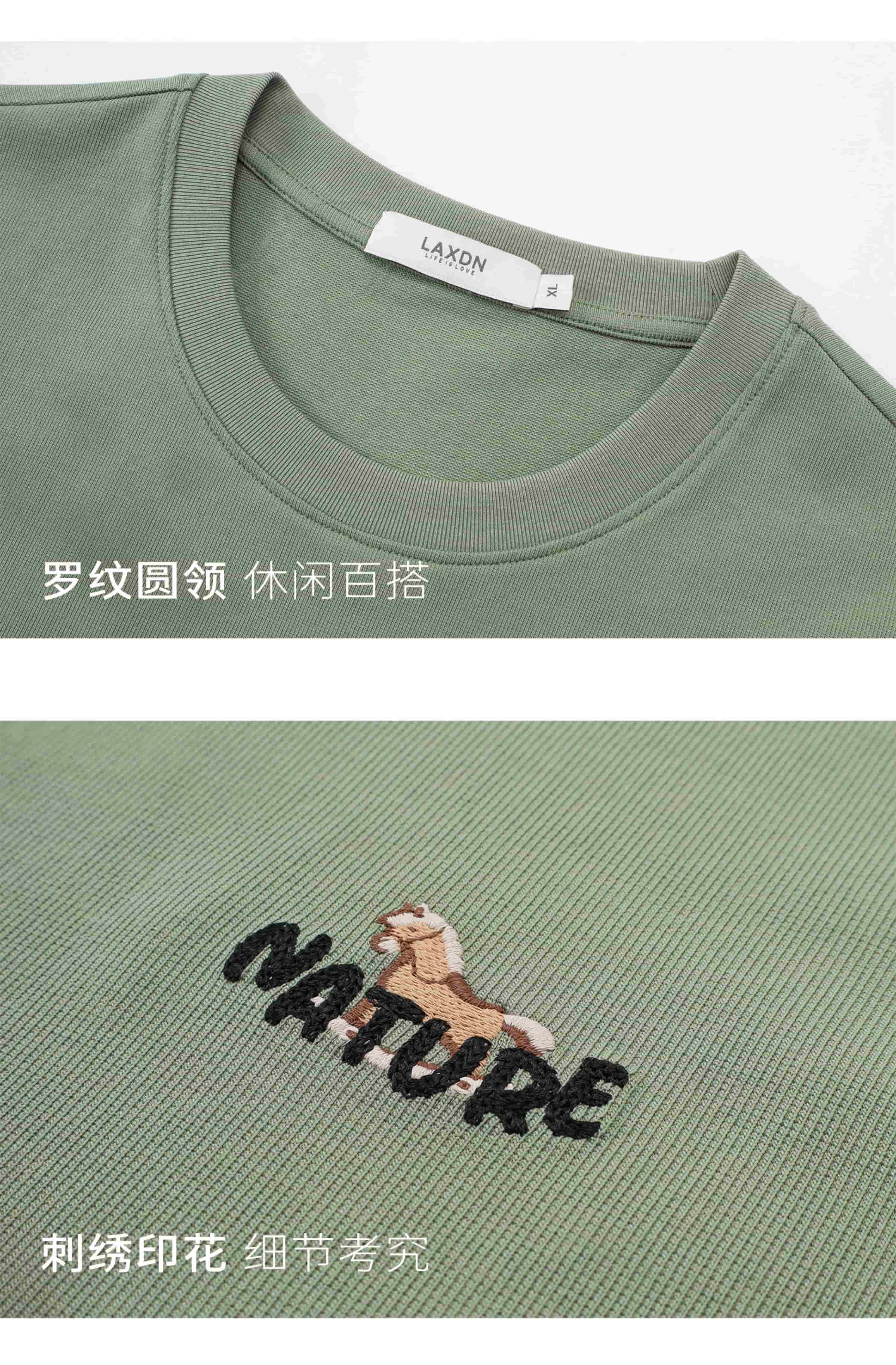 莱克斯顿短袖t恤男夏季圆领刺绣马年logo清爽透气休闲百搭打底衫上衣男 宝蓝色 S