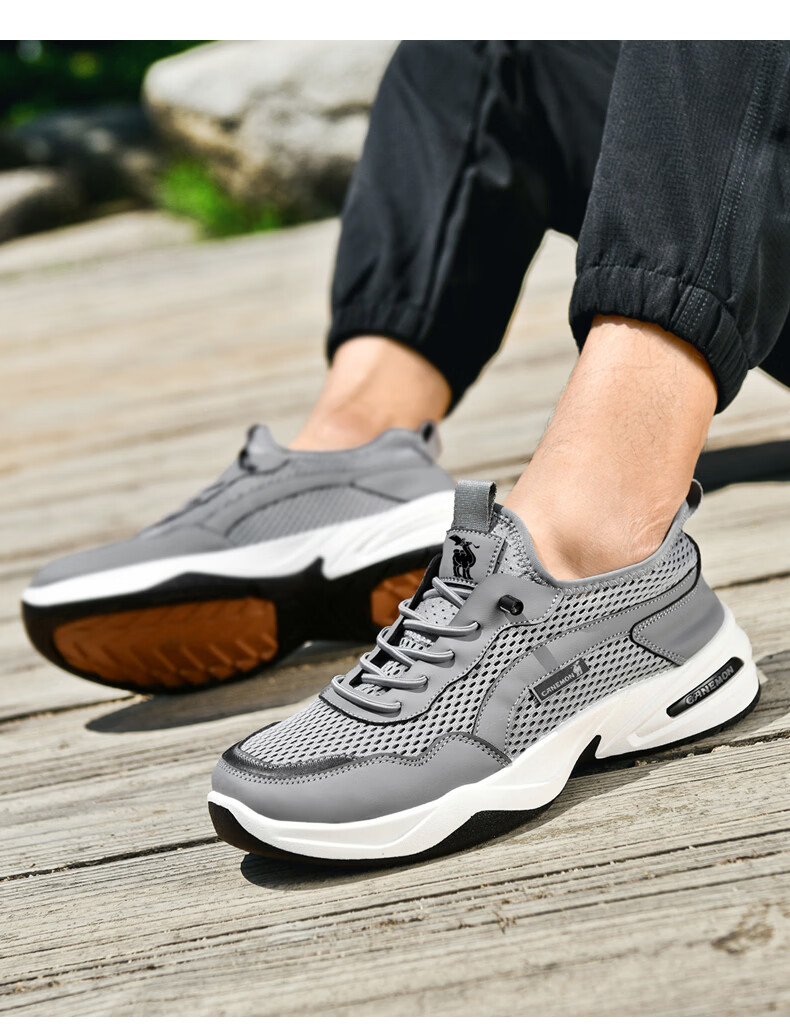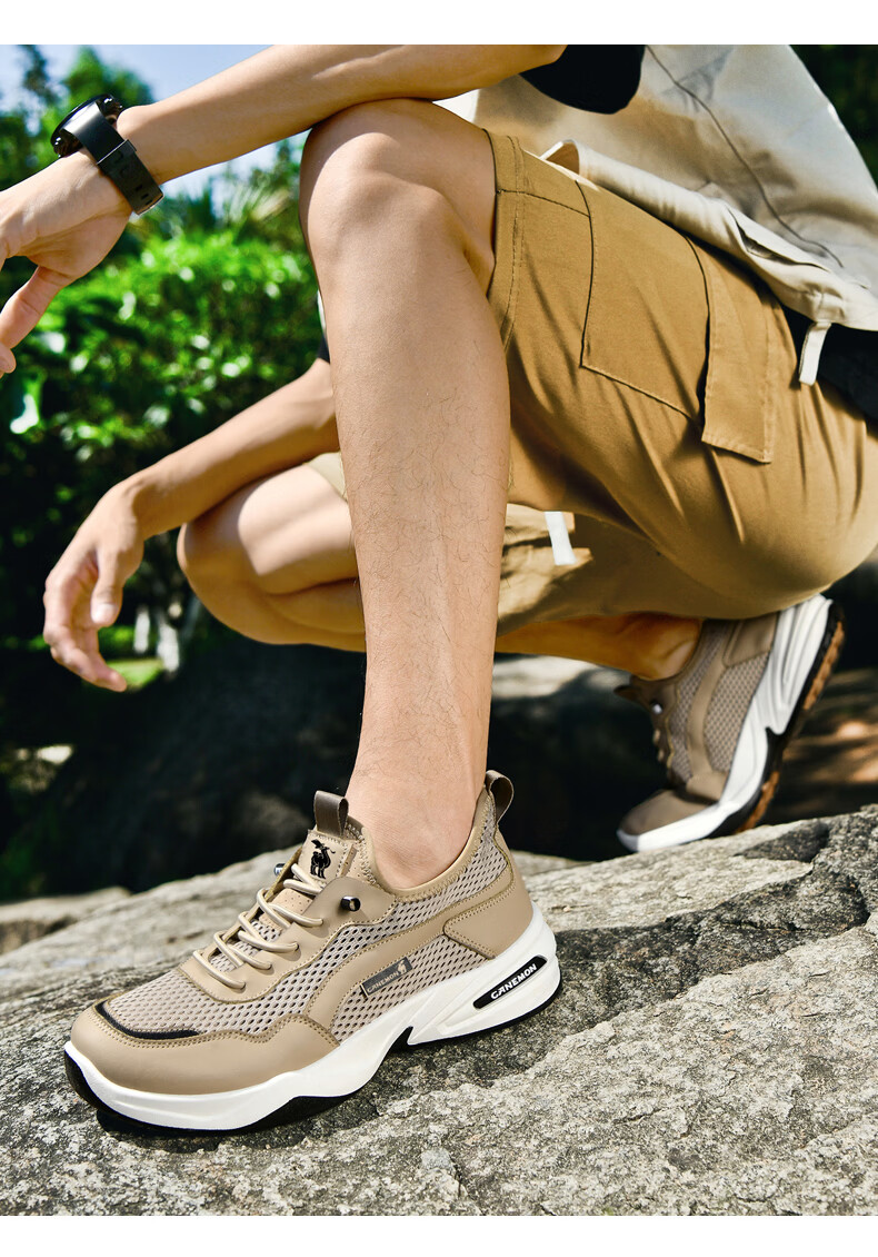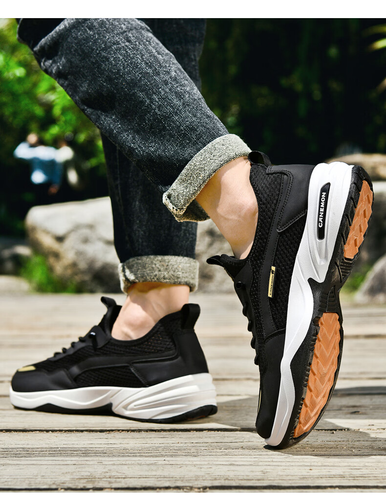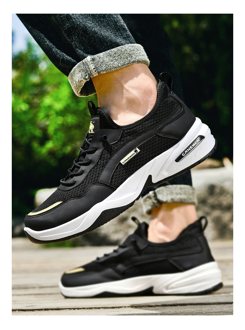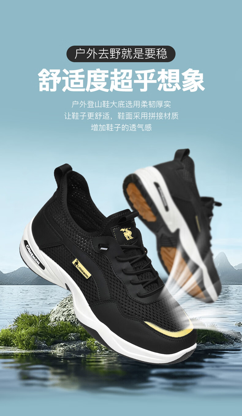 保罗骆驼运动鞋男夏季新款透气网面轻弹跑步鞋舒适耐磨休闲鞋男 黑色 38