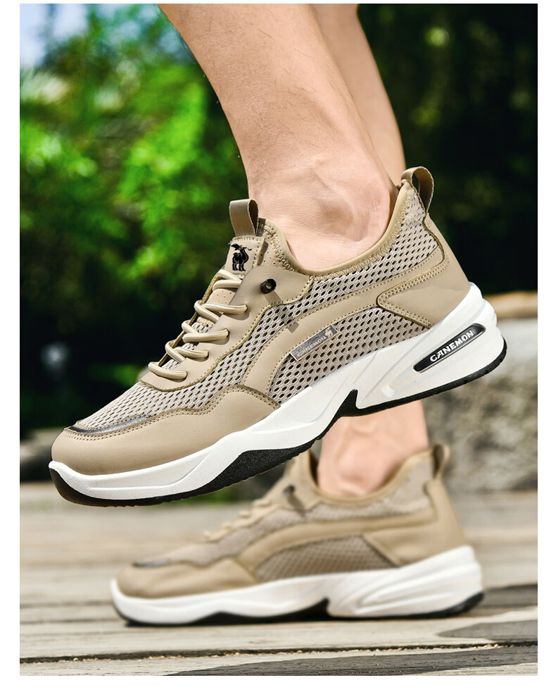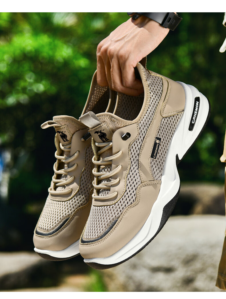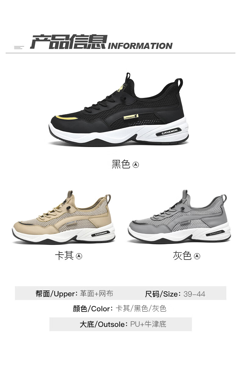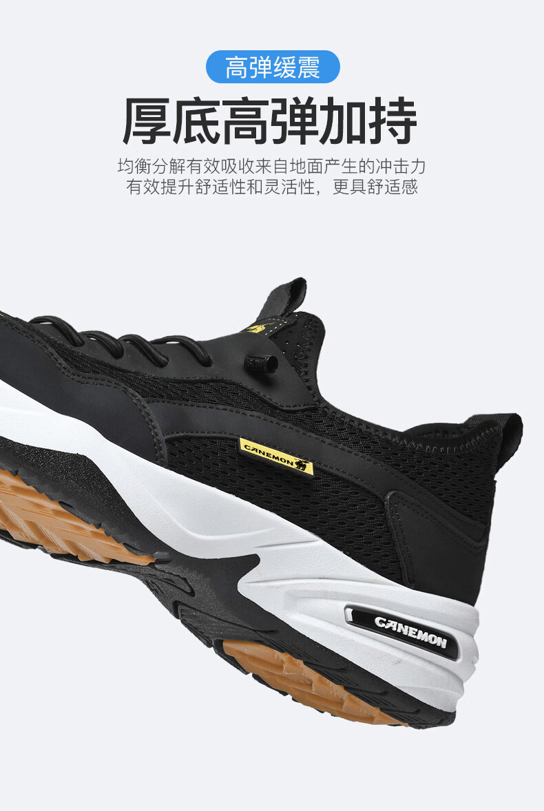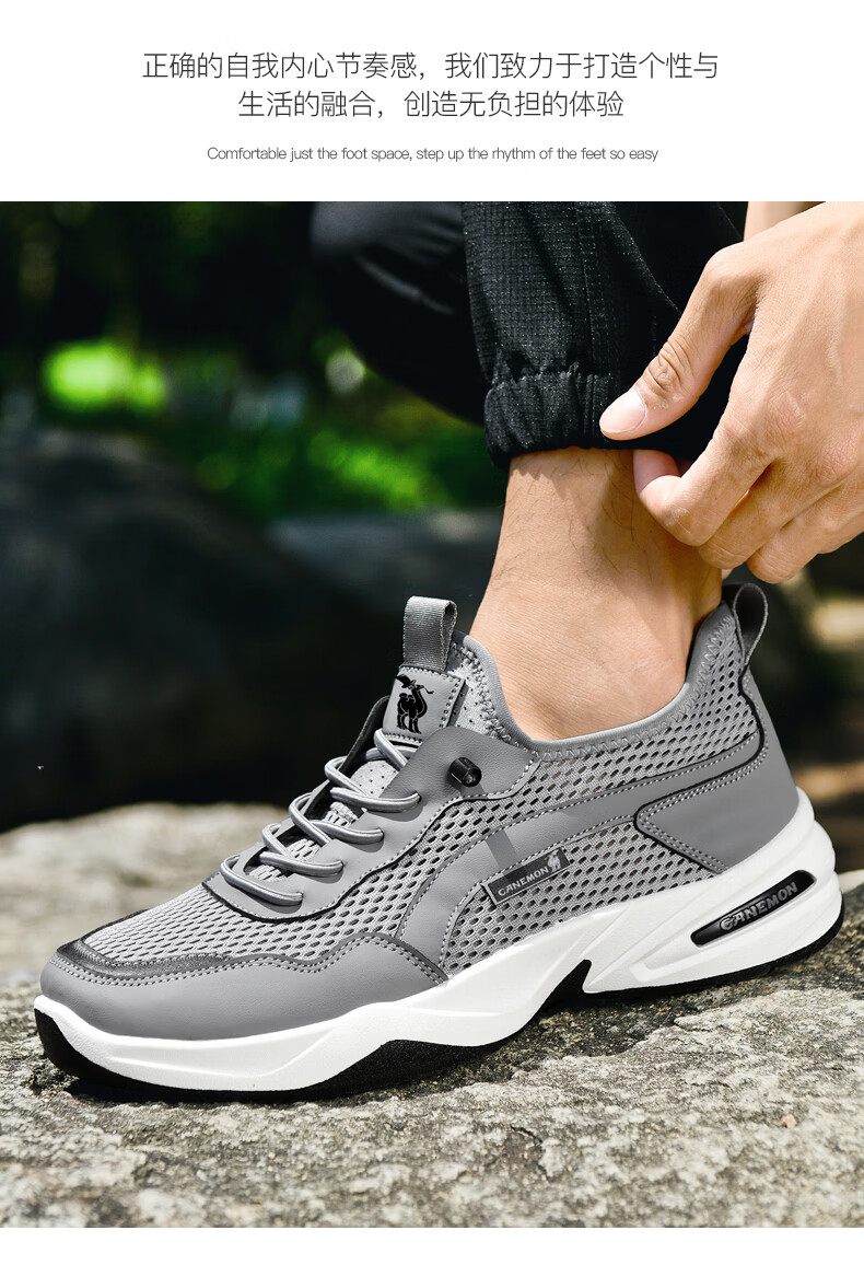 保罗骆驼运动鞋男夏季新款透气网面轻弹跑步鞋舒适耐磨休闲鞋男 黑色 38